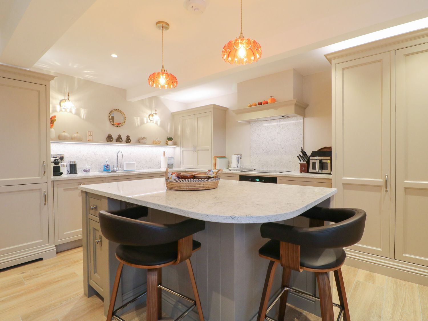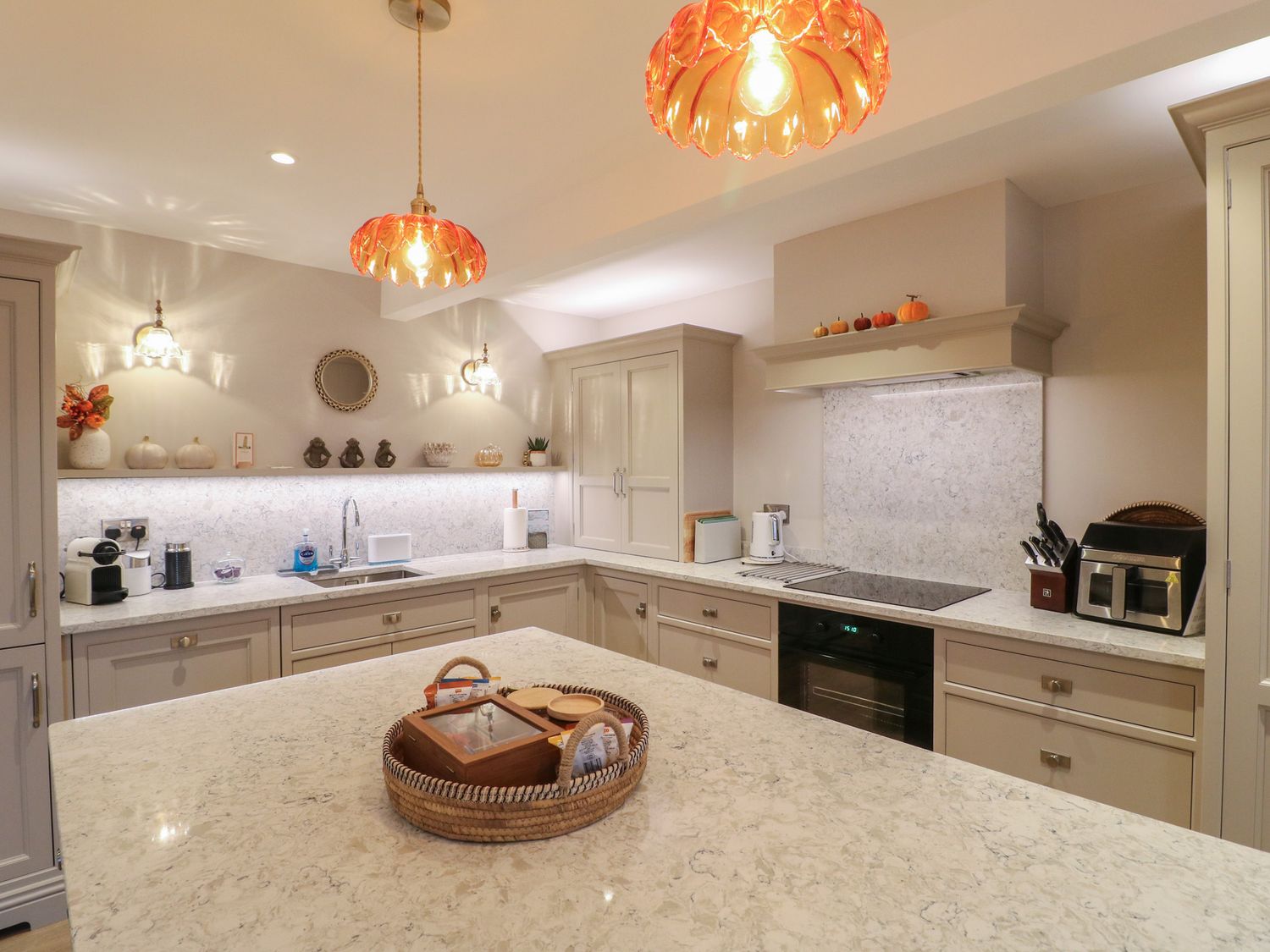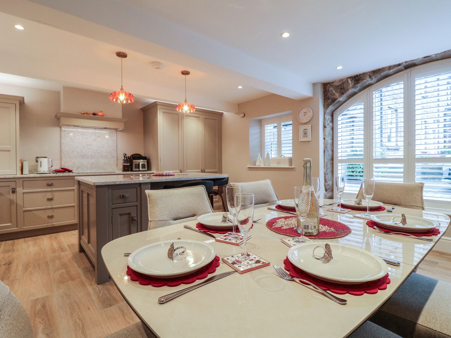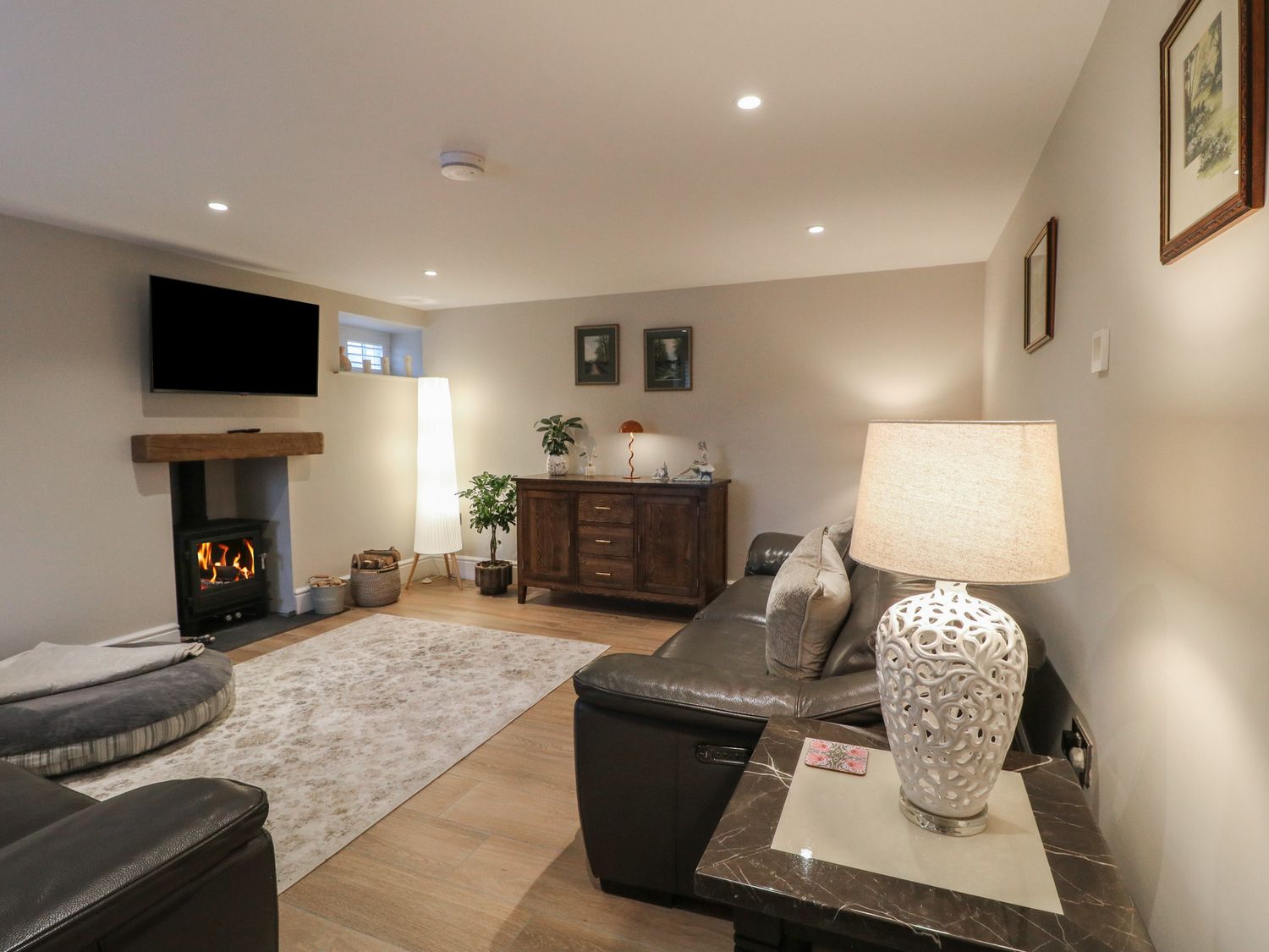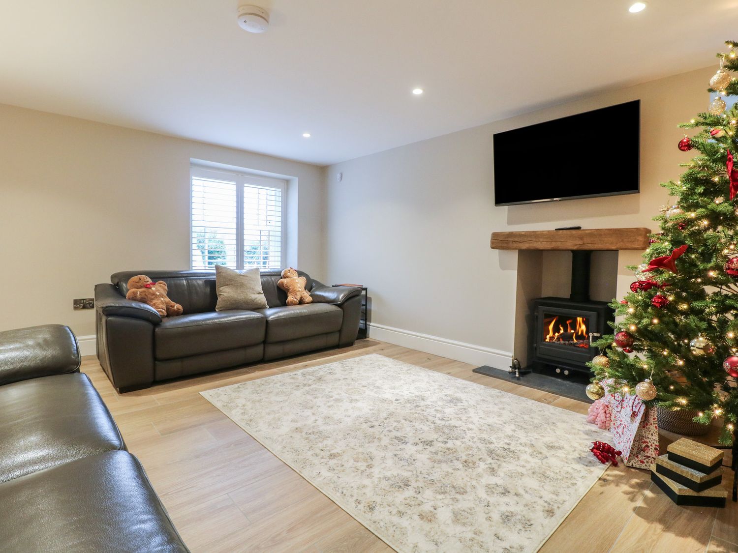 "The Coach House is a property consisting of a kitchen/diner with an electric oven and hob, microwave, fridge/freezer, dishwasher, kettle, toaster, breakfast bar, dining seating, and TV. Additionally, there is a utility cupboard with a washing machine and tumble dryer, and a sitting room with a woodburning stove and TV. The bedrooms include two king-size rooms with en-suite shower rooms and a family room with super-king-size (zip/link) and single, serviced by a bathroom and cloakroom. You'll find a shop in 2.6 miles, and a pub and river in 0.9 miles. WiFi, fuel, power, starter pack for woodburning stove, bed linen, and towels are included in the rent. Outside, there is a non-enclosed, shared garden with a patio, furniture, and a hot tub, as well as off-road parking for two cars and additional roadside parking. Two well-behaved pets is welcome. Smoking is not allowed. Enjoy your stay at The Coach House. Note: Lockable bike store. Note: This property has a 350GBP Good Housekeeping Bond. Note: This property offers a minimum of three night stays. The property doesn't accept bookings such as stag/hen parties. "
