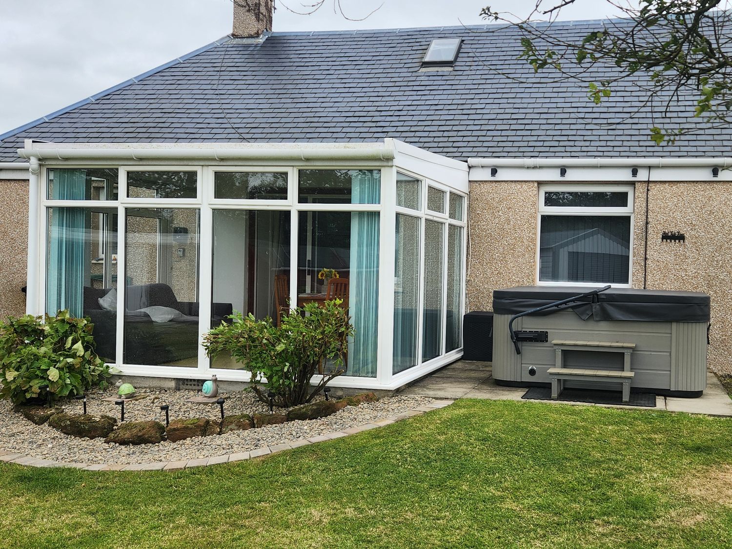 "Largieholm is a single-storey property consists of a kitchen equipped with electric oven and hob, microwave, fridge/freezer and washing machine, a dining room with seating for four guests, a sitting room with TV and electric fire, and a sunroom. The bedrooms consist of a king-size and a twin, serviced by a shower room and cloakroom with WC. Outside there is an enclosed rear garden with lawn, patio, and furniture, secure bike storage, and off-road parking for two cars. Within 3 miles you will find a shop and within 3.2 miles, a pub and please note that one well-behaved dog is welcome but sorry, no smoking. WiFi, fuel, power, bed linen and towels are all included in the price. Largieholm is a wonderful escape for a family or group of friends in Scotland. "