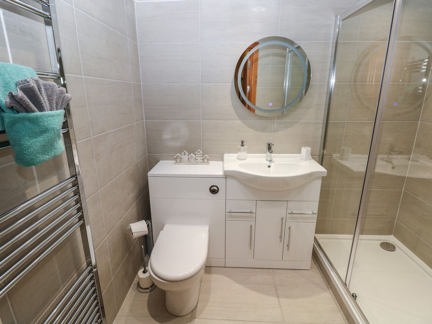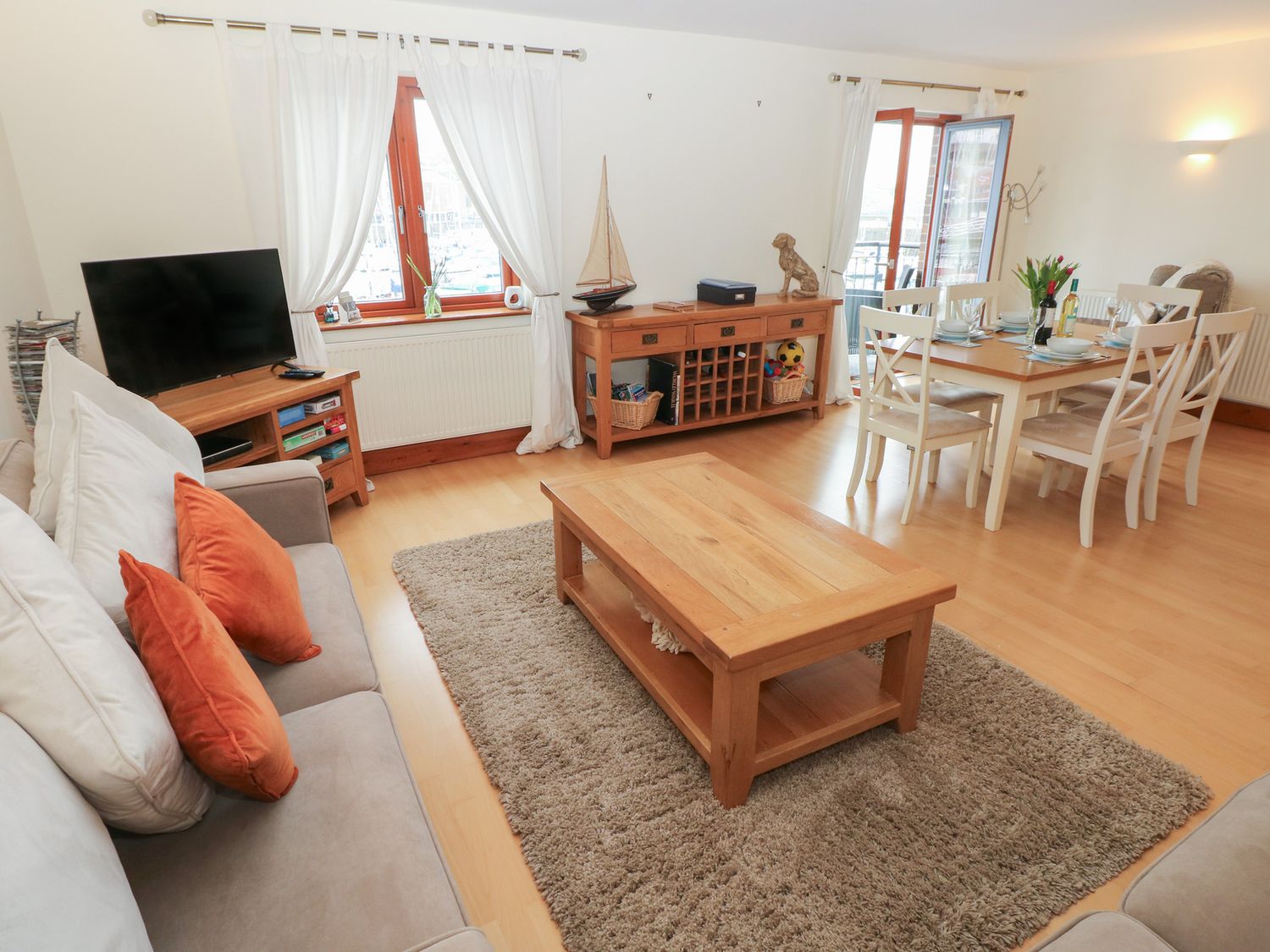 "14 Neptune House, a first-floor apartment, consists of an open-plan living space with an electric oven and hob, microwave, fridge, freezer, kettle, toaster, dining seating for six people, Smart TV, and a balcony with furniture. The bedrooms consist of two doubles, serviced by a shower room. Outside, there is a permit parking for one car in the car park. One well-behaved pet is welcome. Sorry, no smoking. Travel cot and highchair available on request. You'll find a shop in 0.7 miles, pub in 0.6 miles, and coast in 0.4 miles. WiFi, fuel, power, bed linen, and towels are included in the rent. Whatever the weather, a wonderful stay awaits at 14 Neptune House.