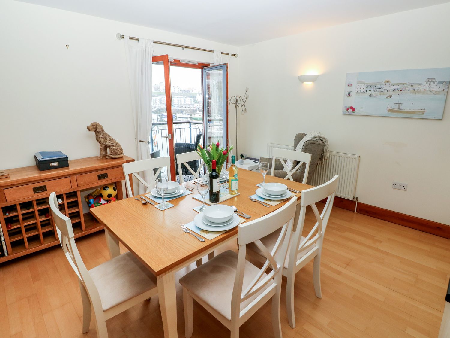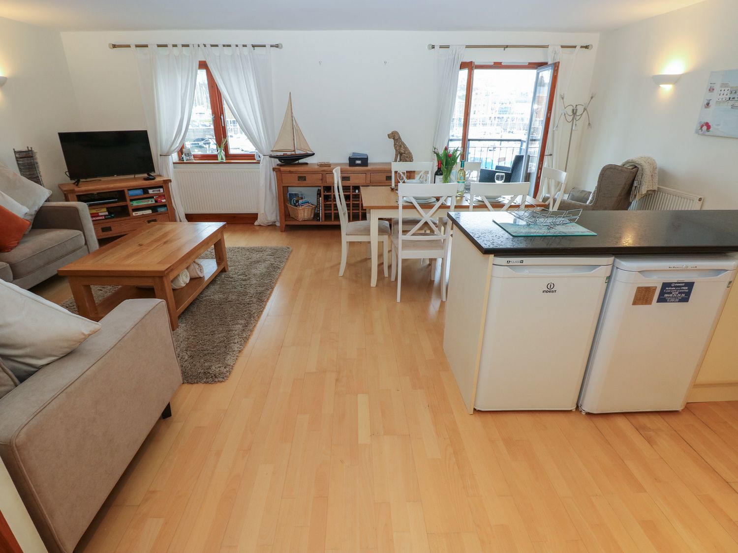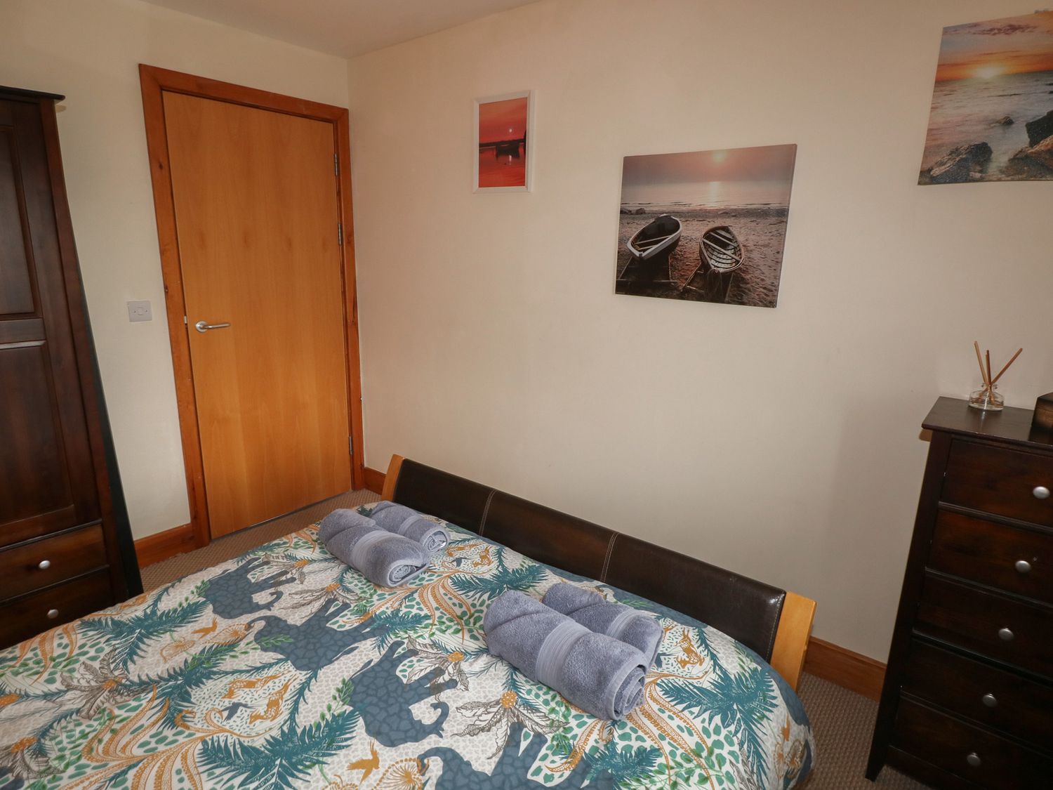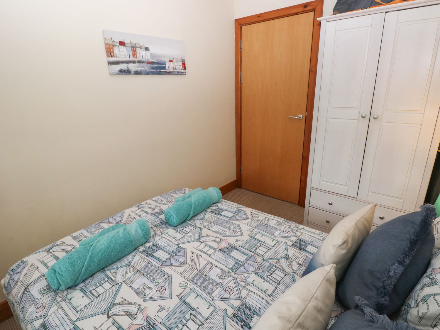 "14 Neptune House, a first-floor apartment, consists of an open-plan living space with an electric oven and hob, microwave, fridge, freezer, kettle, toaster, dining seating for six people, Smart TV, and a balcony with furniture. The bedrooms consist of two doubles, serviced by a shower room. Outside, there is a permit parking for one car in the car park. One well-behaved pet is welcome. Sorry, no smoking. Travel cot and highchair available on request. You'll find a shop in 0.7 miles, pub in 0.6 miles, and coast in 0.4 miles. WiFi, fuel, power, bed linen, and towels are included in the rent. Whatever the weather, a wonderful stay awaits at 14 Neptune House."