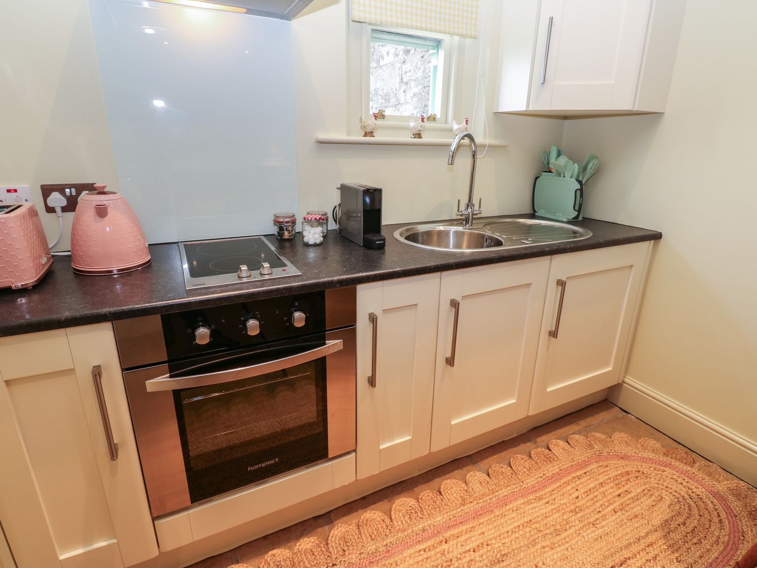 "The Annex consists of an open-plan living space with kitchen, dining and sitting area, including an electric oven and hob, microwave, fridge, washing machine and toaster. There is one twin bedroom (zip/link, can be super-king-size on request), and a bathroom with bath, handheld shower, basin and WC. Outside, there is an enclosed rear lawn with furniture and off-road parking. WiFi, fuel, power, bed linen and towels are all included in the price. One well-behaved pet welcome. Sorry, no smoking. The Annex is a lovely base for exploring Northumberland. This property has a 150 GBP good house keeping bond."