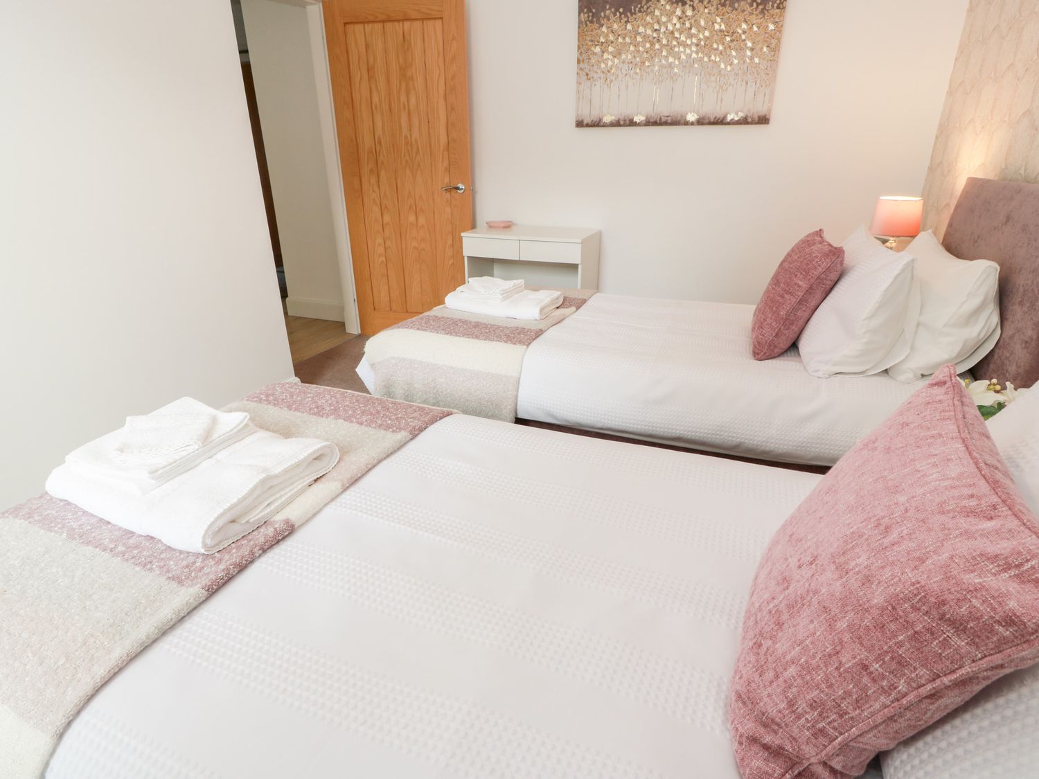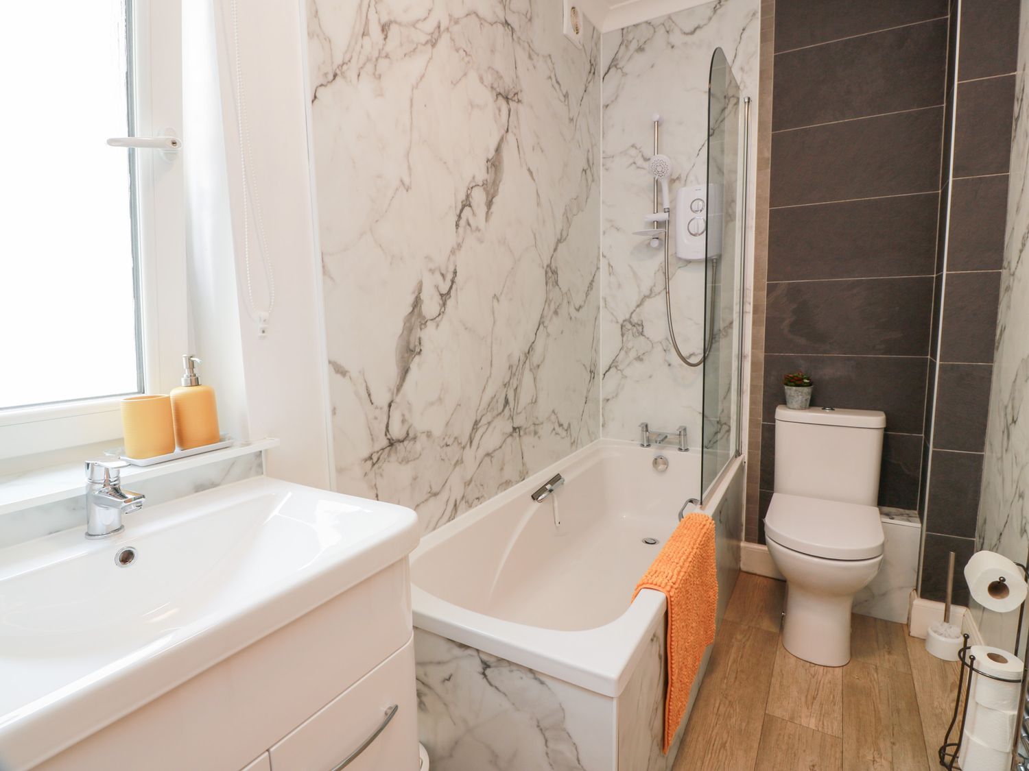 "All ground-floor. Two bedrooms: 1 x king-size double, 1 x twin. Bathroom with shower over bath, basin and WC. Kitchen. Sitting/dining room with gas fire"