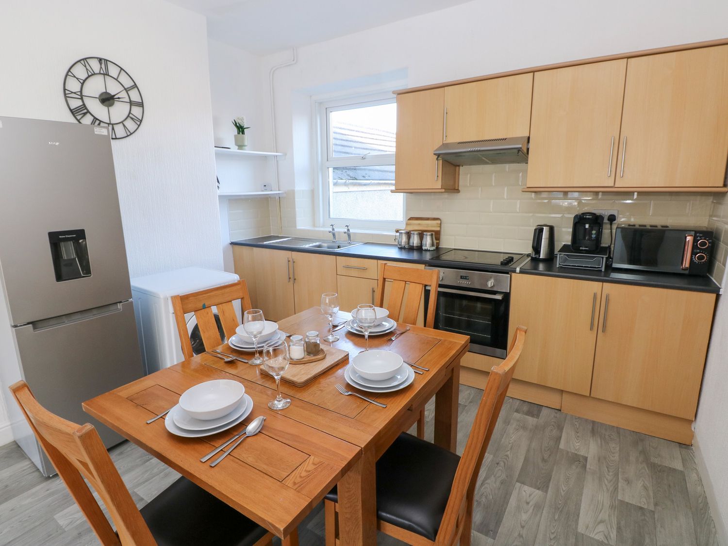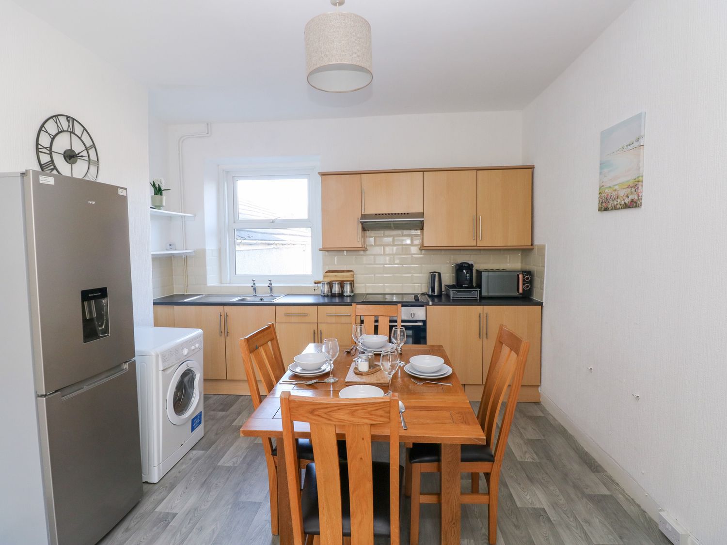 "Castleview Coastal Comfort is a first-floor apartment, consists of a kitchen with a washing machine, fridge/freezer, oven, hob, microwave, kettle, toaster, and coffee machine, a dining room with dining seating, and a sitting room with TV. The bedrooms consist of two doubles. There is a shower room with a walk-in shower, basin, and WC. WiFi, fuel, power, bed linen, and towels are included in the rent. Cot and Highchair available. Outside, there is off-road parking for two cars. Two well-behaved pets are welcome. Sorry, no smoking. Have an enjoyable stay at Castleview Coastal Comfort "
