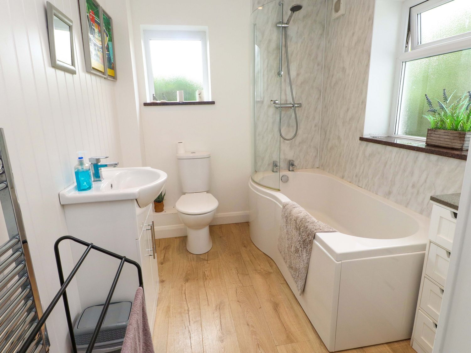 "Bodefi is a contemporary end-terrace three-storey holiday home Nefyn, Gwynedd. Hosting three bedrooms, including a second-floor double, a double and a twin, along with a bathroom, this property can sleep up to six guests. There is also an open-plan living space with kitchen, dining area and sitting area with woodburning stove. Outside there is off-road parking for 2 cars and an enclosed courtyard with furniture. Treat your loved ones to a break at the seaside with a stay at Boedfi. Note: This property has a Good Housekeeping Bond of 100GBP "