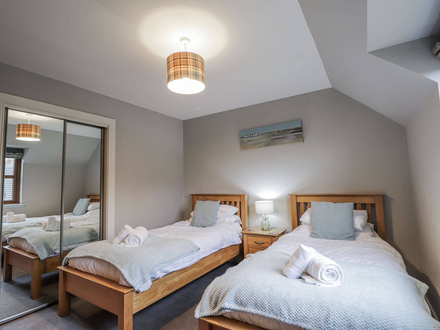 "Over two floors. Three bedrooms: 1 x king-size with en-suite shower, basin and WC, 1 x double, 1 x twin. Bathroom with bath, walk-in shower, basin and WC. Cloakroom with basin and WC. Kitchen/diner. Utility. Sitting room with woodburning stove"