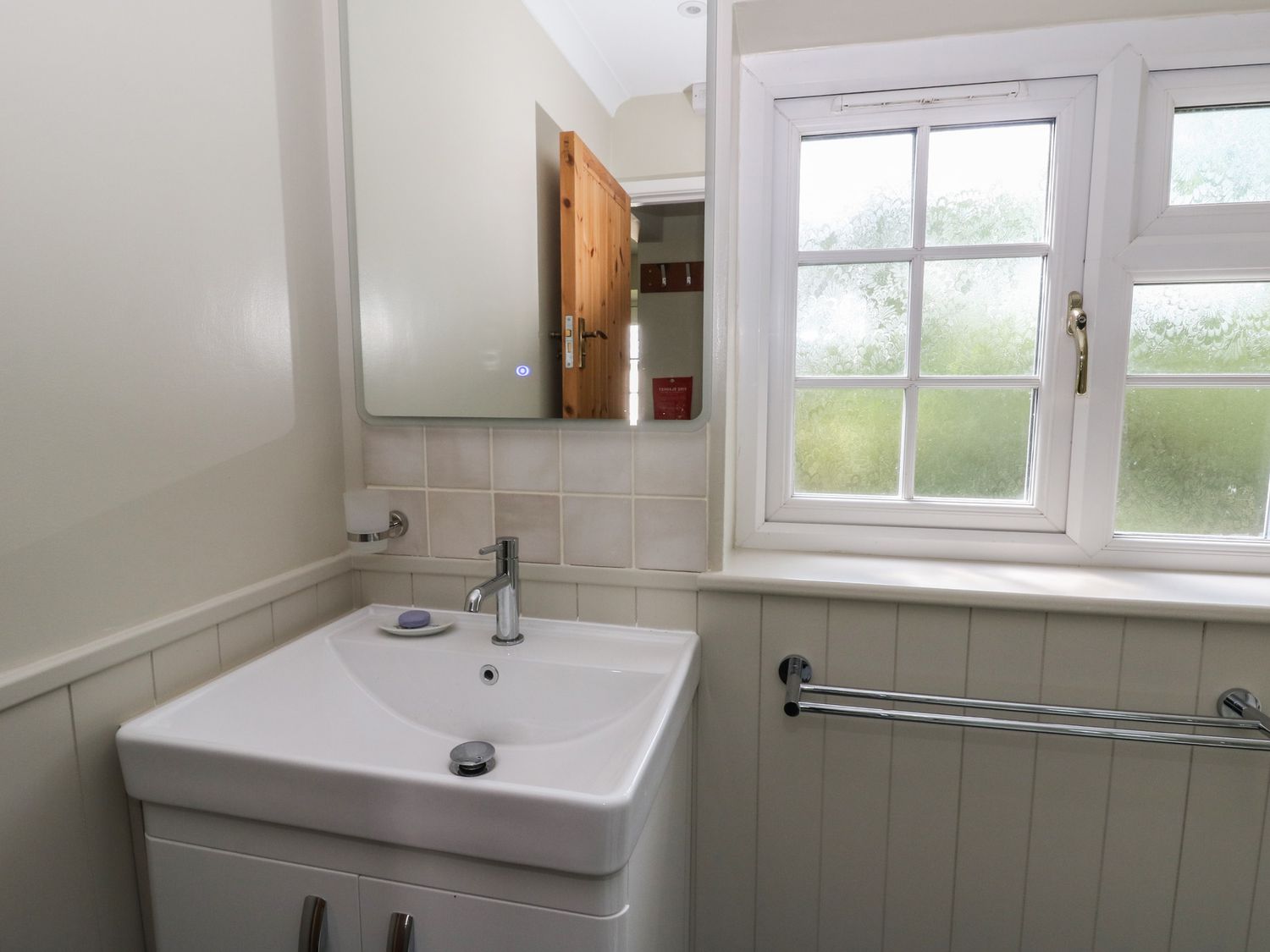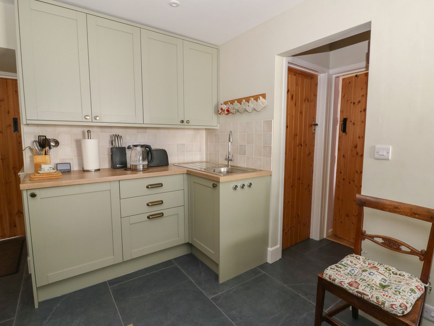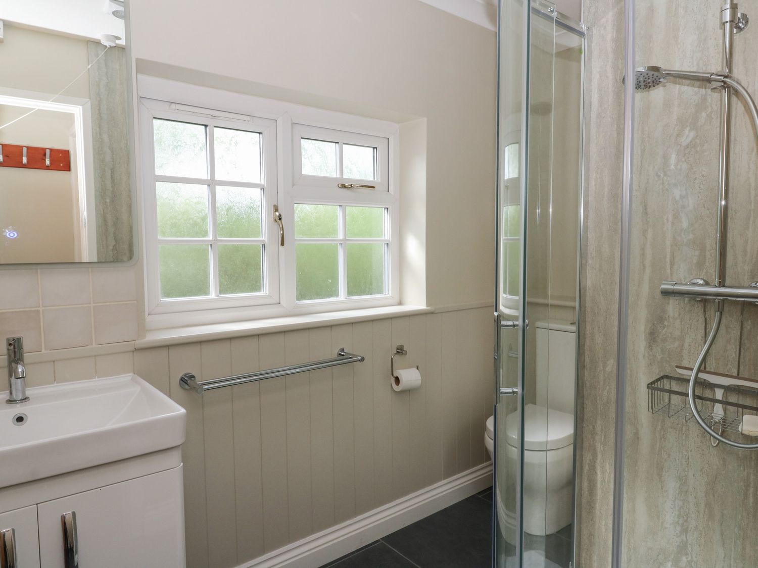 "Single-storey. Two bedrooms: 1 x double, 1 x twin. Shower room with walk-in shower, basin and WC. Open-plan living space with kitchen, dining area and sitting area with woodburning stove