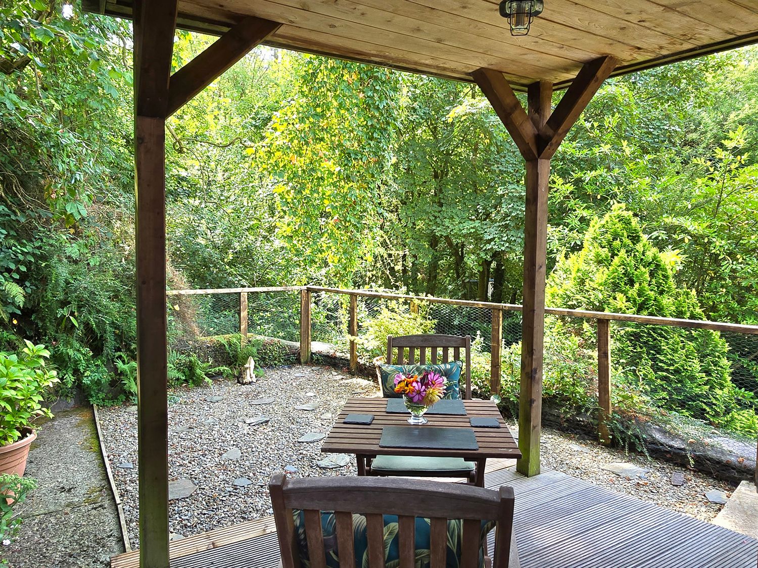 "Ty Barddu is single-storey and has one king-size double with en-suite shower, basin and WC, along with an open-plan living area with kitchen, dining area and sitting area. Appliances include an electric cooker, microwave, and fridge, and for entertainment there is a Smart TV, WiFi, Netflix free for guests, and a selection of books. Outside, there is off-road parking for one car and a veranda with a table and chairs. One well-behaved dog welcome. There is a -ú30 per pet, per holiday supplement in place for this property.. Fuel, power, bed linen and towels are all included in the rent. Sorry, this is a smoke-free property. You can find a shop within 5 miles and a pub within 3.7 miles. Note: There are 10 steps up to this property, therefore it may not be suitable for those with limited mobility. Note: This property is not suitable for babies or children. Ty Barddu is a lovely escape for a break in South Wales."
