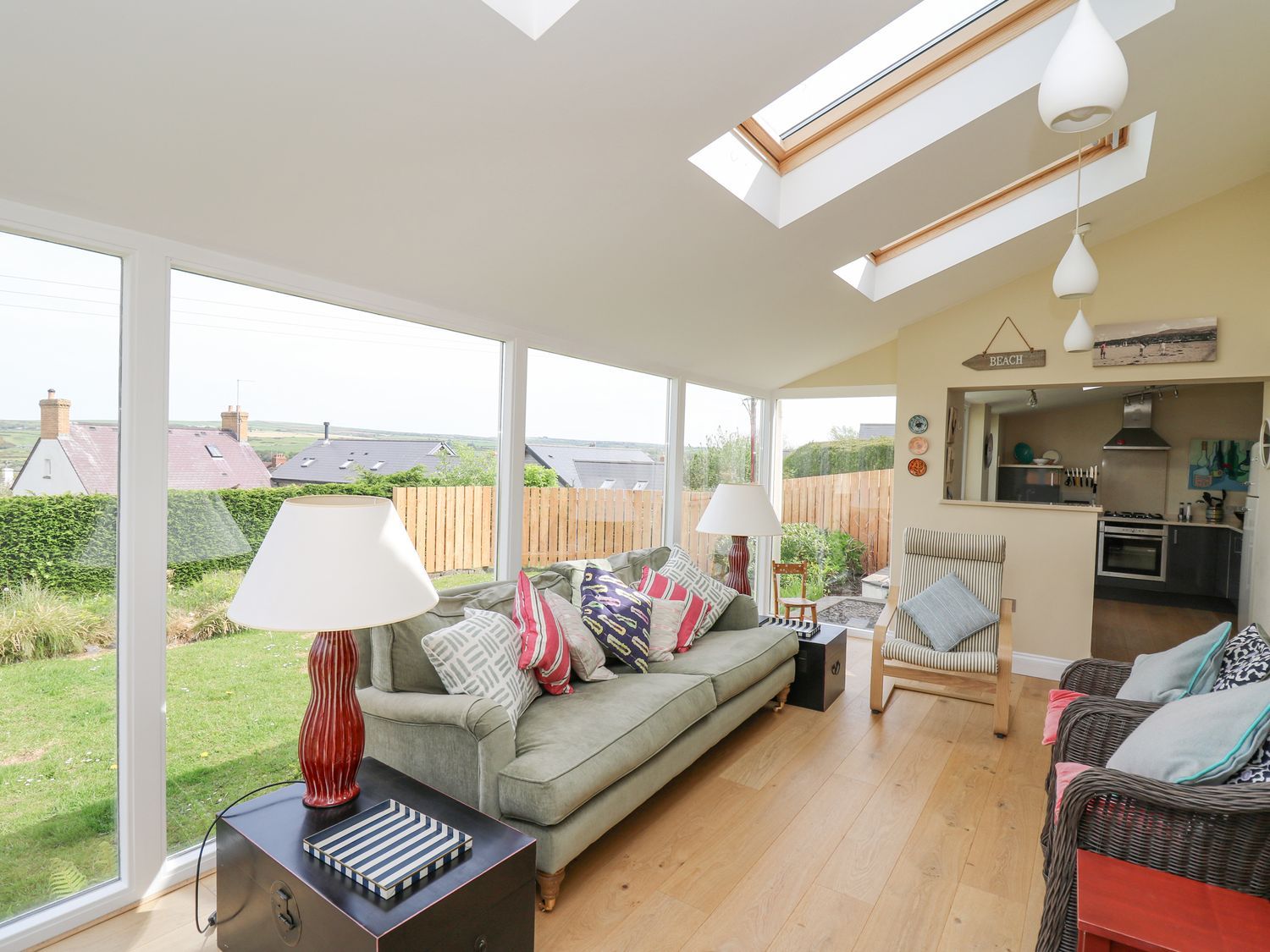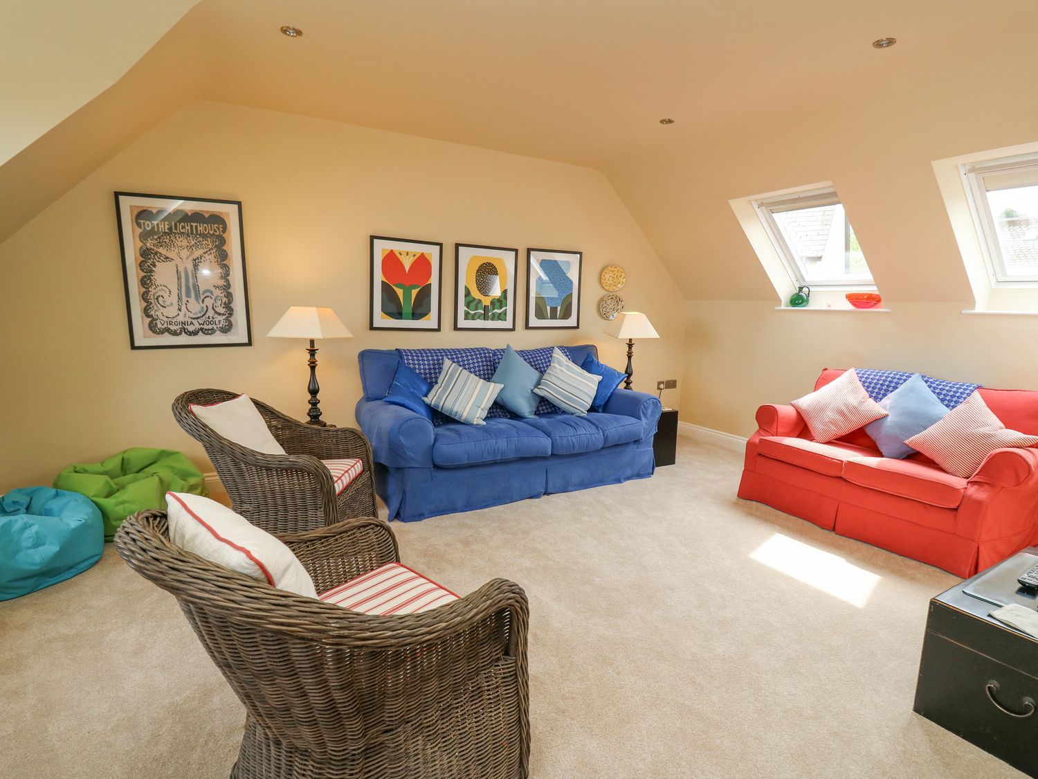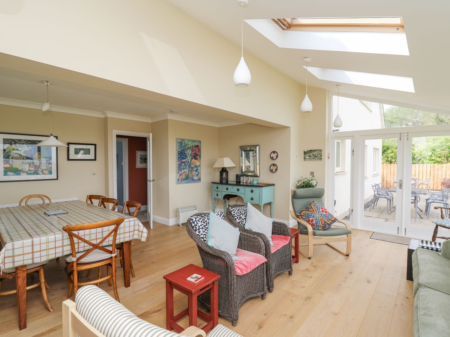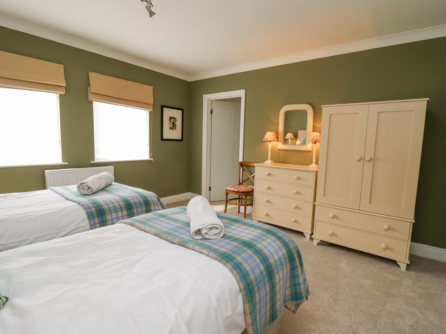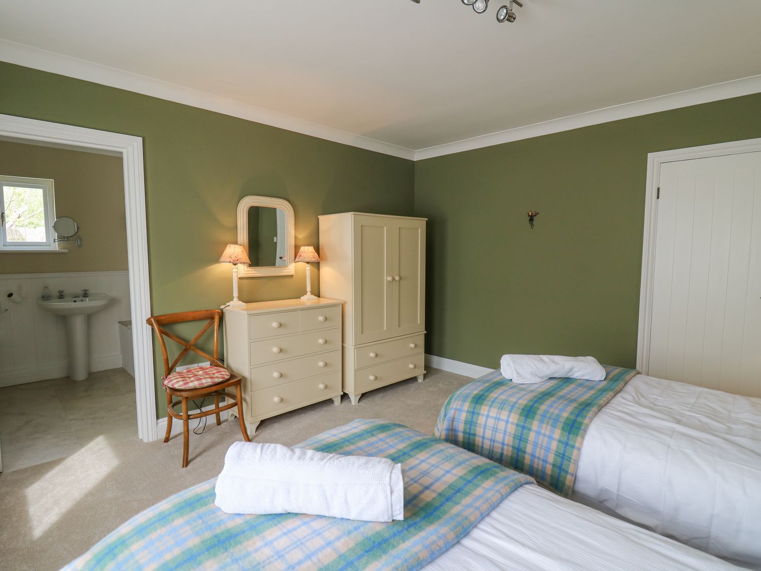 "Five bedrooms: 1 x ground-floor twin en-suite bedroom with bath and shower over. 2 x ground-floor king-size with en-suite walk-in shower, basin and WC. 1 x ground-floor king-size bedroom. 1 x twin (with access to the family bathroom). Ground-floor bathroom with bath, shower over, basin and WC. Open-plan living space with kitchen,dining and sitting area. First-floor sitting room with Smart TV and kitchenette. Utility Room. "