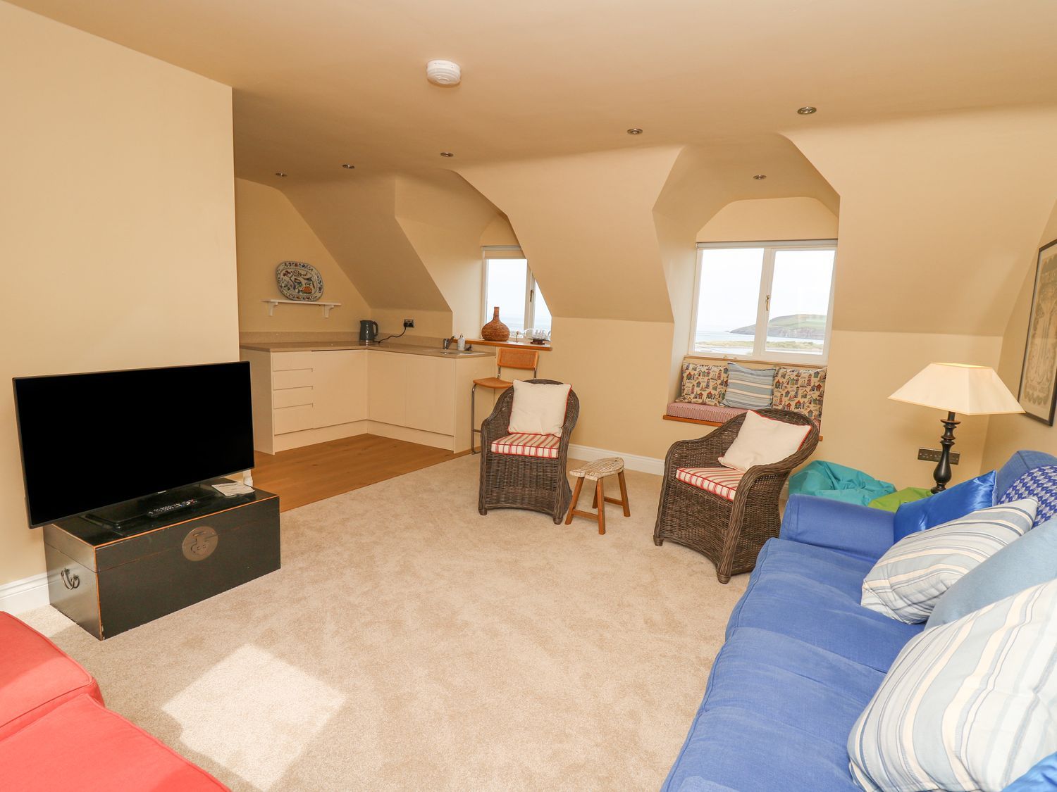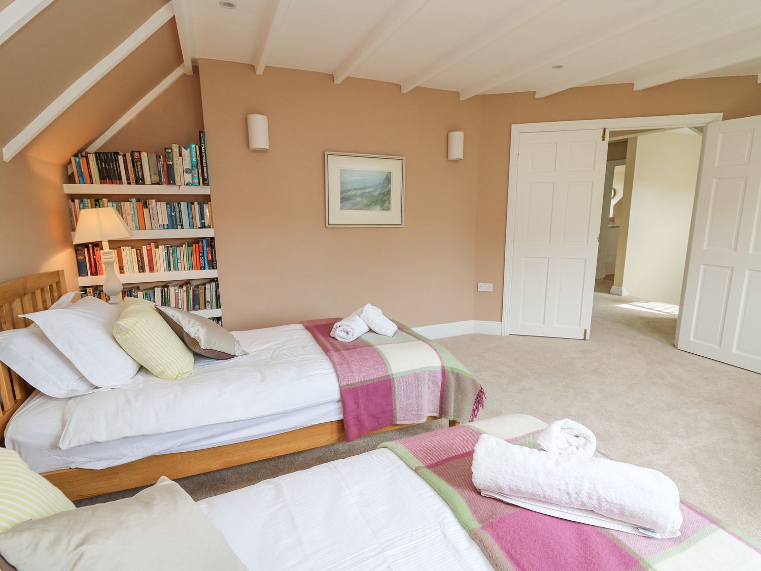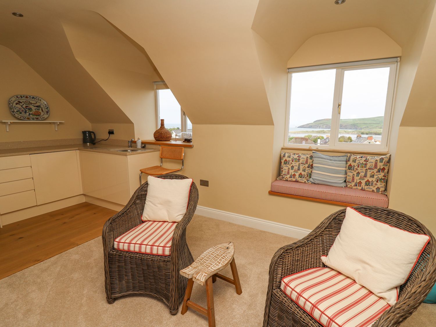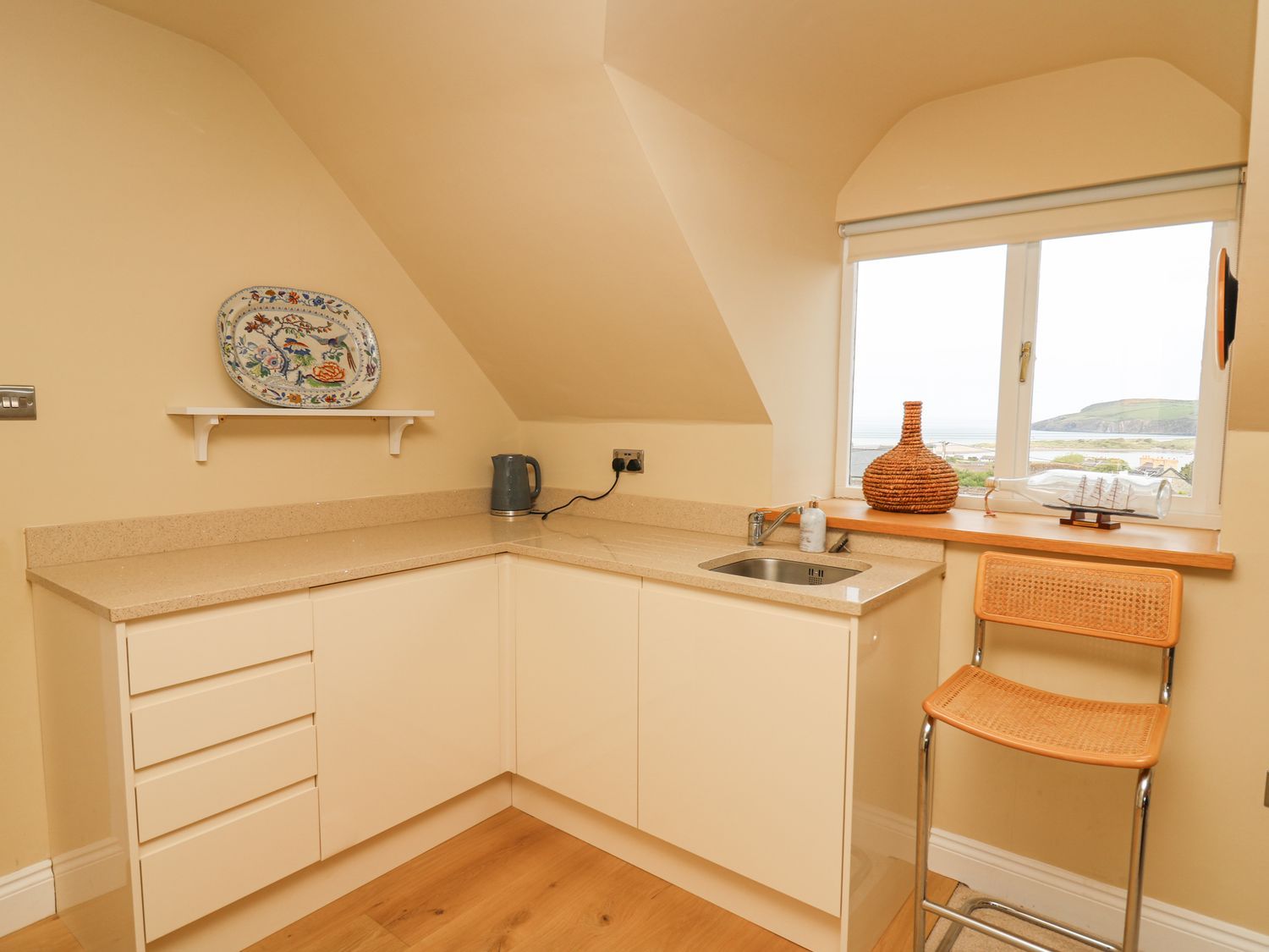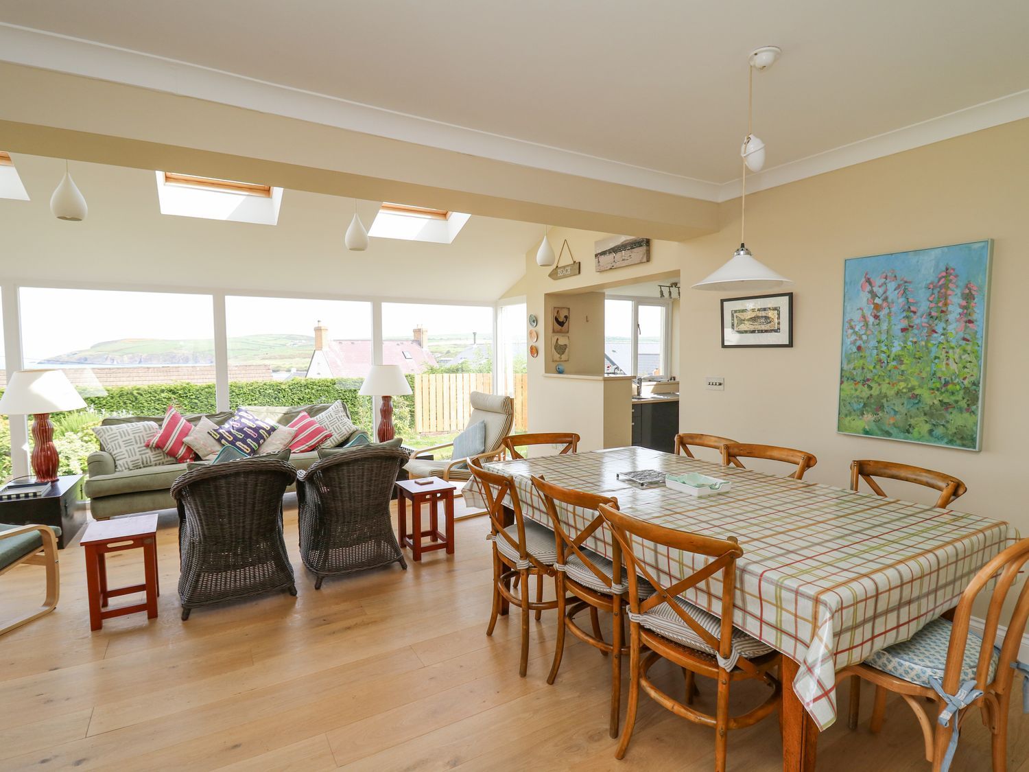 "Five bedrooms: 1 x ground-floor twin en-suite bedroom with bath and shower over. 2 x ground-floor king-size with en-suite walk-in shower, basin and WC. 1 x ground-floor king-size bedroom. 1 x twin (with access to the family bathroom). Ground-floor bathroom with bath, shower over, basin and WC. Open-plan living space with kitchen,dining and sitting area. First-floor sitting room with Smart TV and kitchenette. Utility Room. "