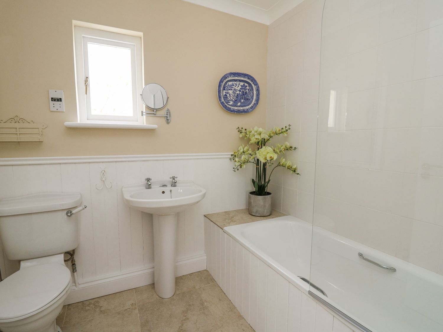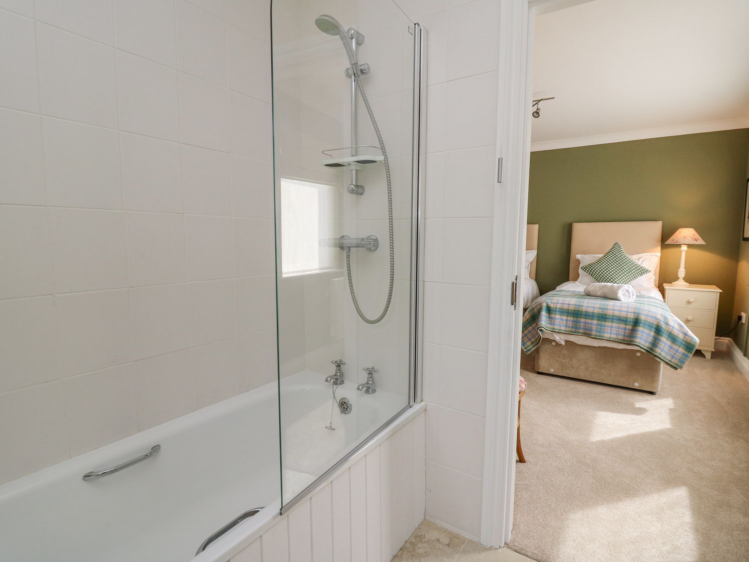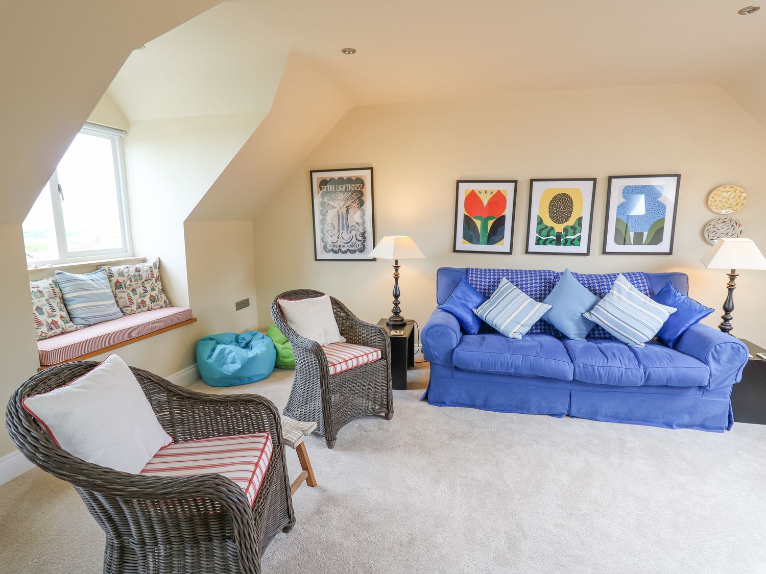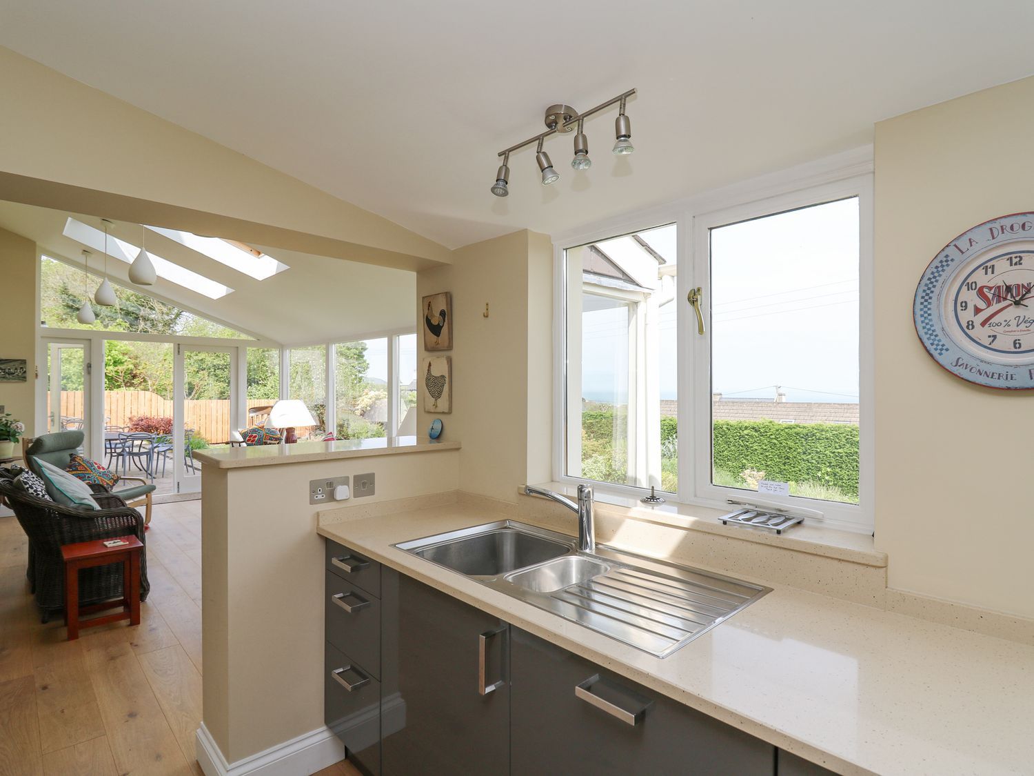 "Tree Tops consists of an open-plan living space with a kitchen, dining and sitting area with a Gas oven and hob, fridge/freezer, kettle, toaster and dining seating, a first-floor sitting room with a Smart TV and kitchenette and a Utility Room. The bedrooms consist of a ground-floor twin en-suite bedroom with bath and shower over, two ground-floor king-size with en-suite walk-in shower, basin and WC, a ground-floor king-size bedroom and a twin (with access to the family bathroom). Servicing these is a ground-floor bathroom with bath, shower over, basin and WC. Outside, there is off-road parking for 4 cars and an enclosed, private back garden (a slope at the edge of the garden means very young children should be supervised) with garden dining furniture. WiFi, fuel, power, bed linen and towels are all included in the price. Guests can find a shop within 0.2 miles and a pub in 0.1 mile. Enjoy a lovely stay at Tree Tops."