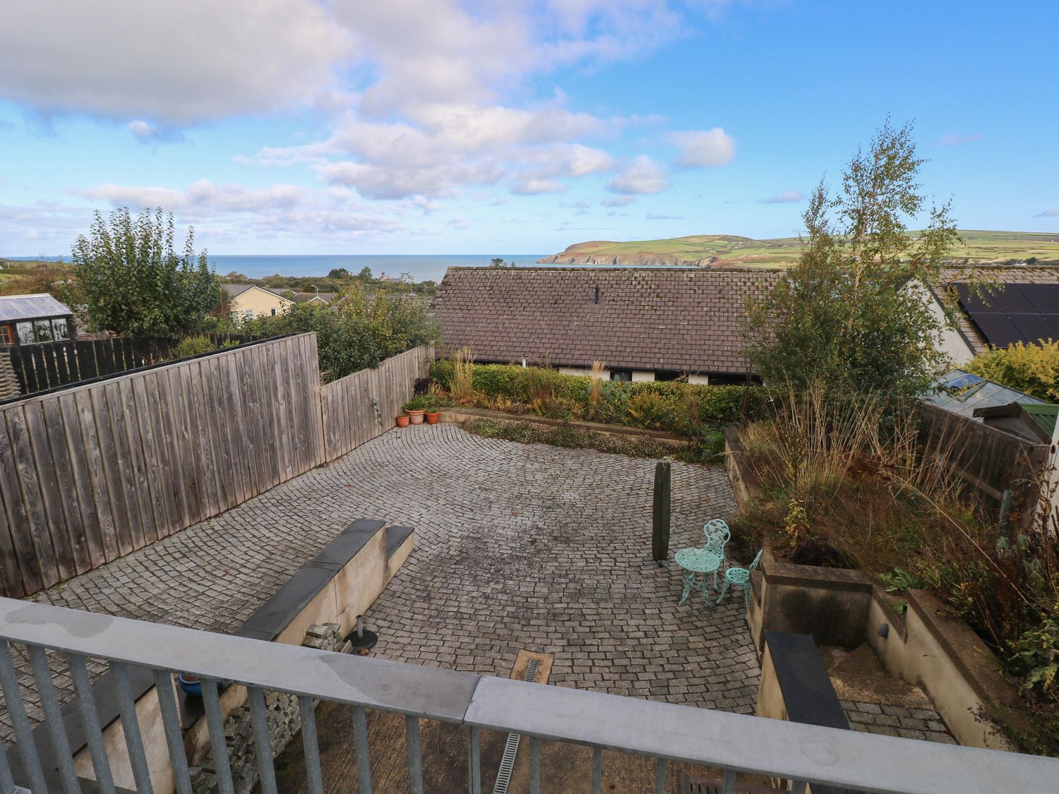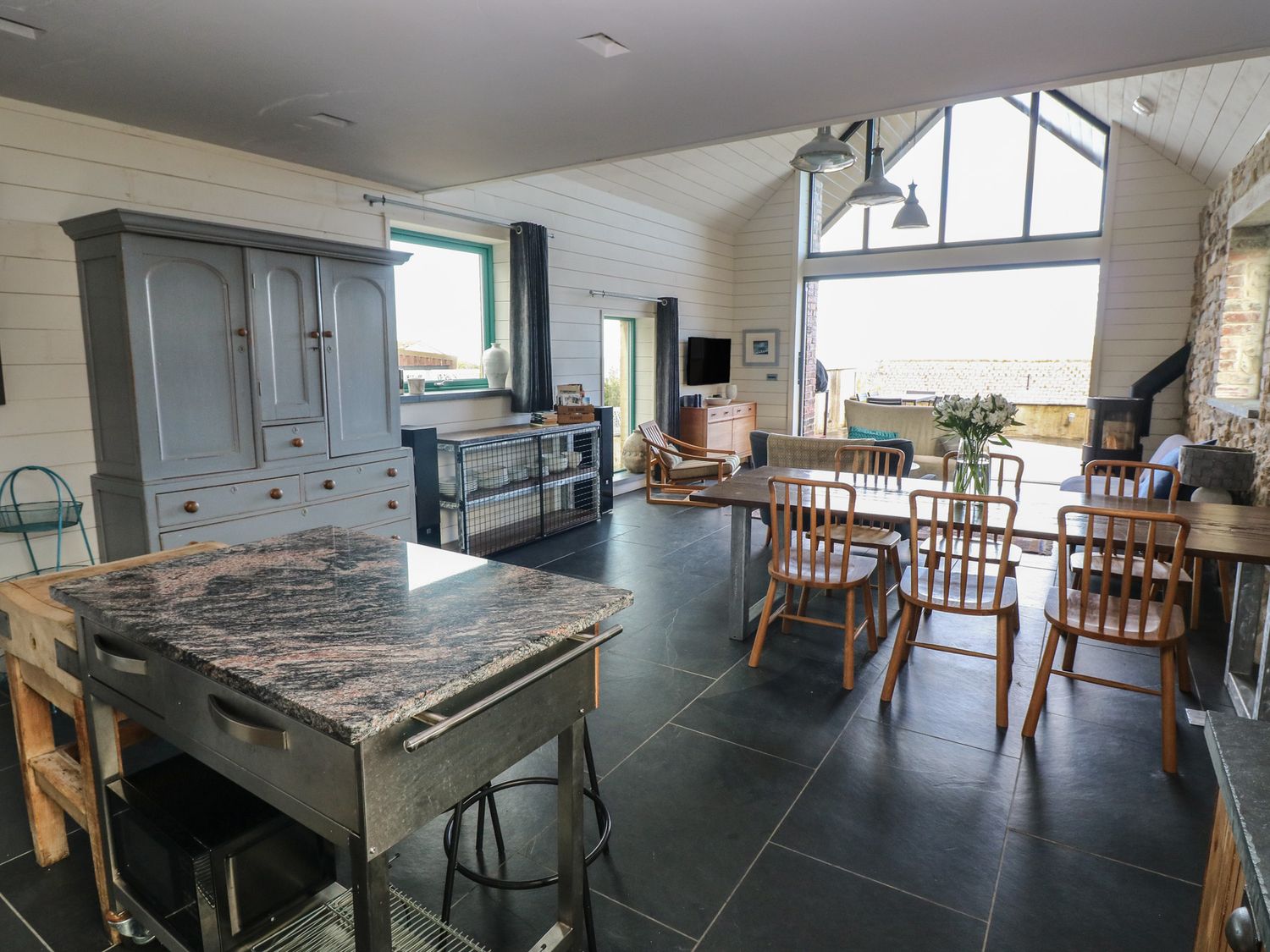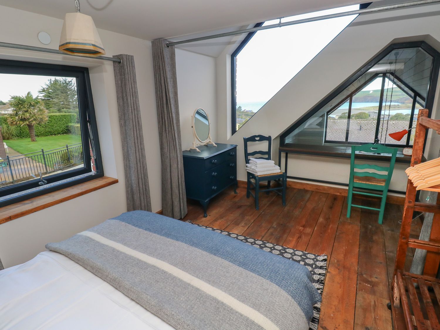 "The Barn, a house over two floors, consists of a kitchen/diner with electric oven, gas hob, microwave, kettle, toaster, washing machine, dishwasher, dining table for six and breakfast bar for two, a utility, a sitting room with woodburning stove, three sofas, armchair, smart TV, patio doors out onto decking and exposed stonework. Also a reading room with an extensive library with sofa and armchair. The bedrooms consist of a first-floor king-size double, a first-floor double and a first-floor adult bunk bed. There is also a first-floor bathroom with freestanding bath, basin and WC. Large windows and wet room with walk-in shower, basin, and WC. WiFi, fuel, power, bed linen, and towels included in the rent. Outside, there is an enclosed decking area with furniture and barbecue, sea views. Front enclosed patio area with furniture and off-road parking for three cars. Two well-behaved dogs welcome. Sorry, no smoking. Uncover the best of Pembrokeshire and its surrounding areas with a holiday at The Barn. Note: Please take care on the steps leading down the side of the house. Note: No access to third floor of the property. Note: This property requires a Good Housekeeping Bond of 250 GBP."