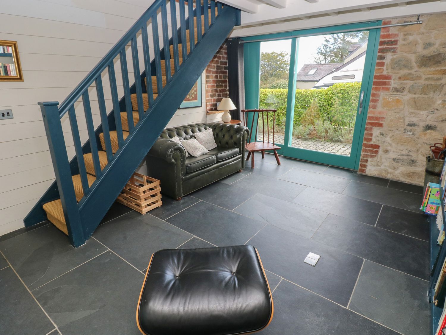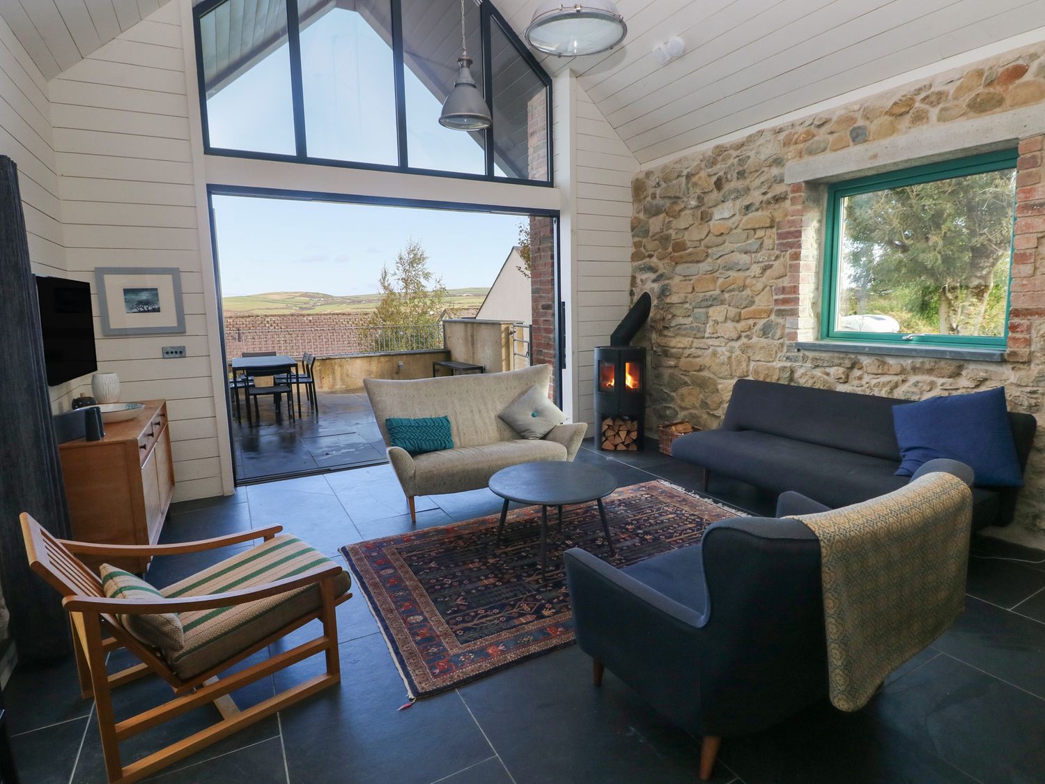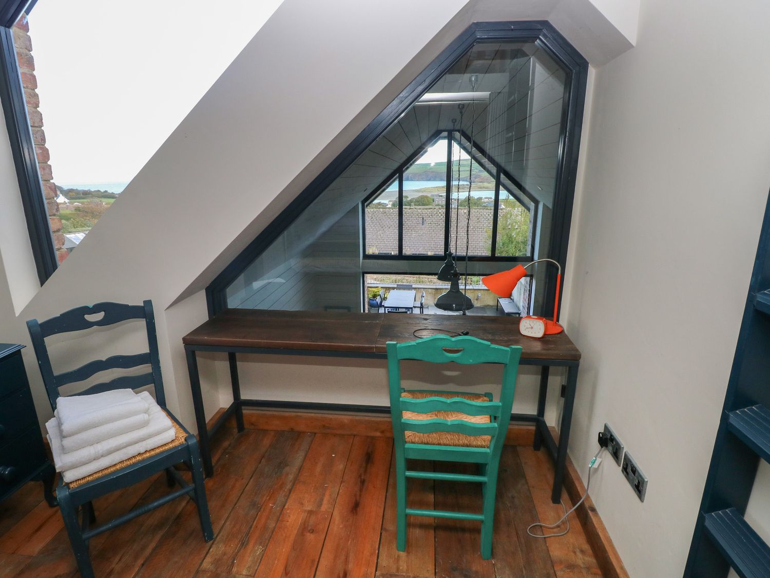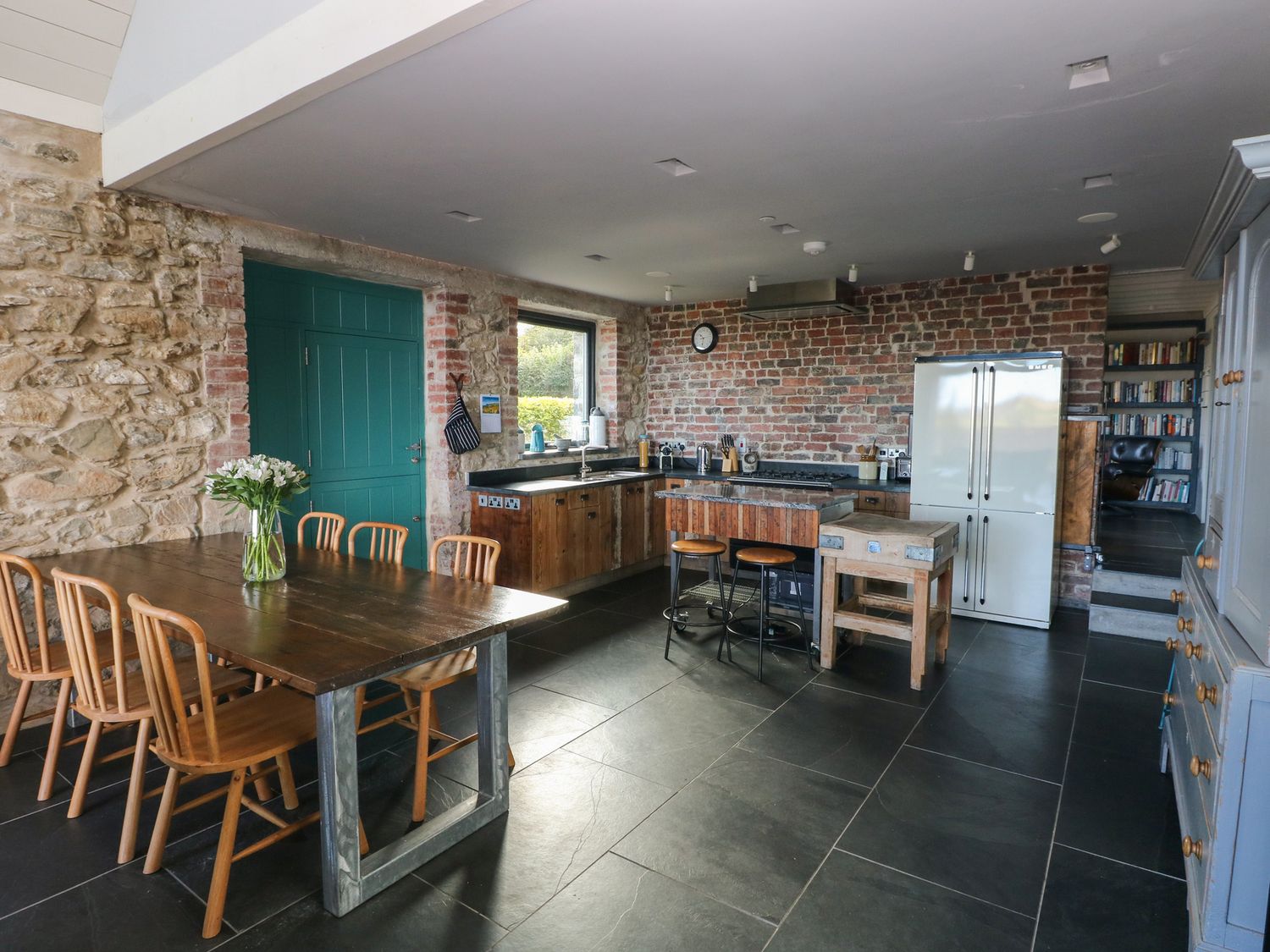 "The Barn, a house over two floors, consists of a kitchen/diner with electric oven, gas hob, microwave, kettle, toaster, washing machine, dishwasher, dining table for six and breakfast bar for two, a utility, a sitting room with woodburning stove, three sofas, armchair, smart TV, patio doors out onto decking and exposed stonework. Also a reading room with an extensive library with sofa and armchair. The bedrooms consist of a first-floor king-size double, a first-floor double and a first-floor adult bunk bed. There is also a first-floor bathroom with freestanding bath, basin and WC. Large windows and wet room with walk-in shower, basin, and WC. WiFi, fuel, power, bed linen, and towels included in the rent. Outside, there is an enclosed decking area with furniture and barbecue, sea views. Front enclosed patio area with furniture and off-road parking for three cars. Two well-behaved dogs welcome. Sorry, no smoking. Uncover the best of Pembrokeshire and its surrounding areas with a holiday at The Barn. Note: Please take care on the steps leading down the side of the house. Note: No access to third floor of the property. Note: This property requires a Good Housekeeping Bond of 250 GBP."