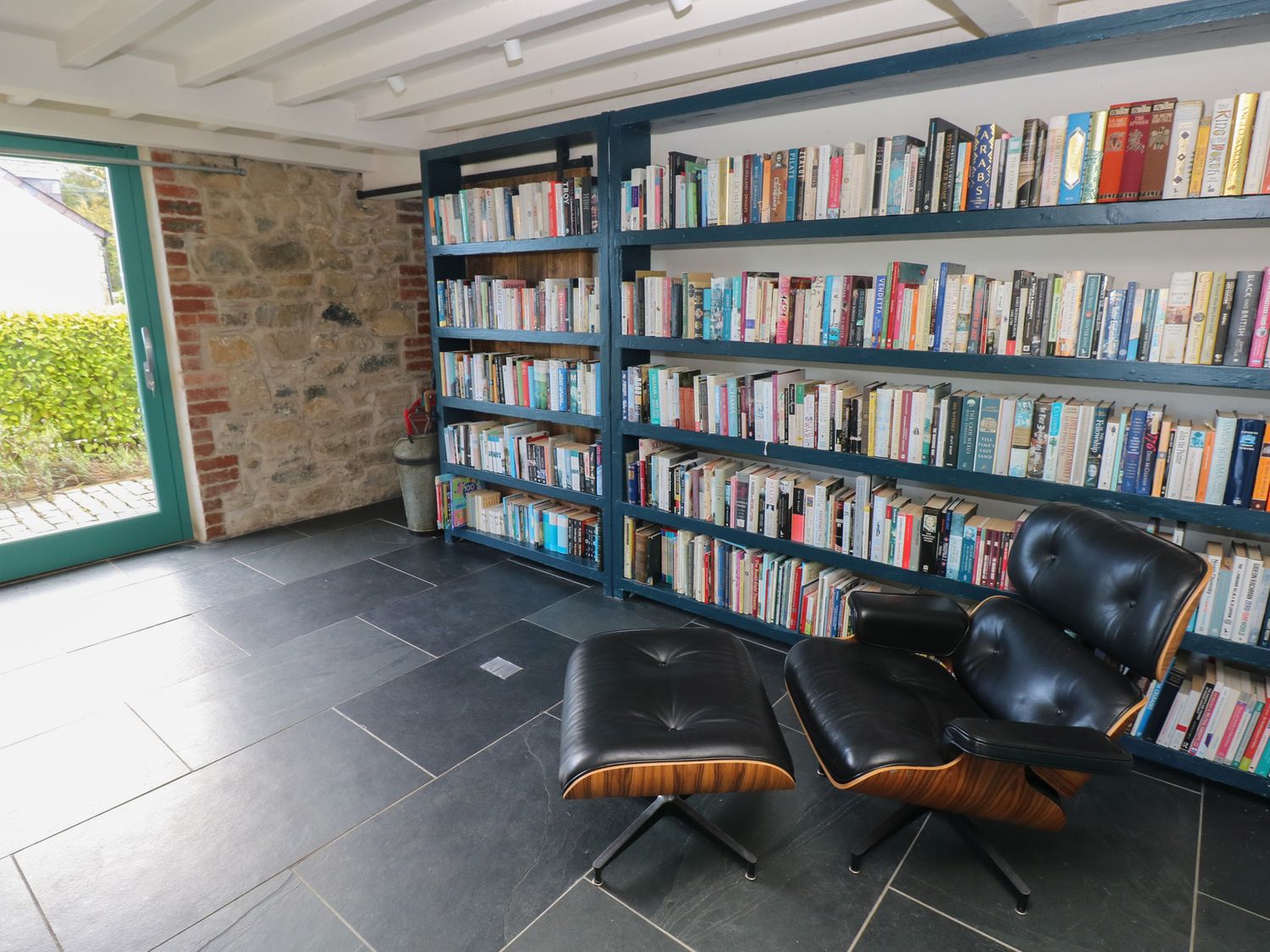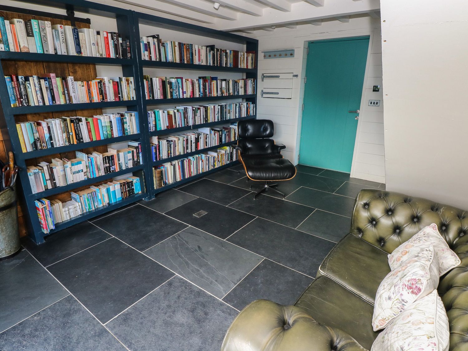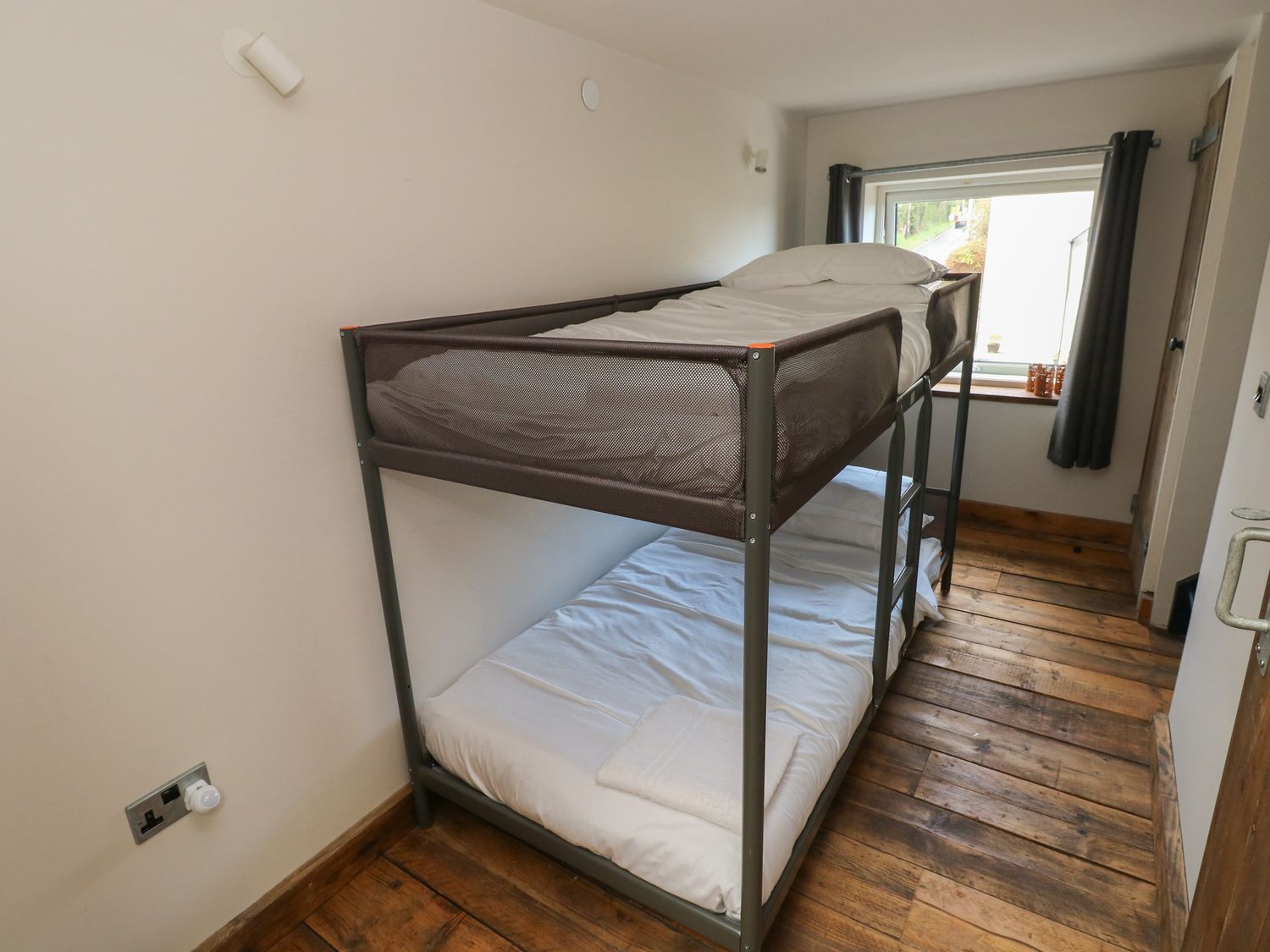 "Over two floors. Three bedrooms: 1 x first-floor king, 1 x first-floor double, 1 x first-floor adult bunk bed. First-floor bathroom with freestanding bath, basin. Ground-floor wet room with walk-in shower, basin, WC. Utility. Reading room with extensive library. Open-plan living space with kitchen/diner and sitting area with Woodburning stove"