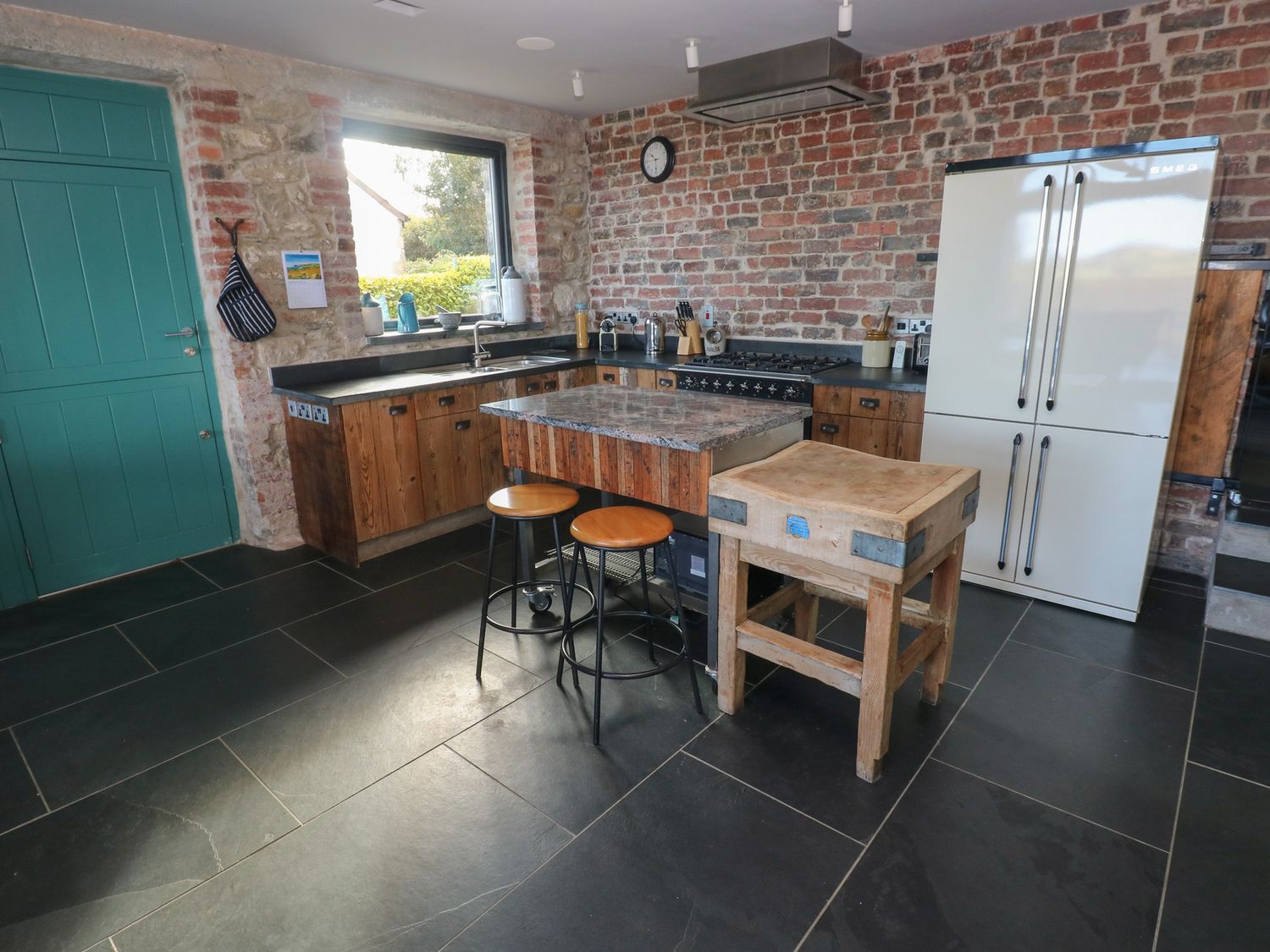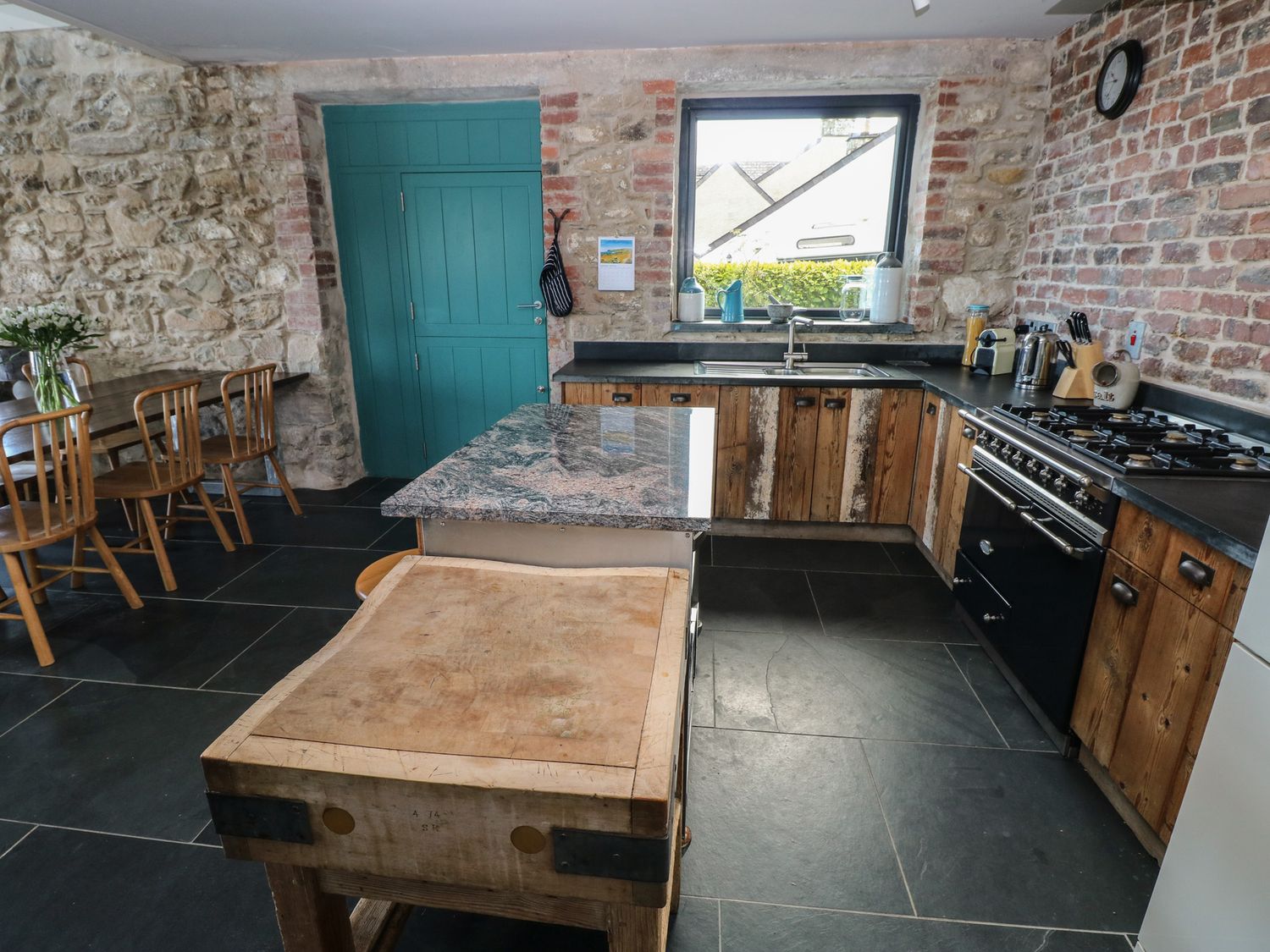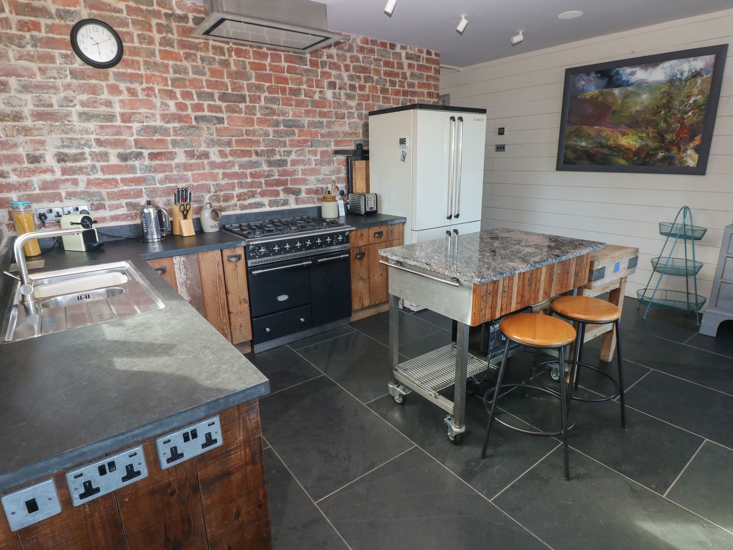 "Over two floors. Three bedrooms: 1 x first-floor king, 1 x first-floor double, 1 x first-floor adult bunk bed. First-floor bathroom with freestanding bath, basin. Ground-floor wet room with walk-in shower, basin, WC. Utility. Reading room with extensive library. Open-plan living space with kitchen/diner and sitting area with Woodburning stove"