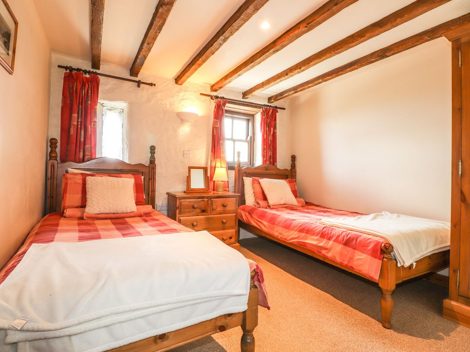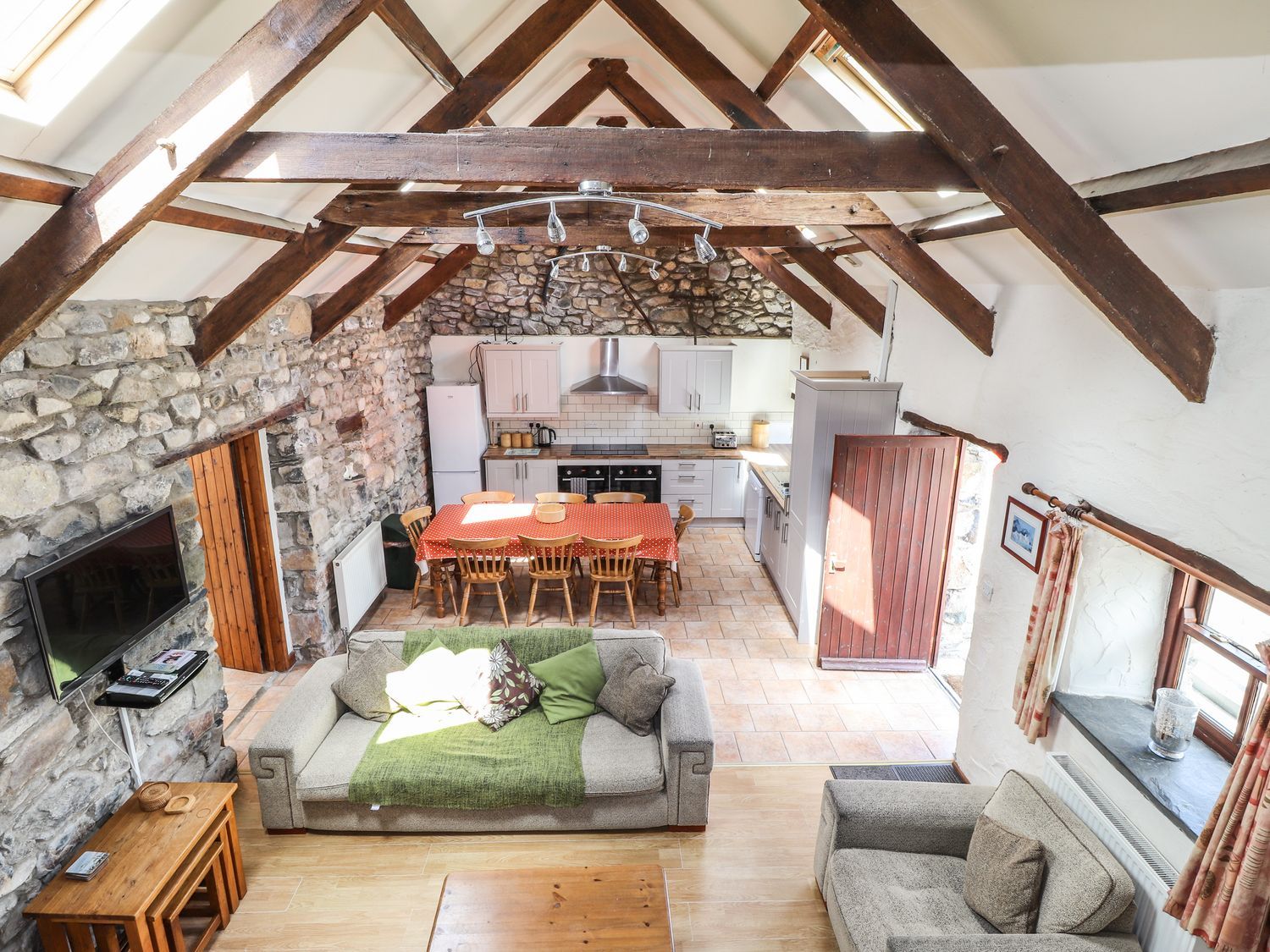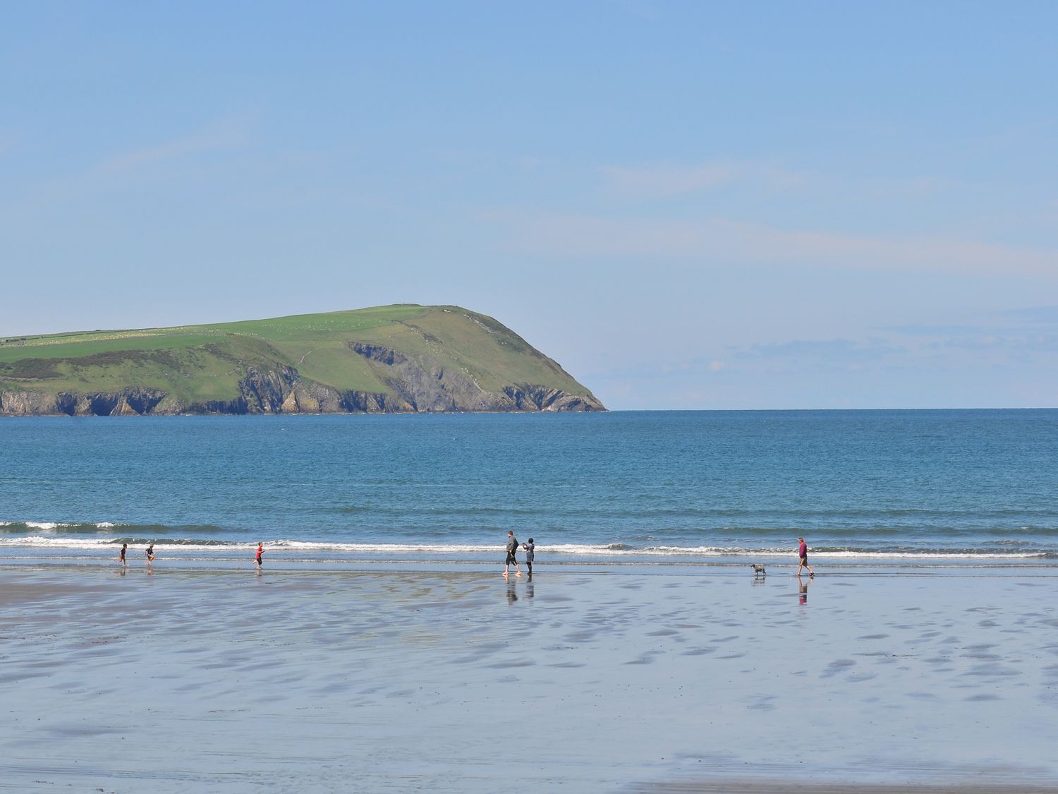 "Ty Felin is a stone barn conversion housing an open-plan living space with kitchen, dining and sitting area. Appliances include two electric ovens, a 5-ring hob, microwave, fridge/freezer, washing machine and dishwasher, and for entertainment there is a TV, DVD player, HiFi, WiFi and a selection of CDs, books and games. The bedrooms include a king-size, twin and a quadruple room with four single beds with en-suite cloakroom, served by a wetroom. There is also a utility with extra shower. Outside there is a lawned garden with furniture and off-road parking for two cars. Within 1 mile or less there is a shop, pub and beach and please note, two well-behaved pets are welcome but sorry, there is no smoking. Fuel, power, bed linen and towels are included in rent. Ty Felin is a delightful base for exploring this part of Pembrokeshire. Note: EV charging is strictly prohibited. Note: Please bring your own beach towels and cot linen. Note: Additional pets welcome at a charge. Note: This property has a Good Housekeeping bond of 75 GBP."