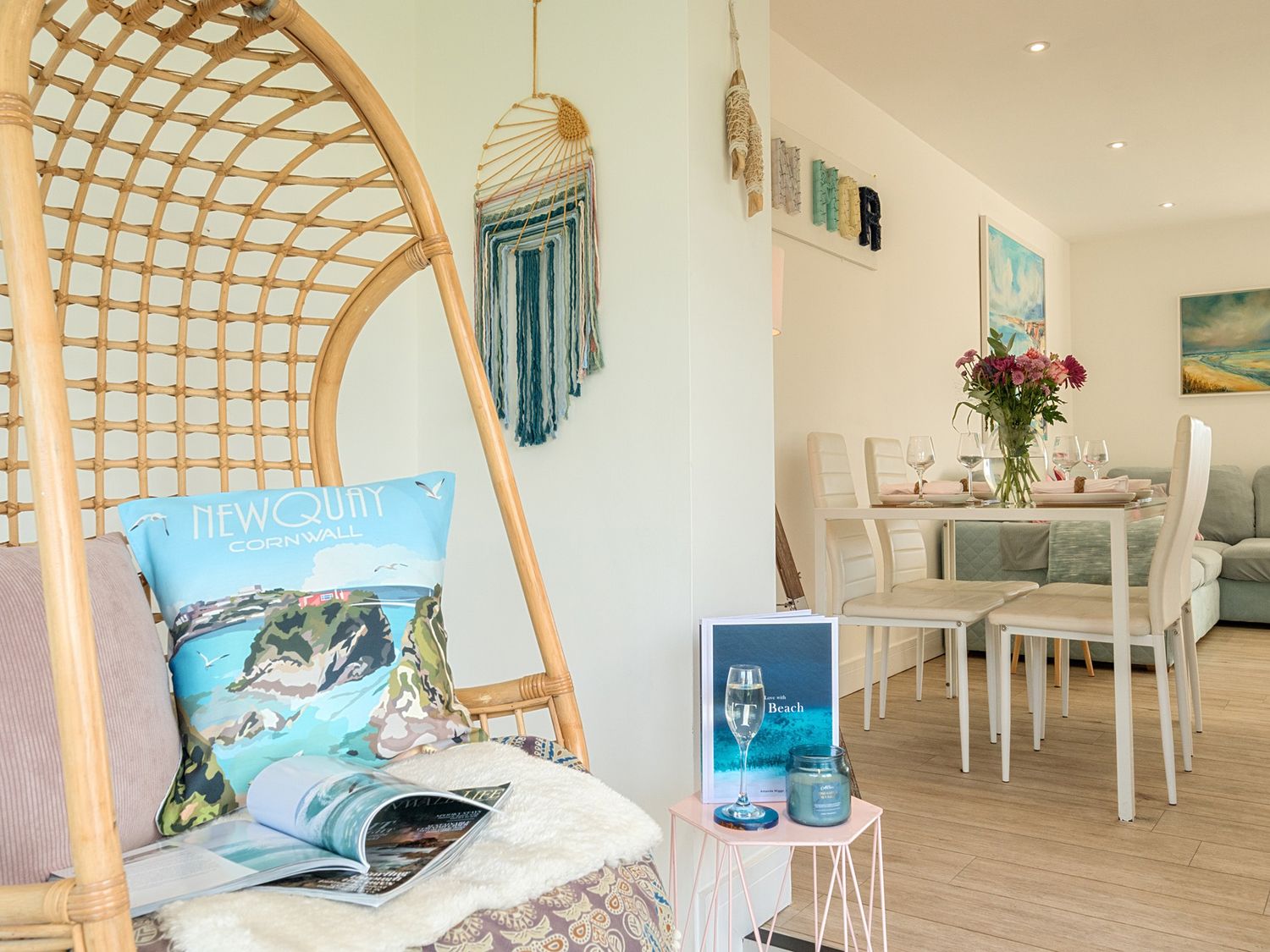 "19 Greenback Cresent is a detached bungalow that is situated in the village of Porth, near the town Newquay in Cornwall. The property hosts two bedrooms, one a super king-size double (zip/link, can be made into a twin upon request) and one double bed. Also inside the property is a sitting room/dining, a sun room, kitchen, and a utility room, and one bathroom with a hand held shower, basin, and WC. The property has road side parking. The property also includes a two tier patio and garden with an outdoor seating area, coffee table, hammock, and hot tub.19 Greenback Cresent is the perfect tranquil Cornish getaway for families who love the sand and sun, whatever the season. 2 pets allowed."