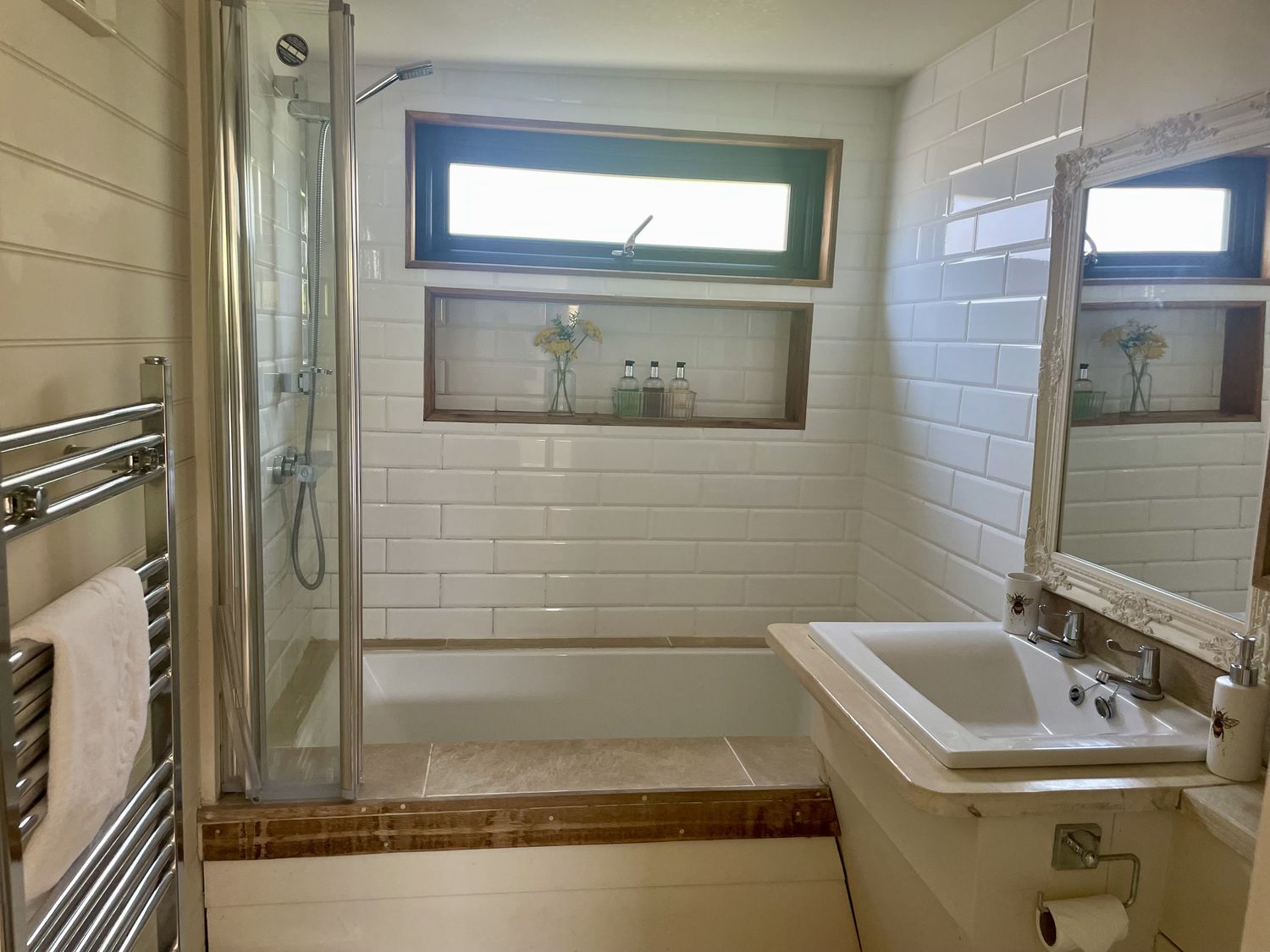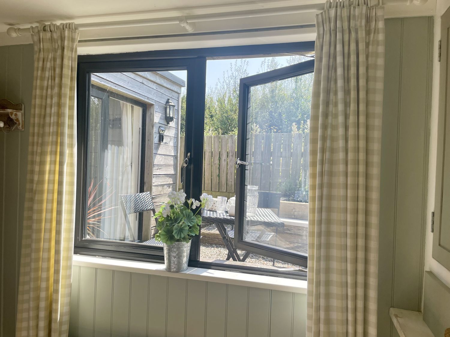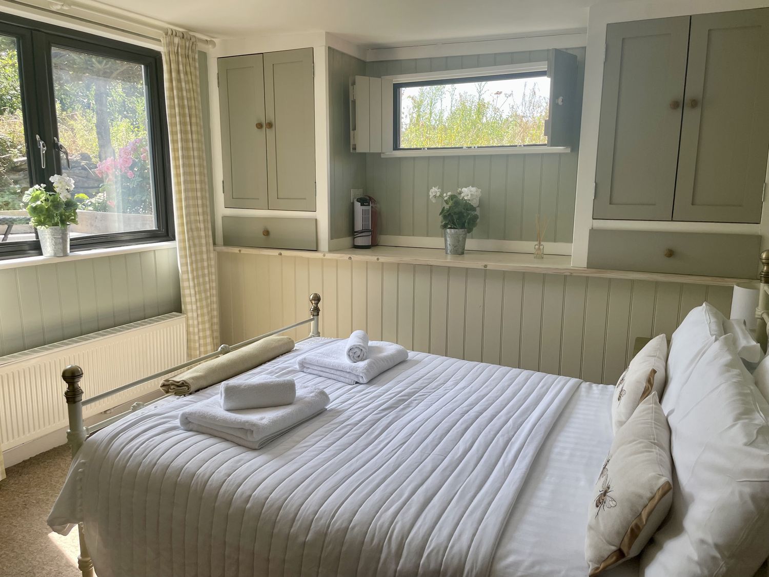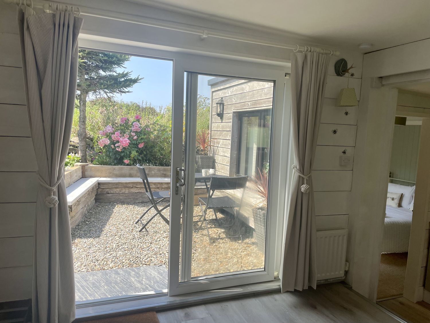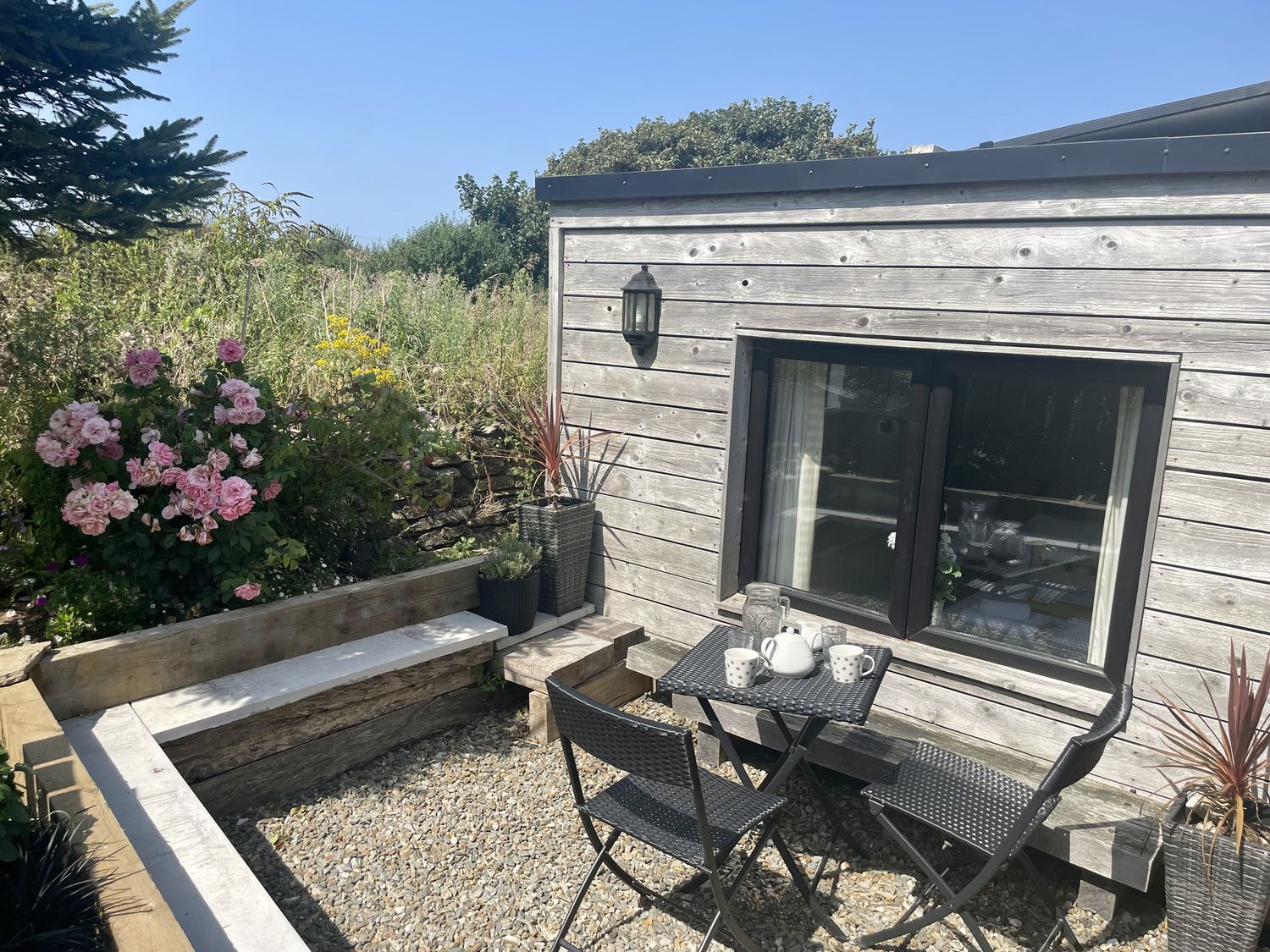 "Single-storey. One double bedroom with en-suite walk-in shower, bath, basin and WC. Open-plan living space with kitchen, dining area and sitting area. Small private outdoor garden with integrated seating and bistro set. "