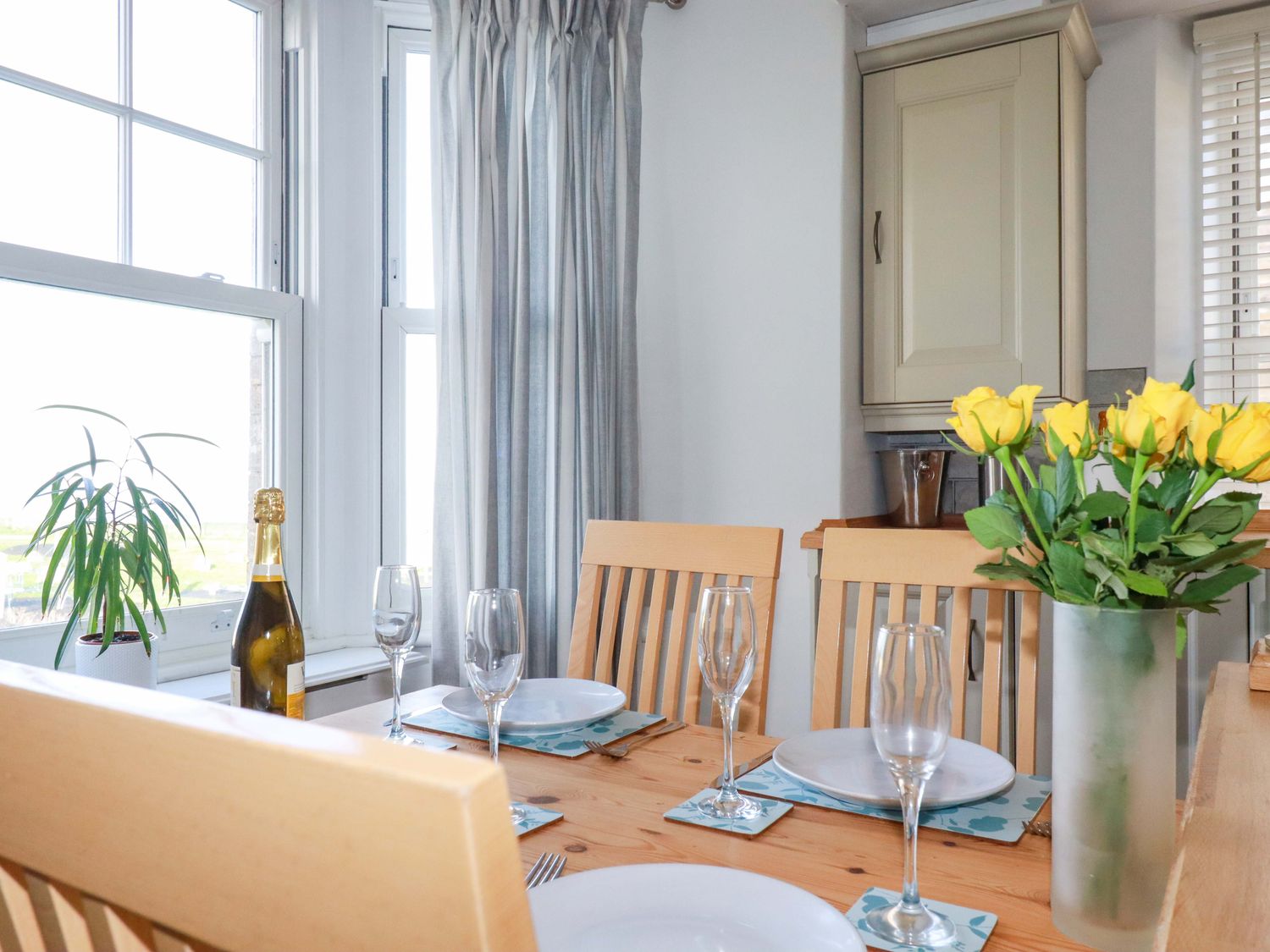 "First-floor apartment. Two bedrooms: 1 x double with en-suite walk-in shower, basin, heated towel rail and WC, 1 x twin. Bathroom with bath, shower over, basin, heated towel rail and WC. Open-plan living space with kitchen, dining area and sitting area."
