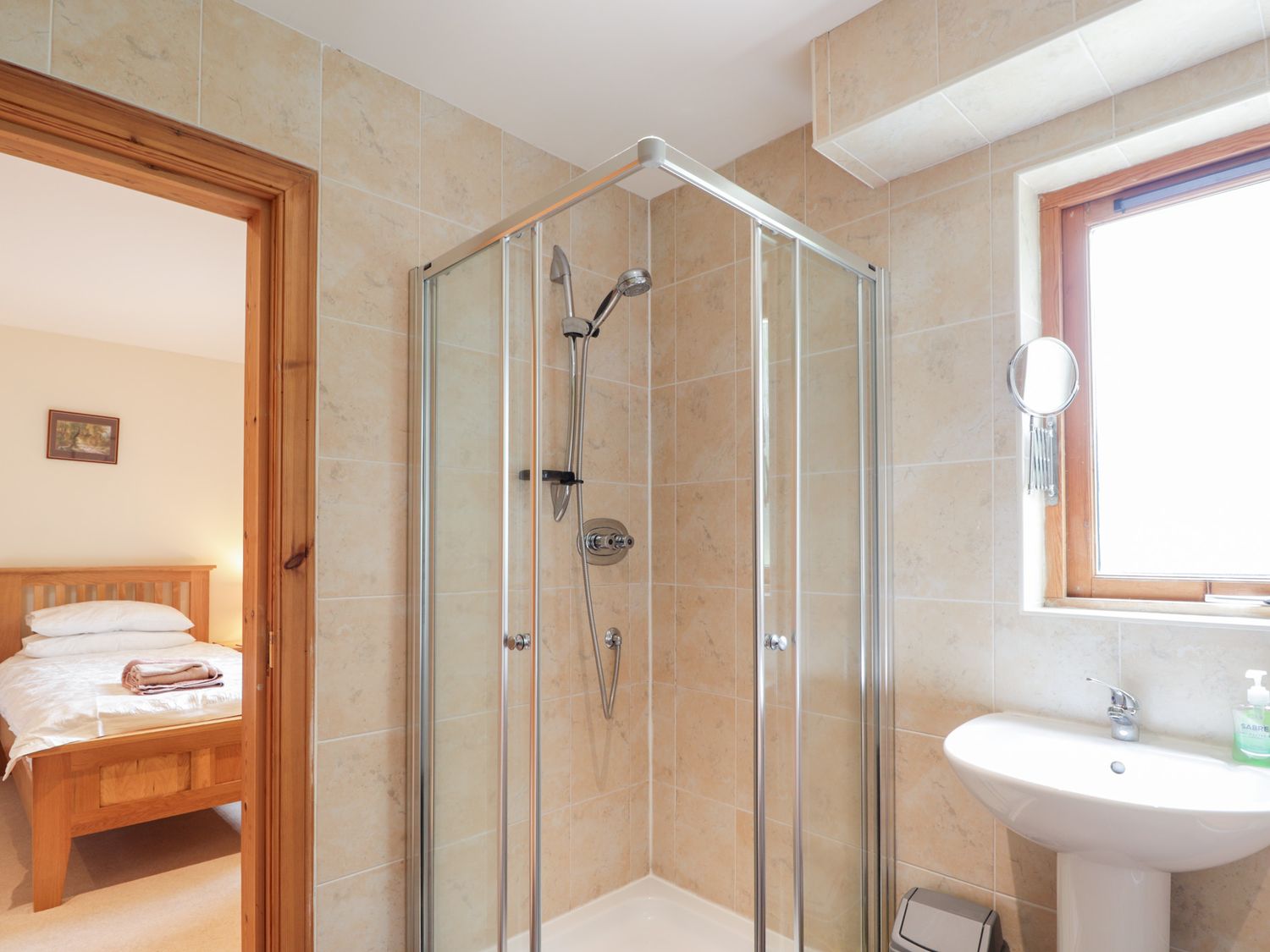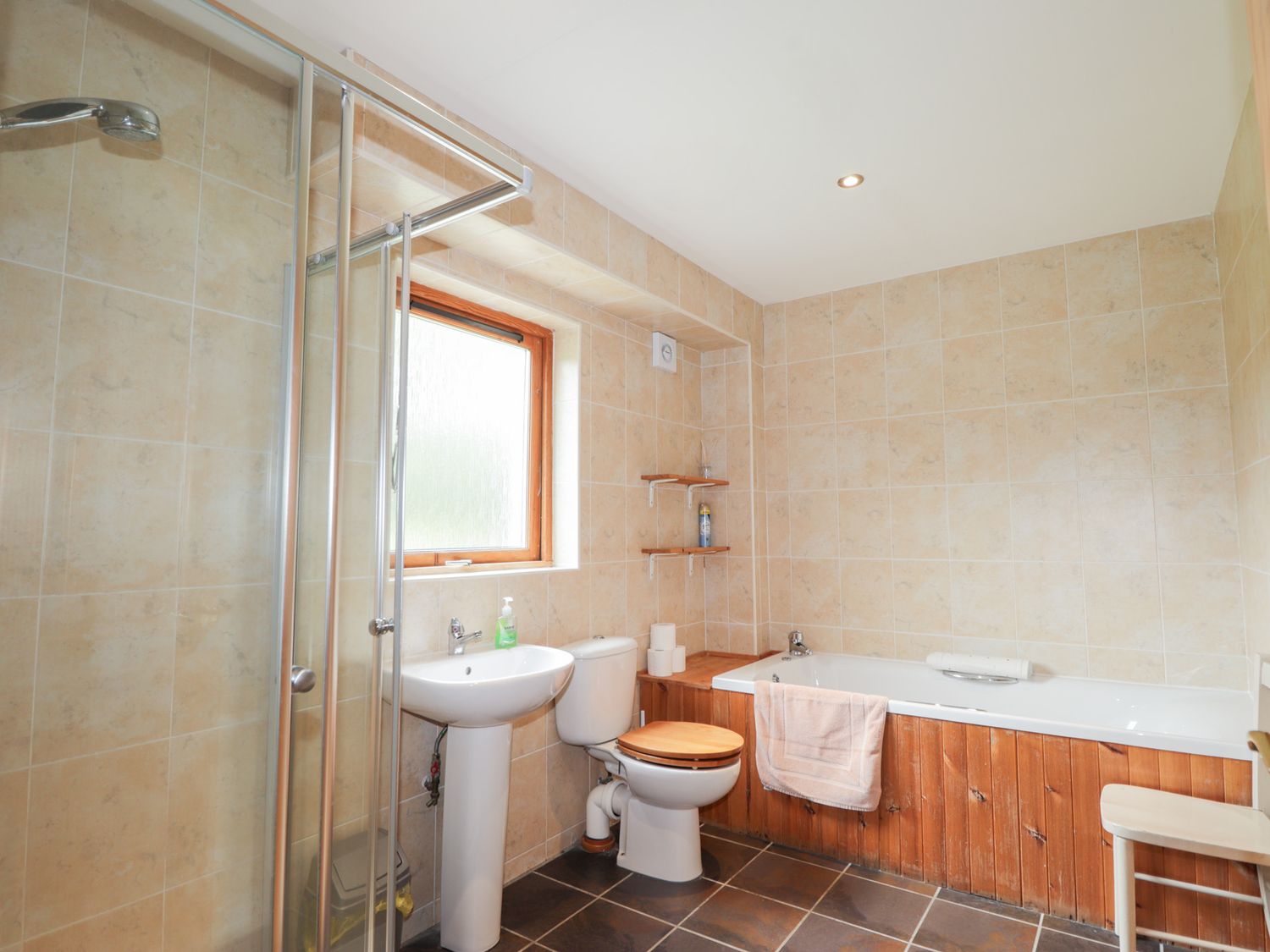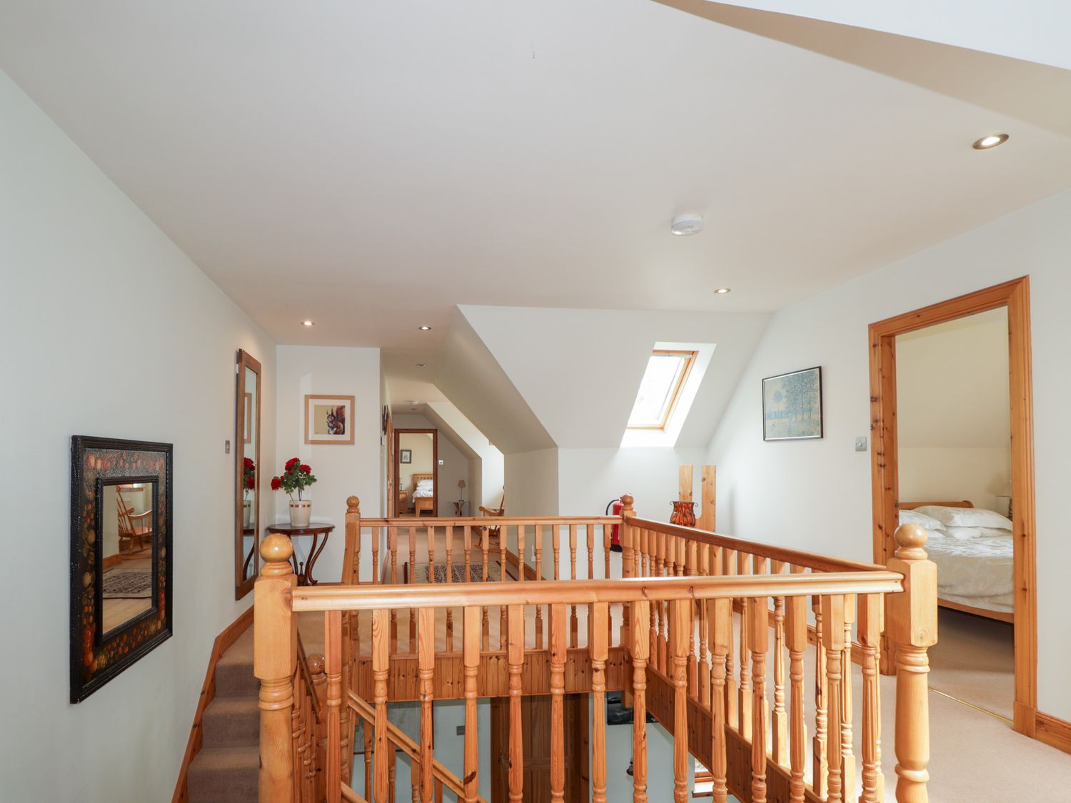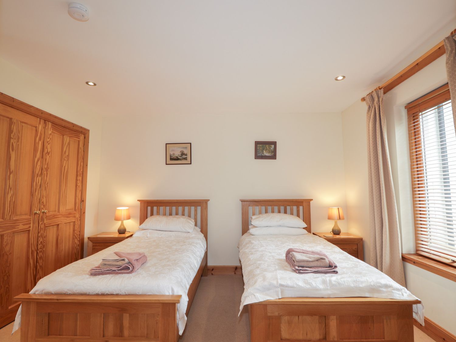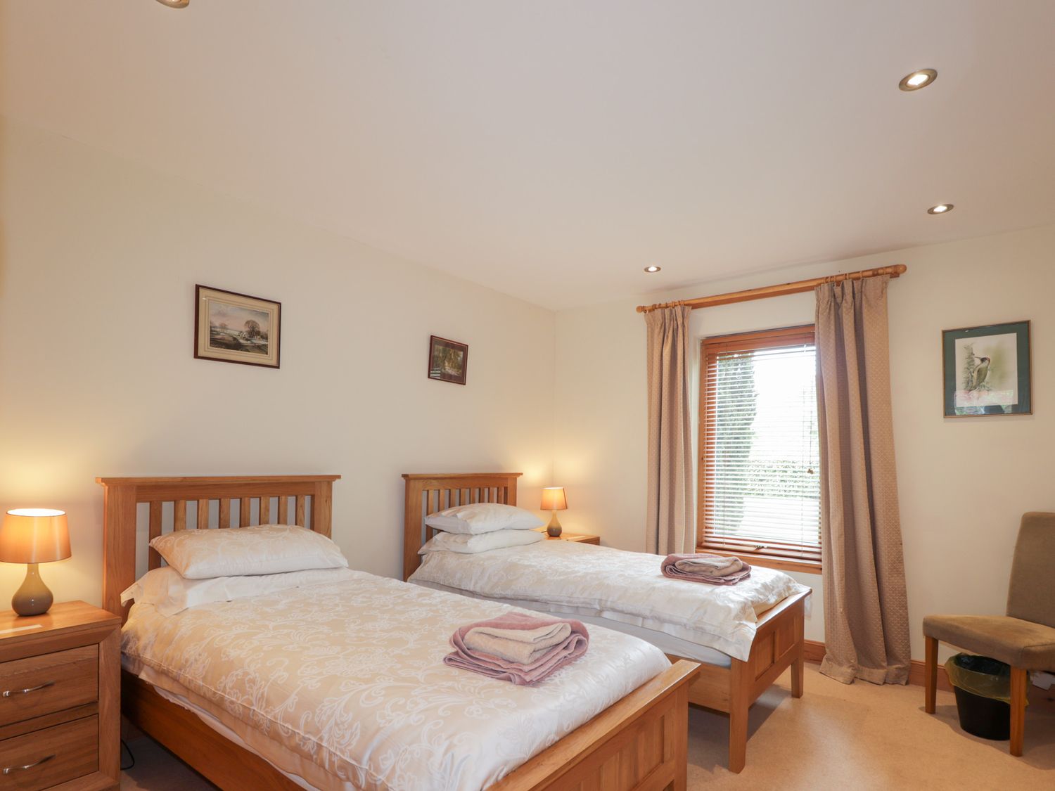 "Five bedrooms: 1 x super king-size double with dressing room and en-suite bath, shower over, basin and WC, 1 x king-size double, 1 x twin, 1 x ground floor twin with Jack-and-Jill access to bathroom, 1 x ground floor family room with 1 king-size double and 1 single with pull-out stacker bed. Bathroom with bath, shower over, basin and WC. Ground floor bathroom with bath, separate shower, basin and WC. Kitchen with dining area. Utility. Dining room (seats 10). First floor sitting room."