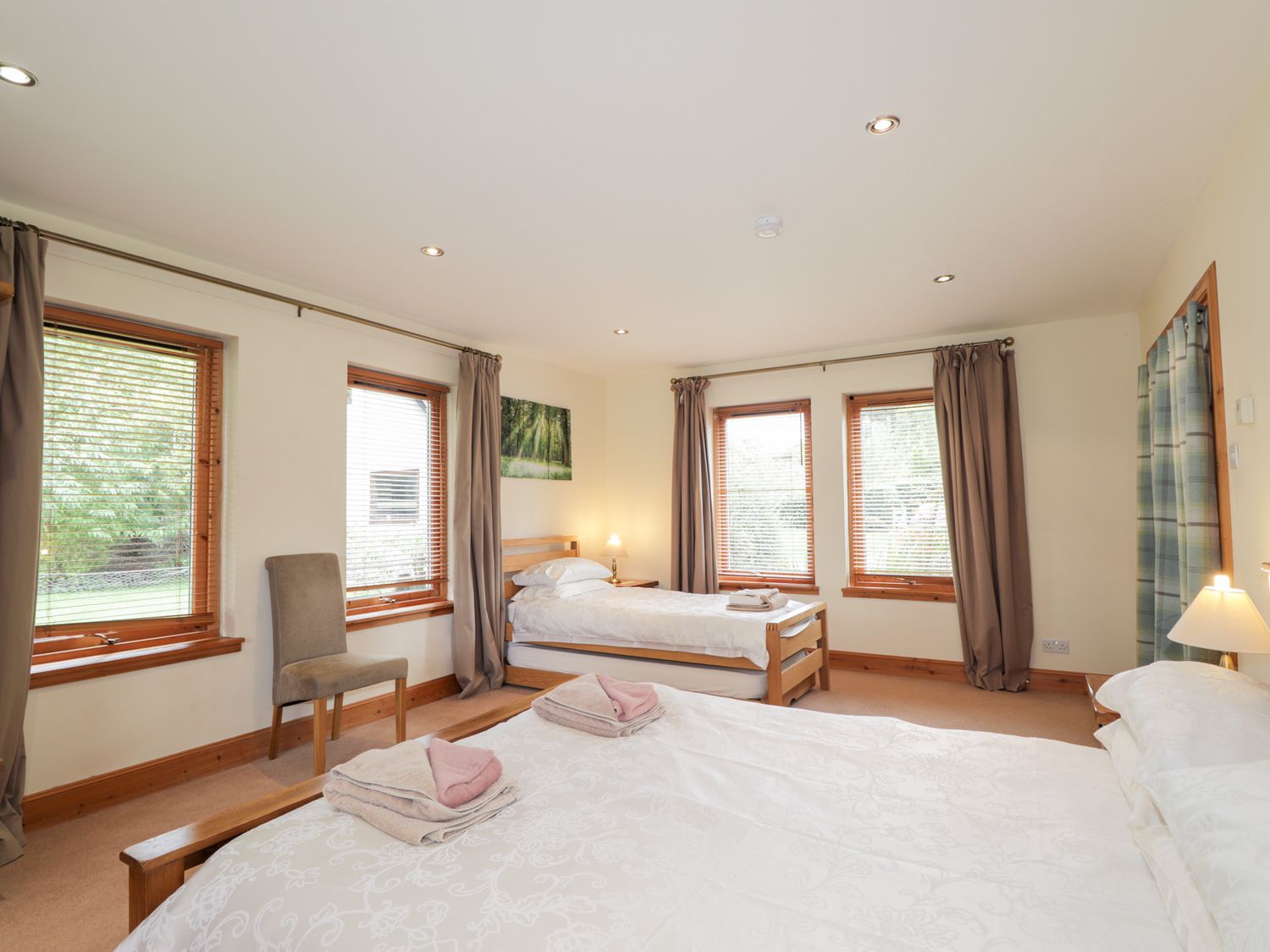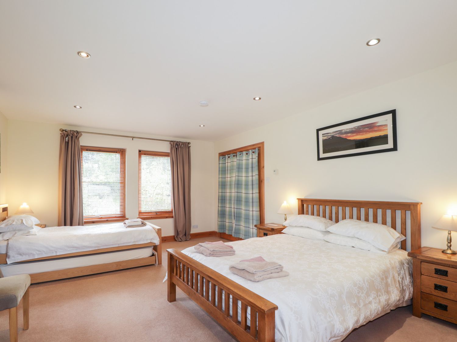 "An Torr is a delightful, extremely spacious cottage set in Newtonmore, Scotland. With five bedrooms across the two floors, two with en-suite access, this cottage can sleep up to twelve people. There's also a kitchen with breakfast area, a utility room, a dining room and a first floor sitting room. Outside, there is ample off road parking, along with bike storage, a lawned garden with patio and furniture plus a private orchard. An Torr sits in a lovely location, with beautiful hillside views, and offers lovely, large holiday accommodation for your Highland break. "