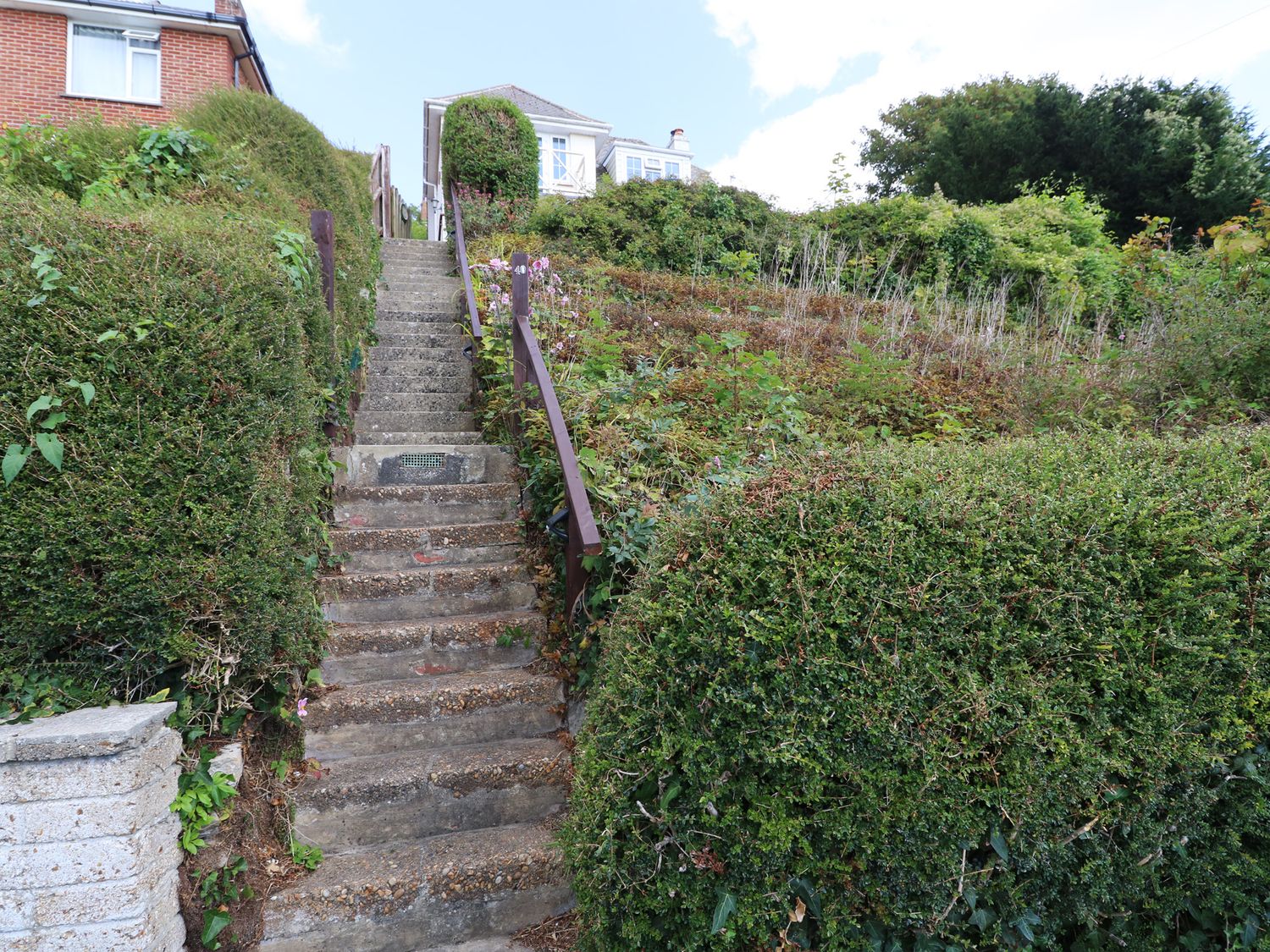 "Two bedrooms: 1 x double with balcony looking out onto the sea, 1 x twin. Bathroom with bath, handheld shower, basin, WC. Please note: There is a sloping ceiling over the bath, so please do be careful. Ground-floor cloakroom with Basin and WC. Kitchen. Living/dining room with gas fire."