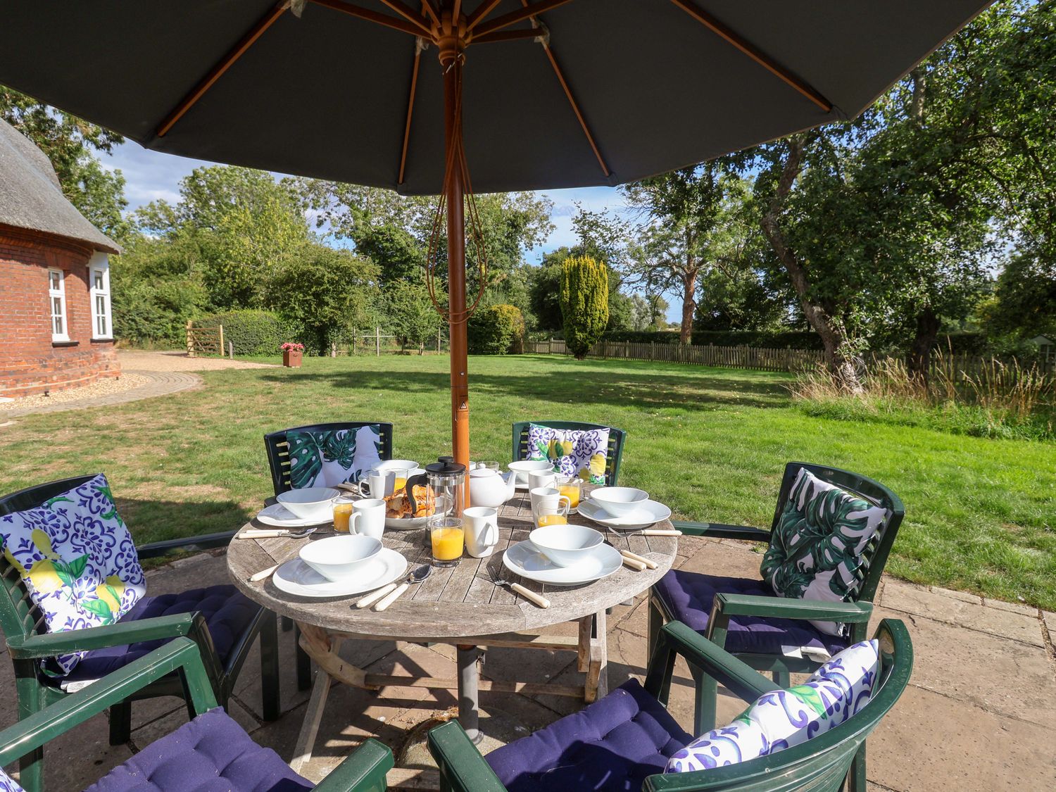 "Three bedrooms: 1 x ground-floor king-size with en-suite with bath, shower over, basin, heated towel rail and WC, 1 x king-size zip-link (can be set up as twin on request), 1 x king-size. Jack and Jill shower room with hand-held shower, basin, heated towel rail and WC. Kitchen/diner. Sitting room. Conservatory"