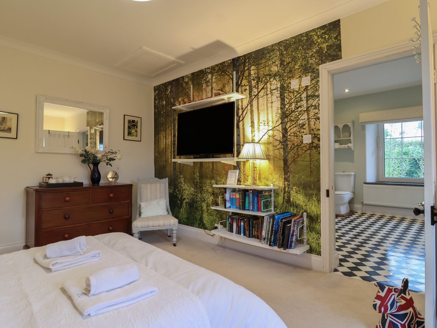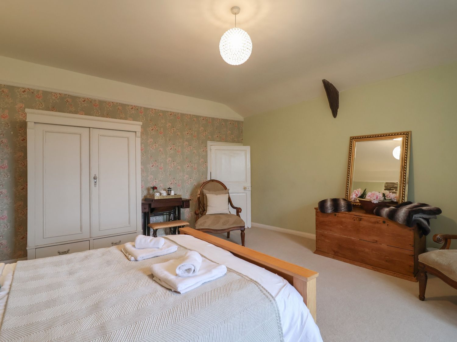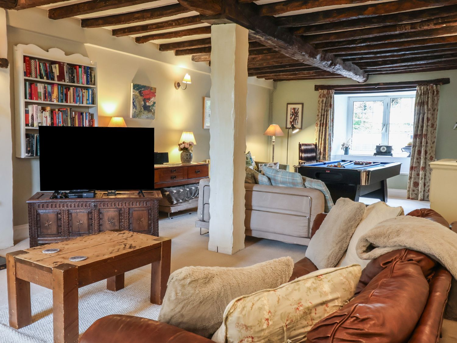"The Old Manor House consists of a kitchen/diner with electric range cooker, electric hob, microwave, fridge/freezer, washing machine, tumble dryer, and dishwasher, a dining room with woodburning stove, a sitting room with TV, open fire and woodburning stove, a utility, and a games room with pool table, books, games, Nintendo Wii, Xbox and DVDs. There are three king-size beds and three double beds. One of the King-size beds can be split into 2 singles . There are 3 bathrooms upstairs and a cloak room downstairs. Bedroom 1: king-size bed with large en-suite shower, toilet and basin (jack and Jill access to the hallway). Bedroom 2: king-size bed with access to large shower room via hallway. Bedroom 3 double bed with en-suite shower, toilet and basin. Bedroom4 ( within bedroom 3 at level mezzanine level via spiral staircase) floor based double bed with access to bedroom 3 bathroom. Bedroom 5 double bed with large en-suite bathroom, toilet and basin. Bedroom 6 : either king-size bed or 2 twin beds with jack and Jill access to large en-suite bathroom toilet and basin. Cloaked room on lower floor near kitchen /dinning area (toilet and basin only)Kitchen/diner. Utility. Dining room with woodburning stove. Sitting room with woodburning stove. Outside, there is an enclosed garden with gravelled area, lawn and patio, hot tub, sun loungers, furniture, barbecue and fire pit, and off-road parking for five cars. Two well-behaved dogs welcome, but sorry, no smoking or vaping. You'll find a shop and pub within 0.1 miles. WiFi, fuel, power, bed linen and towels are all included in the price. The Old Manor House is a spacious retreat for a memorable Devonshire escape. Note: Dogs are only permitted in the slate-floored areas downstairs. Note: Good Housekeeping Bond of 800GBP applies. Swimming pool available in summer months."