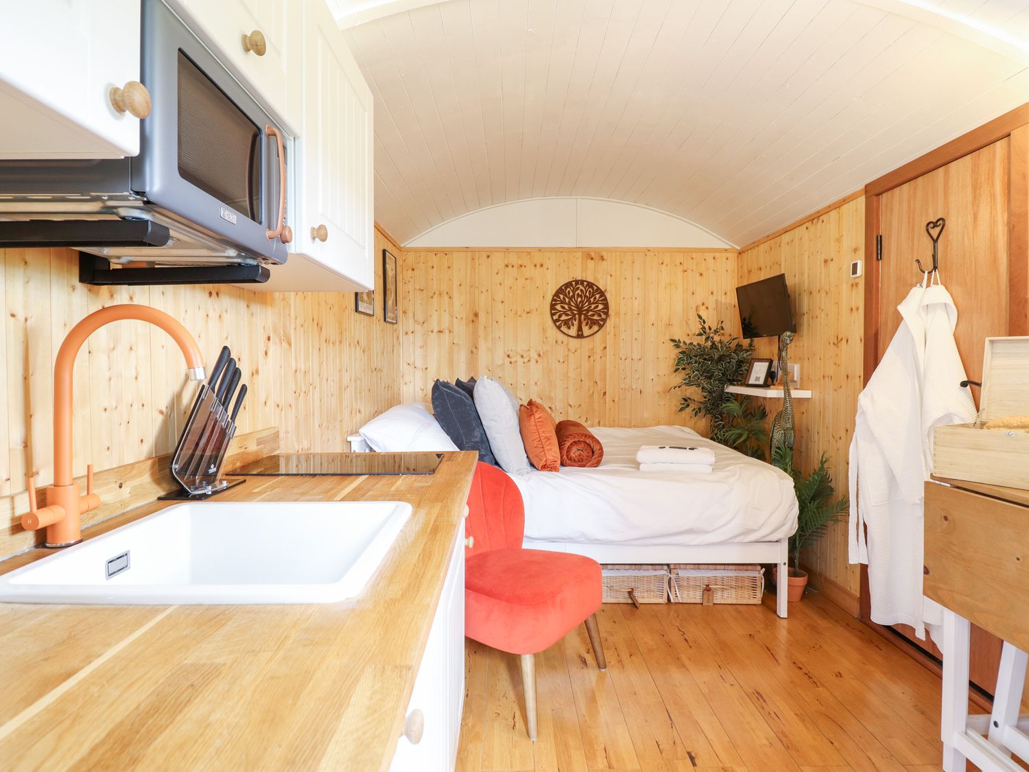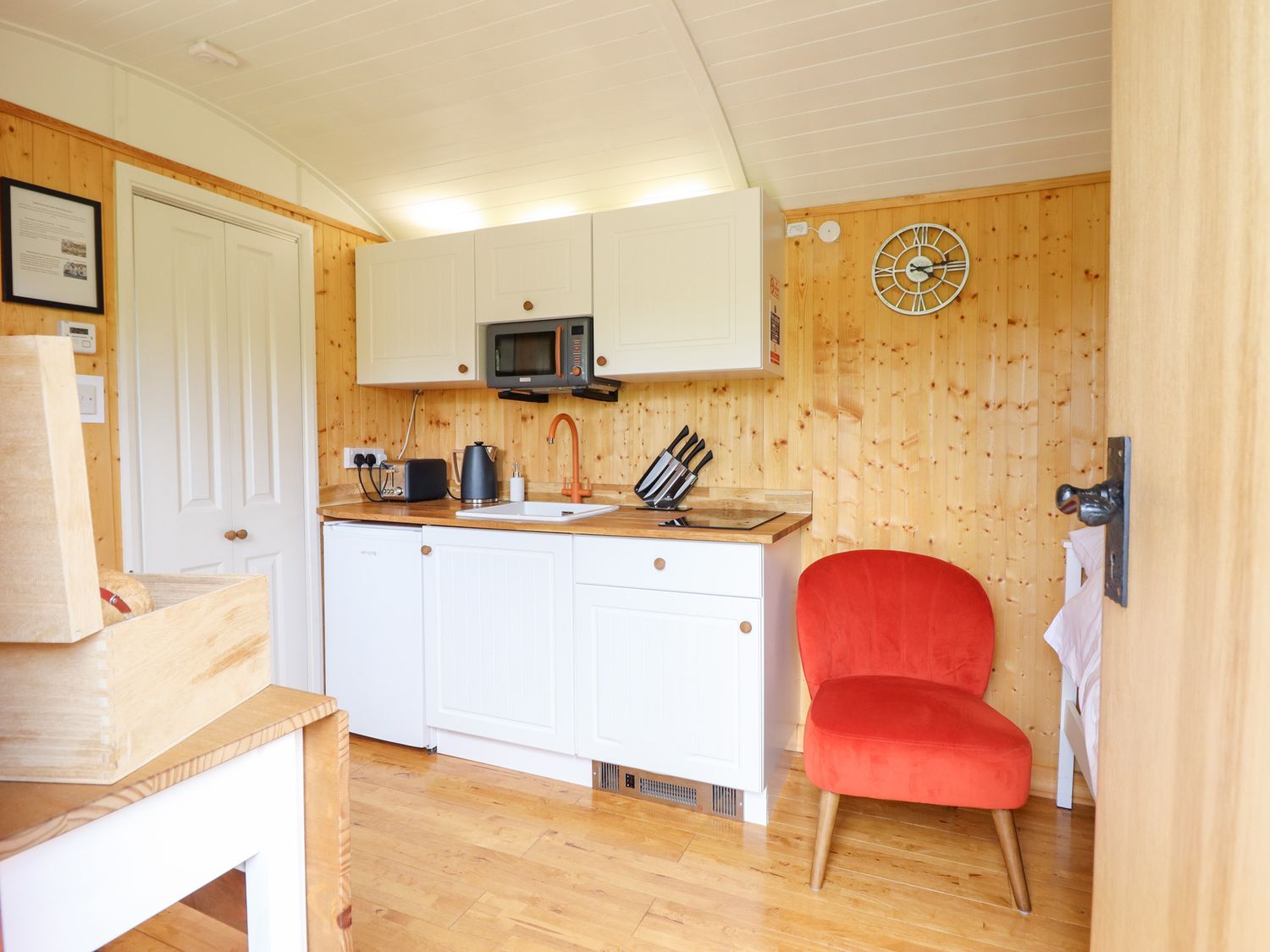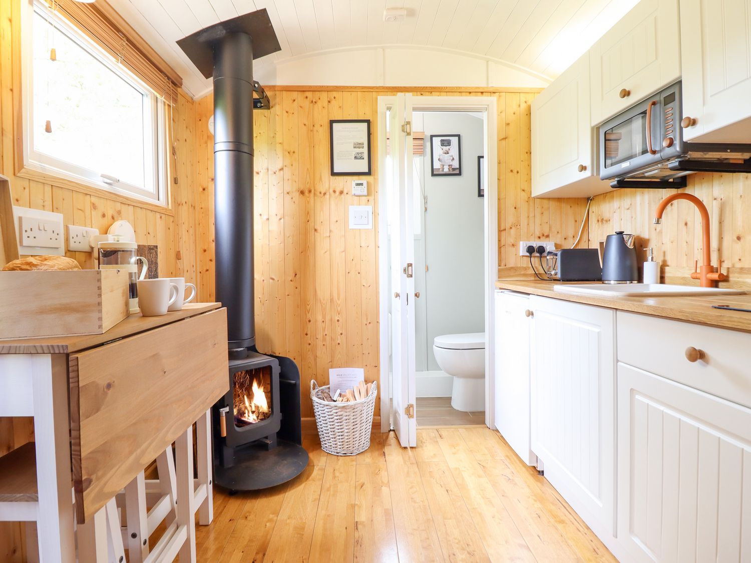"Red Kite Hut is a shepherdÔÇÖs hut with a studio-style layout with double bed, kitchen equipped with an electric hob, fridge with ice box, microwave, kettle and toaster and dining area with a Smart TV and woodburning stove. ThereÔÇÖs a shower room with walk-in shower, basin and WC. Underfloor heating, WiFi, fuel and power, a starter pack for woodburning stove, bed linen and towels are included in the rent. Outside thereÔÇÖs an enclosed veranda with furniture and fire pit, wood fired hot tub, BBQ and and Designated parking place for one car. One well behaved dog welcome. Sorry, no smoking. Nearest shop in 3.3 miles, pub in 3.2 miles. Bring your special someone for a break at Red Kite Hut. Note: There are steps up to the property, please take care. This property has a good housekeeping bond of GBP 50."