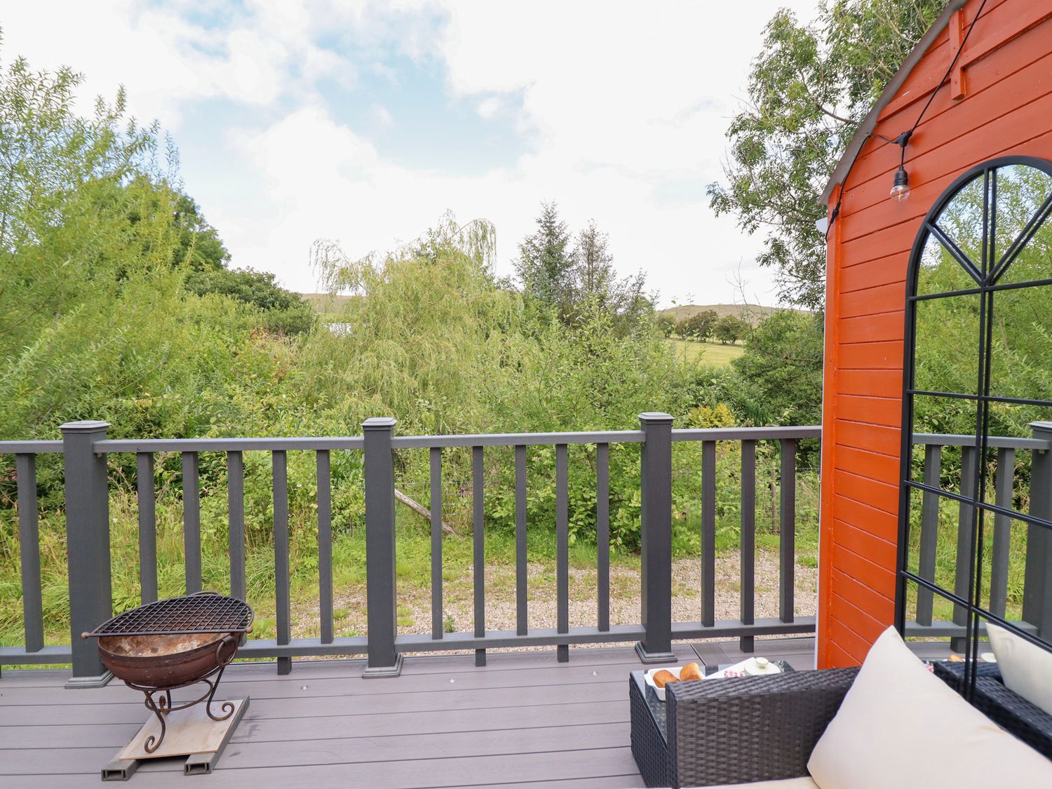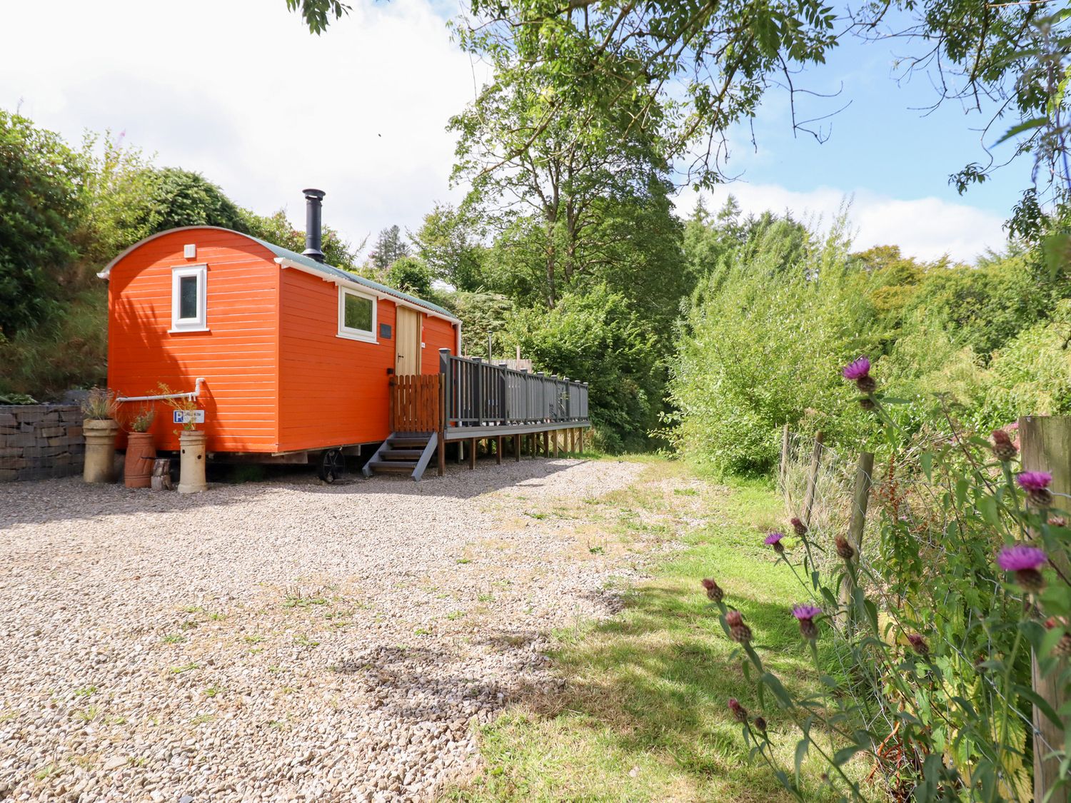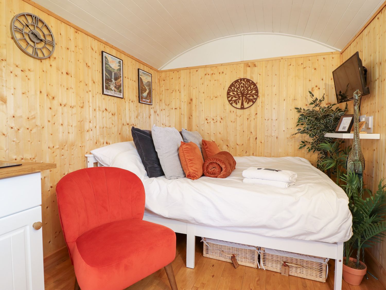 "Red Kite Hut is a shepherdÔÇÖs hut with a studio-style layout with double bed, kitchen equipped with an electric hob, fridge with ice box, microwave, kettle and toaster and dining area with a Smart TV and woodburning stove. ThereÔÇÖs a shower room with walk-in shower, basin and WC. Underfloor heating, WiFi, fuel and power, a starter pack for woodburning stove, bed linen and towels are included in the rent. Outside thereÔÇÖs an enclosed veranda with furniture and fire pit, wood fired hot tub, BBQ and and Designated parking place for one car. One well behaved dog welcome. Sorry, no smoking. Nearest shop in 3.3 miles, pub in 3.2 miles. Bring your special someone for a break at Red Kite Hut. Note: There are steps up to the property, please take care. This property has a good housekeeping bond of GBP 50."