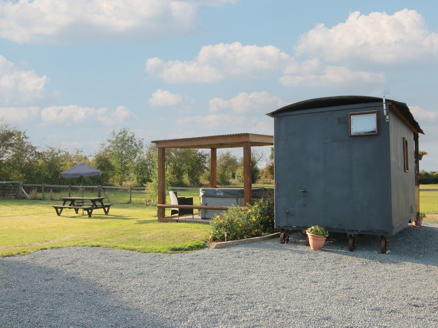 "Sharon's Shepherd Hut, a single-storey shepherd's hut, consists of a external kitchen/diner with a two-ring electric hob, microwave, AirFryer, fridge with icebox, kettle, toaster, and breakfast bar. The bedroom is a sofa bed. There is a external bathroom with a wet room walk-in shower, double basin and two WC. WiFi, fuel, power, bed linen, and towels are included in the rent. Outside, there is a non-enclosed front garden with veranda, lawn, furniture, fresh water tap, picnic bench, hot tub, and off-road parking for two cars. -ú20.00 charge for One well-behaved pet. Sorry, no smoking. Make memories with a stay at Sharon's Shepherd Hut. Note: Dogs are to be kept on a lead due to livestock in overlooking field. Note: Steps leading up to the property, please take care. Note: Please note that no under 5ÔÇÖs are to use hot tub."