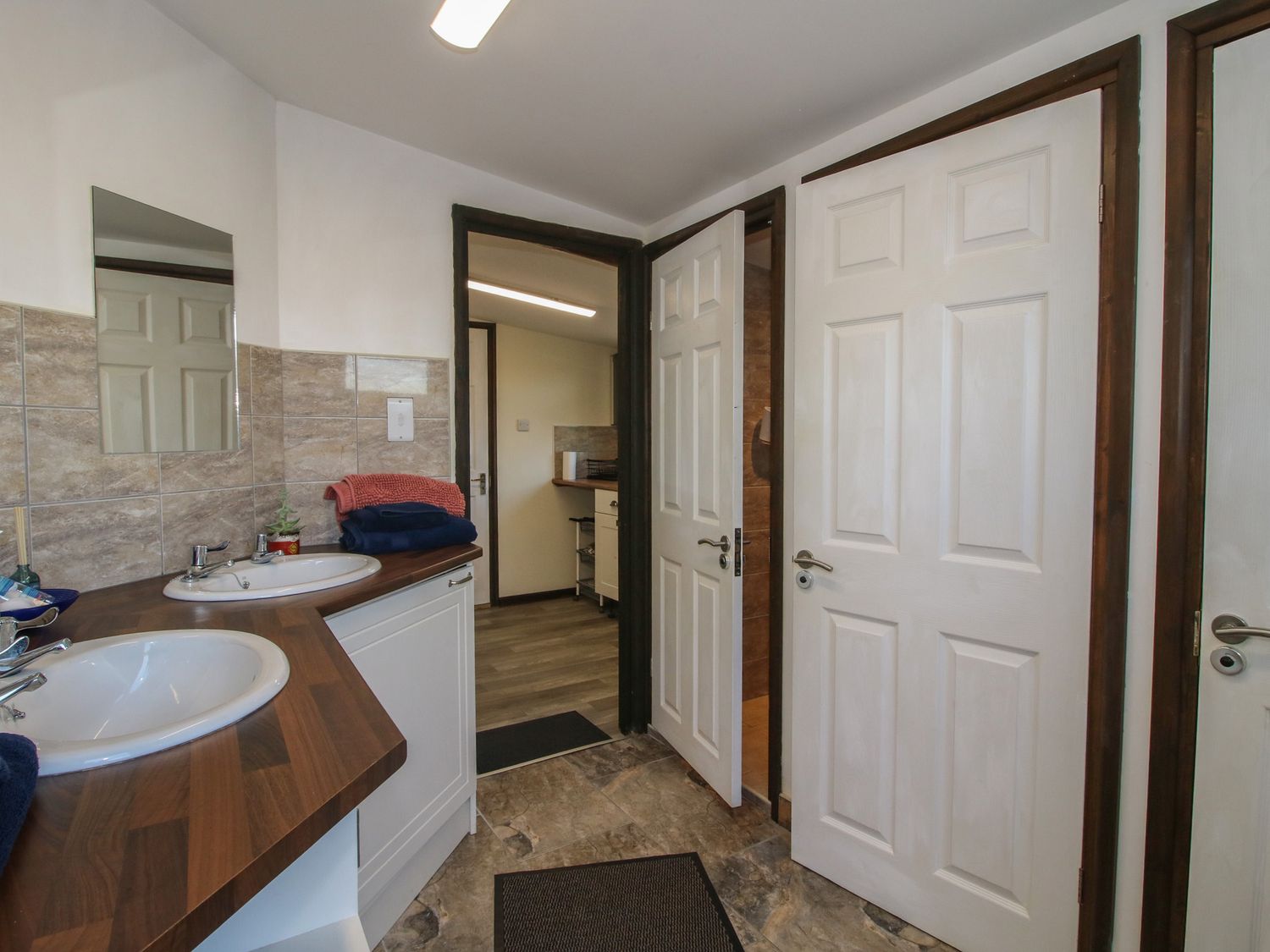 "Single-storey. Sofa bed which sleeps 2, so comfortable for 2 adults or 1 adult and 1 child. External bathroom with a wet room walk-in shower, double basin. External Kitchen/diner"