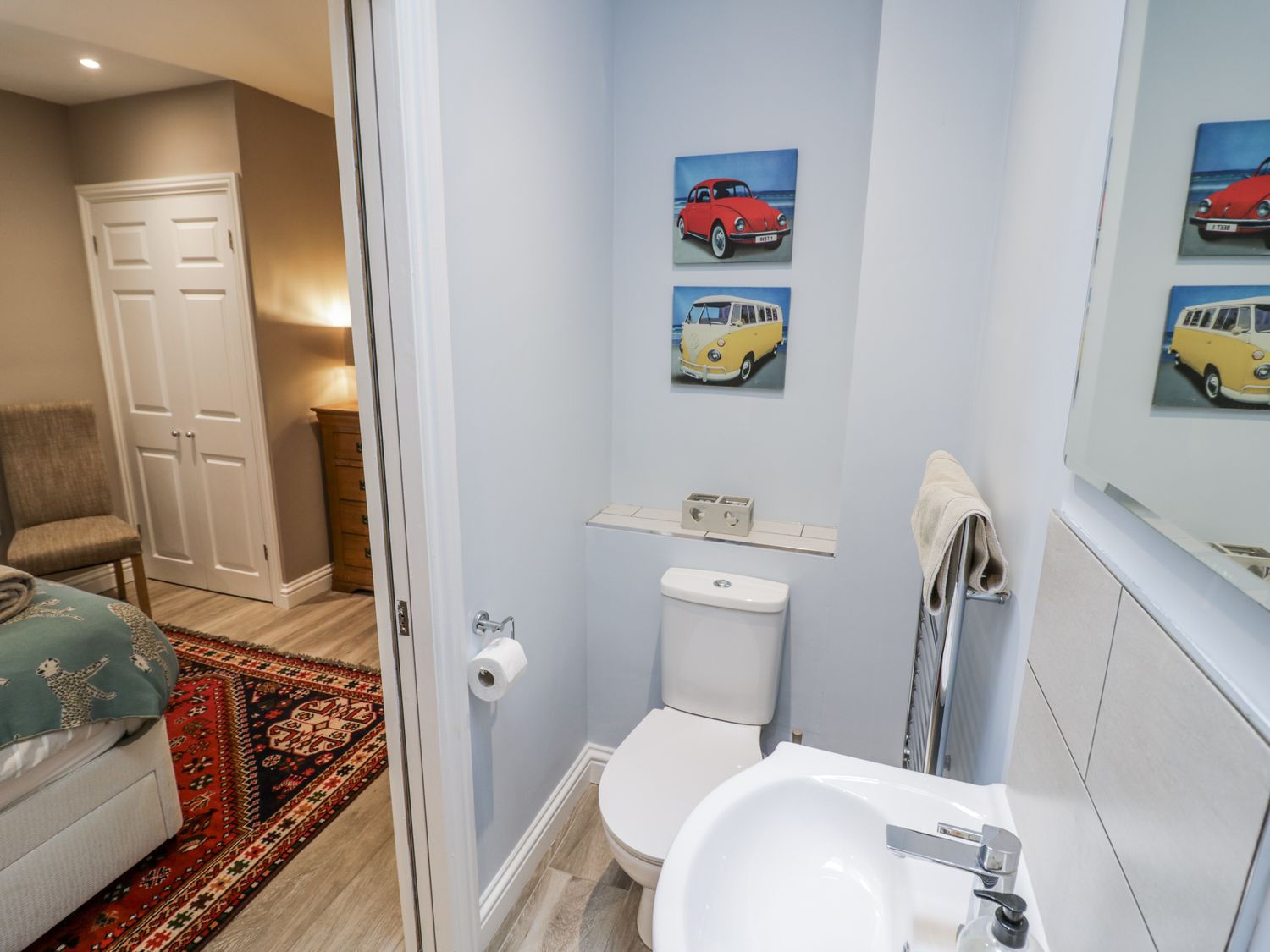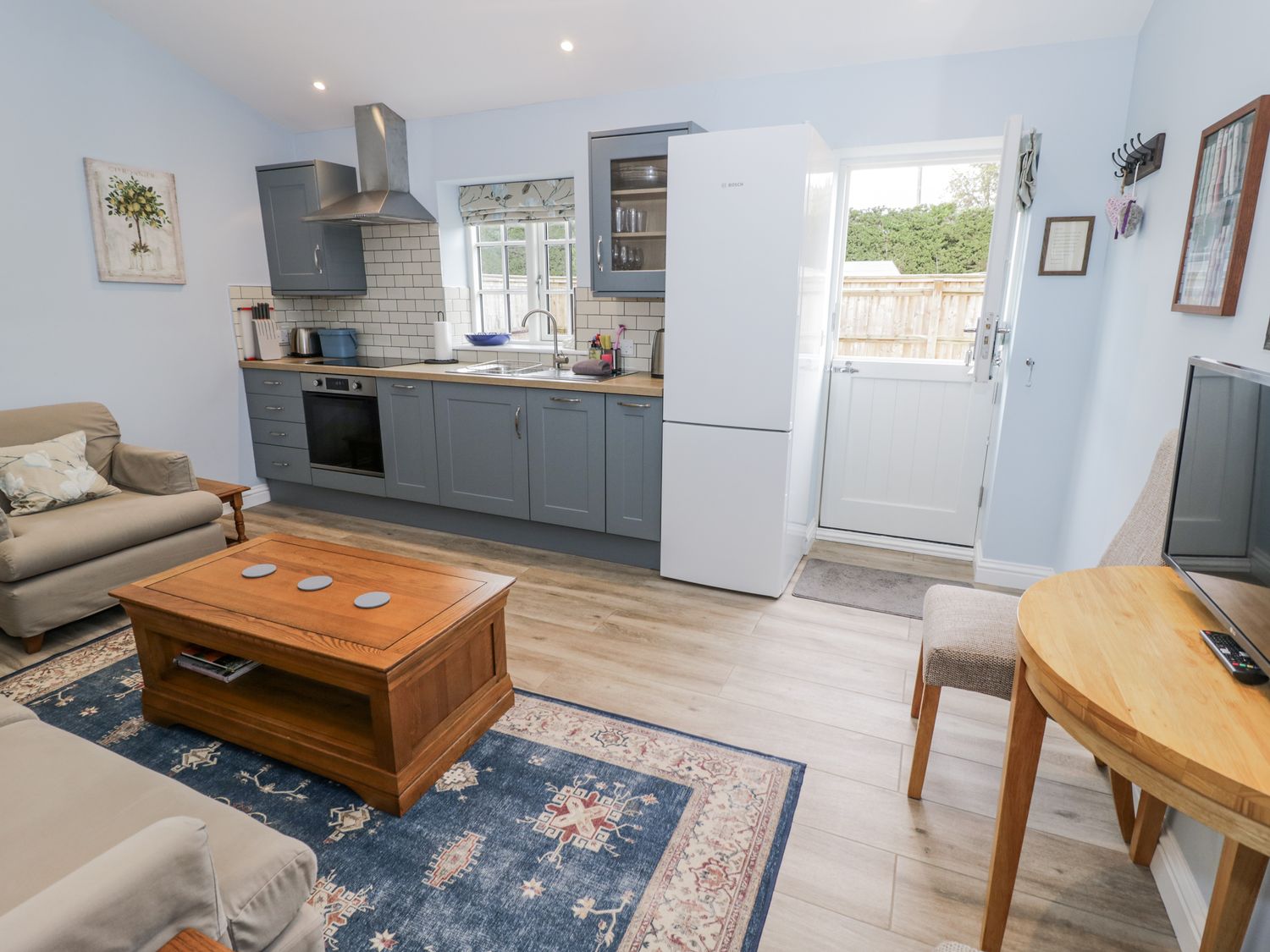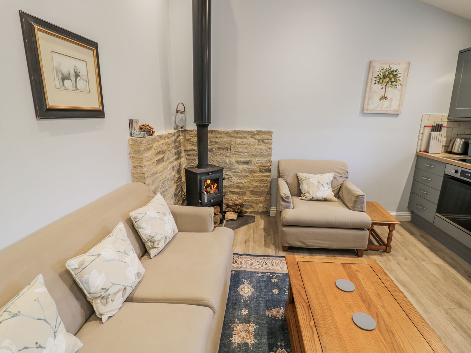 "Lily Stables consists of an open-plan living space with a kitchen equipped with an electric oven and hob, microwave, fridge/freezer, dishwasher, coffee maker, kettle, toaster and hair dryer, a dining area with seating for four, and a sitting area with a Smart TV, WiFi, a selection of books and a woodburning stove. The bedrooms include a king-size (zip/link can be twin on request) with an en-suite walk-in shower, basin, heated towel rail and WC, and a double with an en-suite walk-in shower, basin and WC. There is also an external shared utility with a washing machine and tumble dryer. Fuel, power, bed linen, towels and a starter pack for the woodburning stove are all included in the price, along with electric central heating. A travel cot is available on request, and off-road parking is provided for one car, with an EV charger available. Outside, there is a shared front garden patio with furniture, a charcoal barbecue and garden games. This is a non-smoking property and pets are not permitted. Within 2.4 miles you will find a shop, and within 1.4 miles, a pub. Have a magical stay at Lily Stables. Note: Outside shoes and boots are to be left at the door. Note: The use of the EV charger is subject to an additional fee, with usage metered and charged at the current commercial rate. Payments to be made via PayPal or bank transfer only. Note: there is a Good Housekeeping Bond of 200GBP"