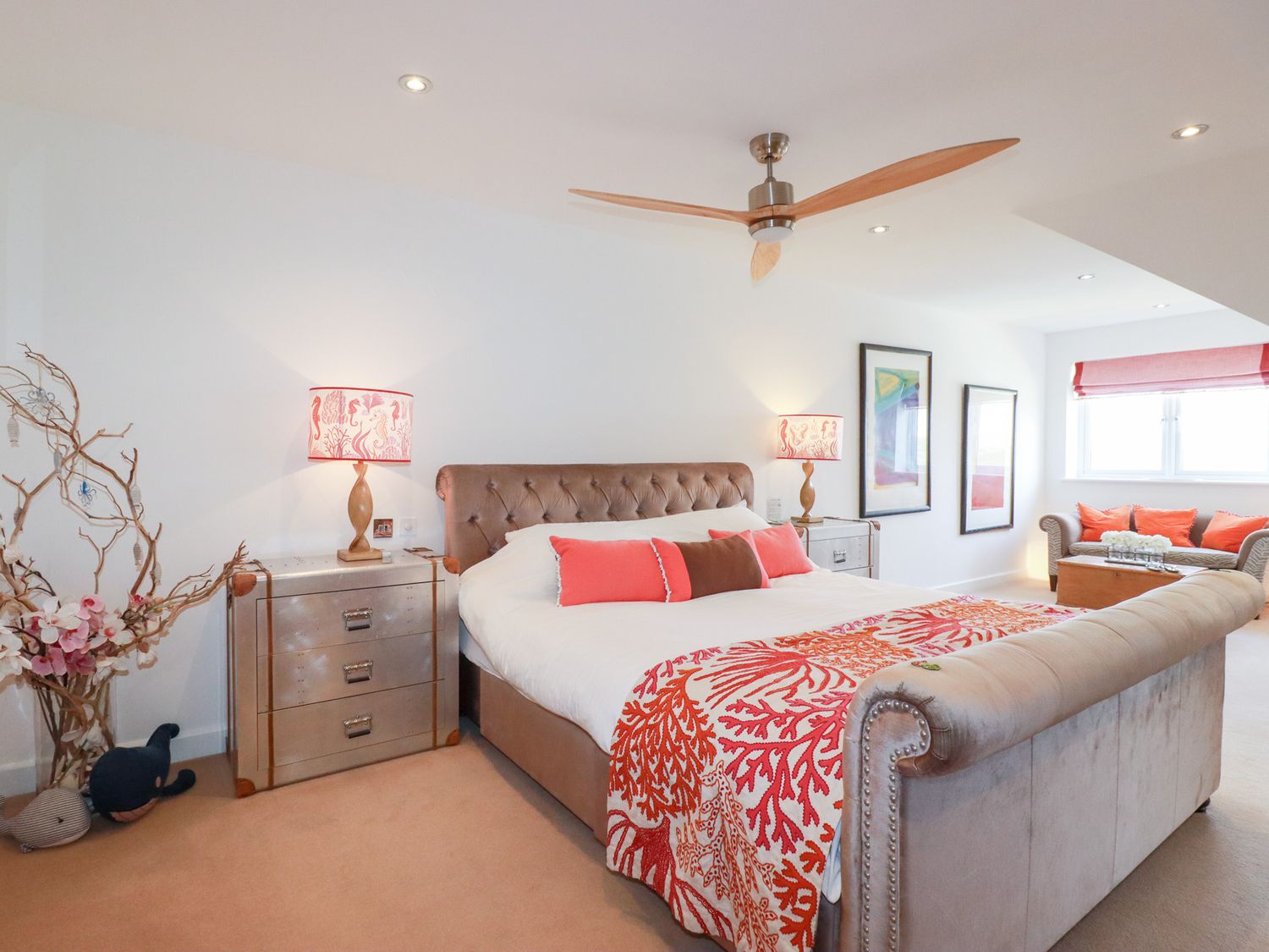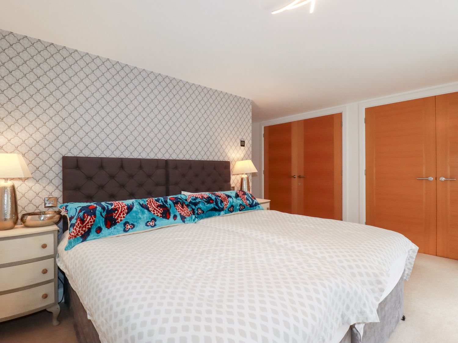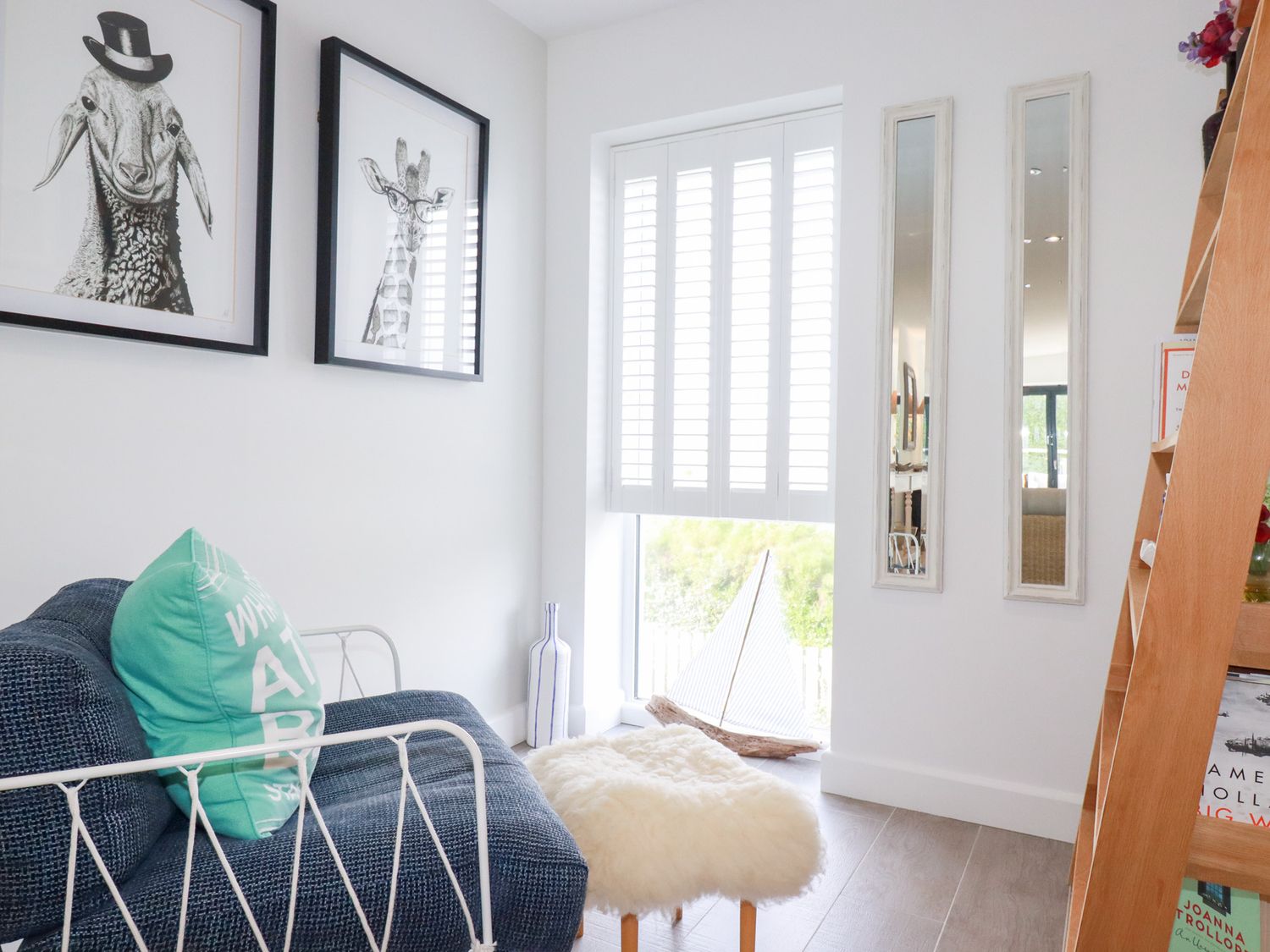 "Over three floors. Three bedrooms: 1 x ground floor super king-size double (zip/link can be twins on request) with en-suite walk-in shower, basin and WC, 1 x second floor super king-size double with en-suite bath, separate shower, basin and WC, 1 x ground floor king-size double with en-suite bath, shower over, basin and WC. Open-plan living room with kitchen, dining area and sitting area. Utility.
