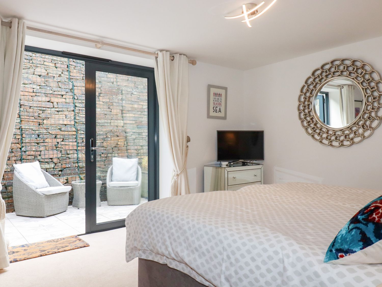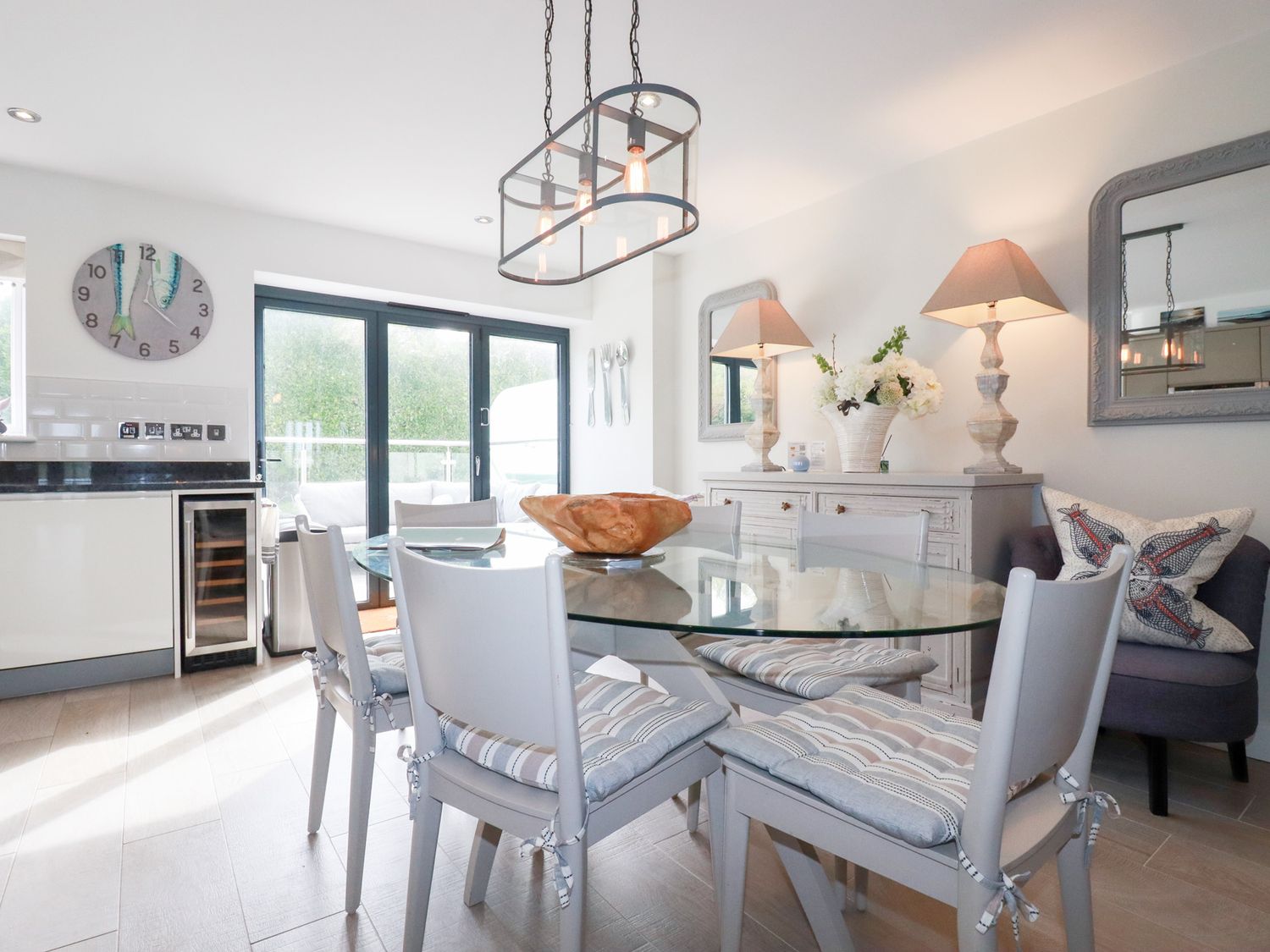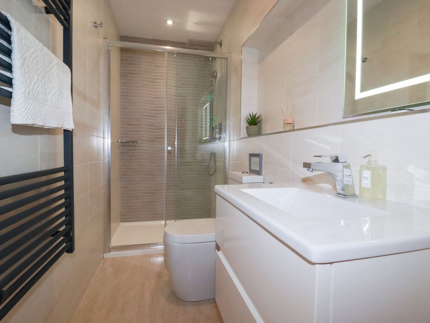 "Over three floors. Three bedrooms: 1 x ground floor super king-size double (zip/link can be twins on request) with en-suite walk-in shower, basin and WC, 1 x second floor super king-size double with en-suite bath, separate shower, basin and WC, 1 x ground floor king-size double with en-suite bath, shower over, basin and WC. Open-plan living room with kitchen, dining area and sitting area. Utility.