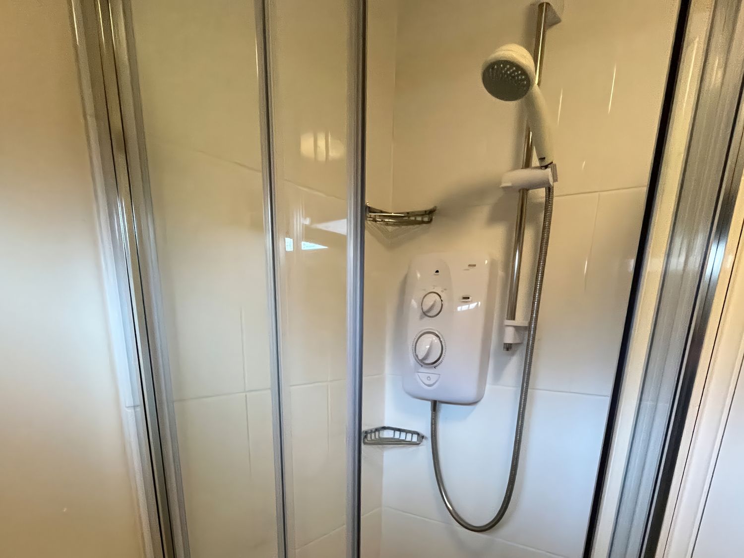 "Single-storey. Two bedrooms: 1 x double, 1 x triple bunk room. Shower room with walk-in shower, basin and WC. Open-plan living space with kitchen, dining area, and sitting area"