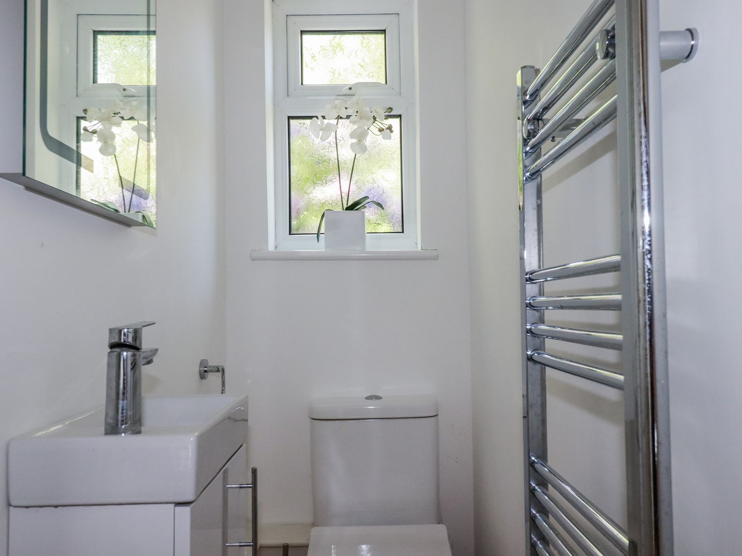 "Please note: This property requires a minimum stay of 4 nights. Over three floors. Three bedrooms: 1 x second-floor super-king-size, 1 x king-size with TV, 1 x twin. Second-floor bathroom with bath, basin, heated towel rail, WC. Ground-floor shower room with walk-in shower, basin, heated towel rail, WC. First-floor cloakroom with basin, heated towel rail, and WC. Kitchen/diner. First-floor utility. First-floor living/dining room
