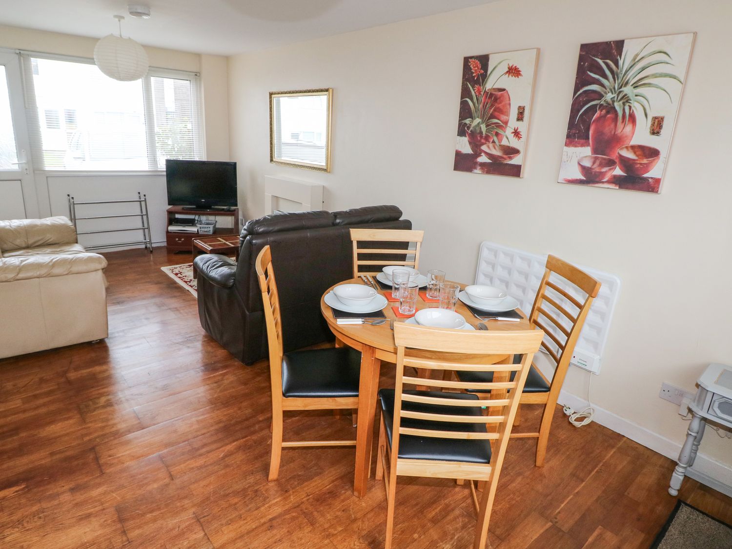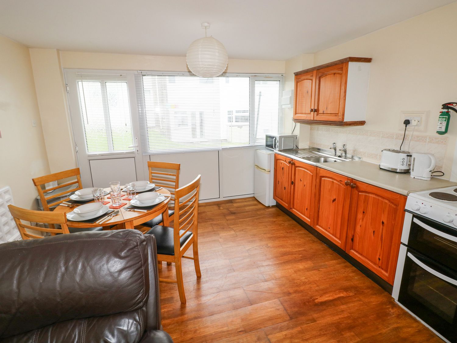 "Freshwater East, a terraced cottage, consists of an open-plan living area with a TV, electric fire, dining seating for four, and a kitchen with amenities including an electric oven and hob, fridge/freezer, microwave, kettle, and toaster. The bedrooms consist of a double and a child's bunk bed, serviced by a bathroom with a bath, shower over, basin, and WC. Highchair available on request. Outside, there is a rear communal garden with lawn and furniture, front patio with a bench, and off-road parking for one car. Sorry, no pets and no smoking. WiFi, fuel, power, bed linen, included in the price, guests need to bring their own towels. You'll find the closest shop in 1.9 miles, a pub in 0.9 miles, and a beach in 4.9 miles. The gardens are not enclosed. This property has a Good Housekeeping bond of 100 GBP. Please note the next door property is undergoing roofs works and this is due to be completed by Mid March - there will be scaffolding in place next door"