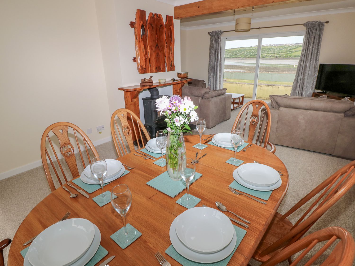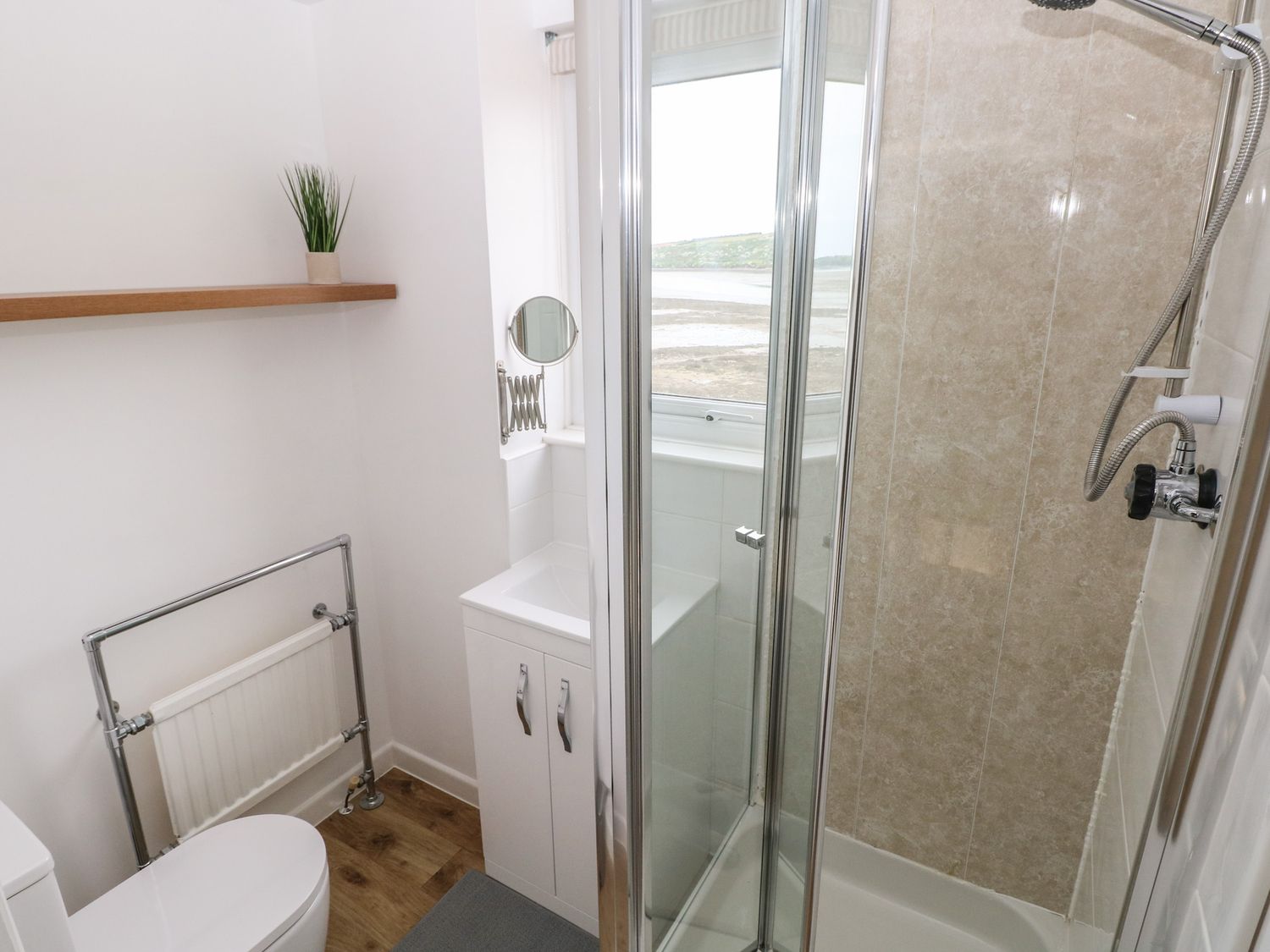 "Shearwater consists of a kitchen with an electric oven, induction hob, microwave, fridge/freezer, a utility with washing machine and tumble dryer, and a living/dining room with TV and woodburning stove. The bedrooms include a double, a ground-floor double, and a twin (zip/link, can be double on request), along with a ground-floor bathroom with bath, shower over, basin and WC, and a shower room with walk-in shower, basin and WC. Outside, there is an enclosed rear garden with lawn and off-road parking for three cars. Within 1.3 miles, you will find a shop, within 0.8 miles, a pub, while the river is just 0.1 miles away. One well-behaved dog welcome. Sorry, no smoking. WiFi, fuel, power, starter pack for woodburning stove, bed linen and towels are all included in the price. Enjoy an idyllic getaway at Shearwater."