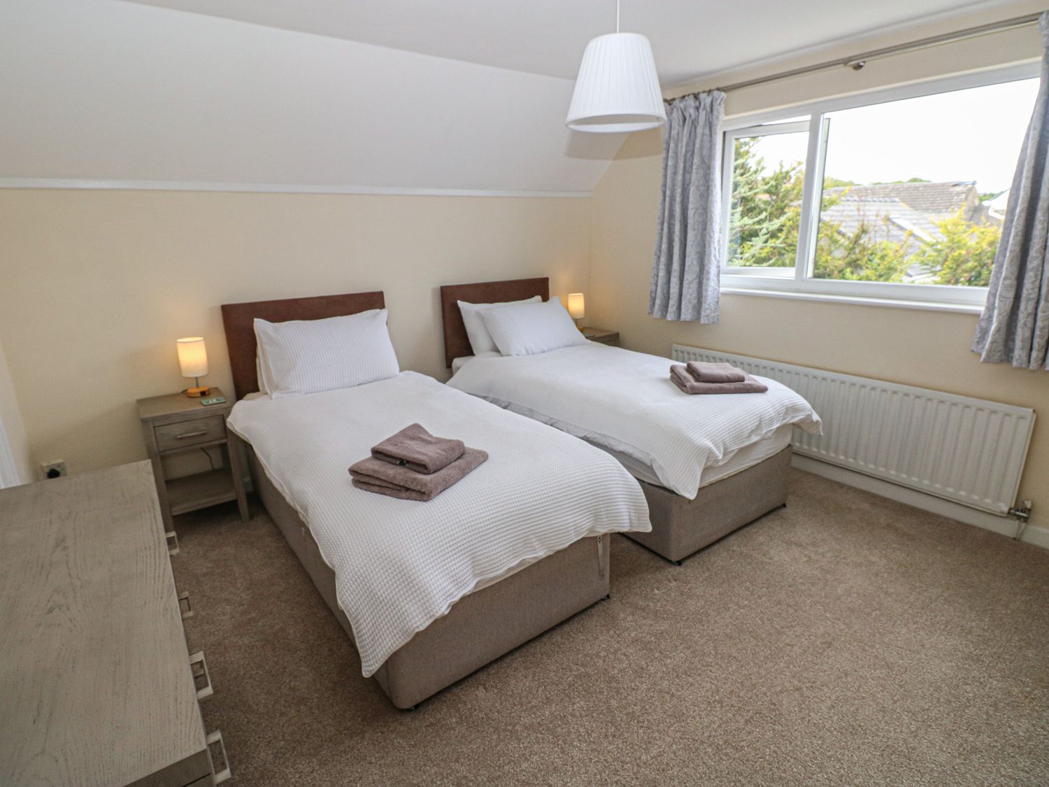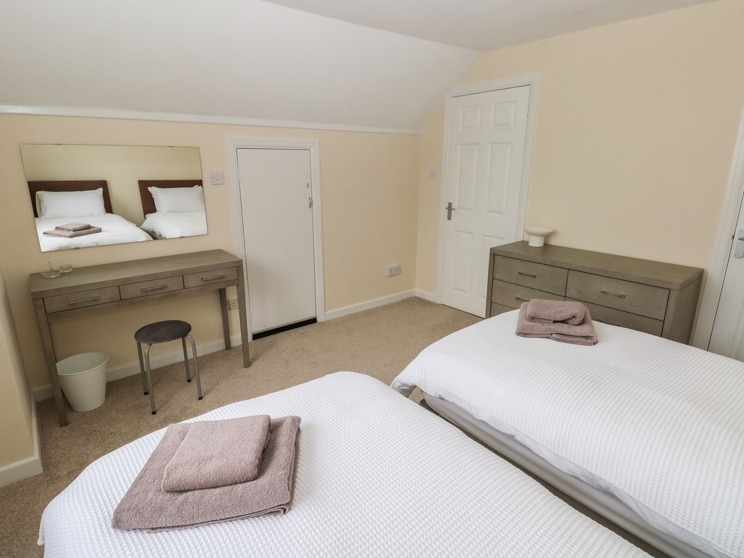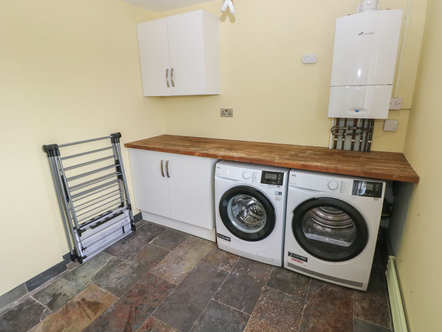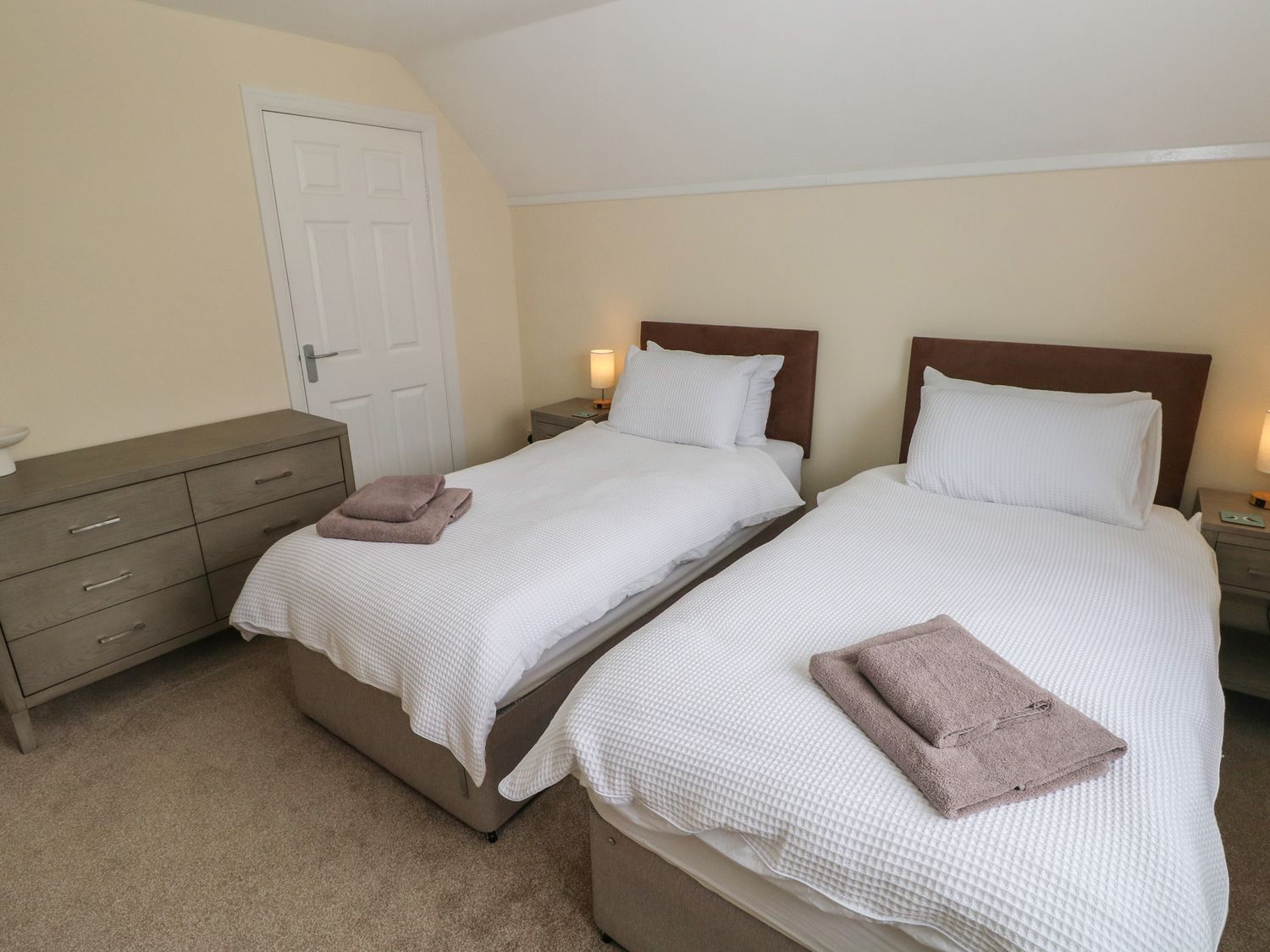 "Three bedrooms: 1 x king, 1 x ground-floor king, 1 x twin. Ground-floor bathroom with bath, shower over, basin and WC. Shower room with walk-in shower, basin and WC. Kitchen. Utility. Living/dining room with woodburning stove"