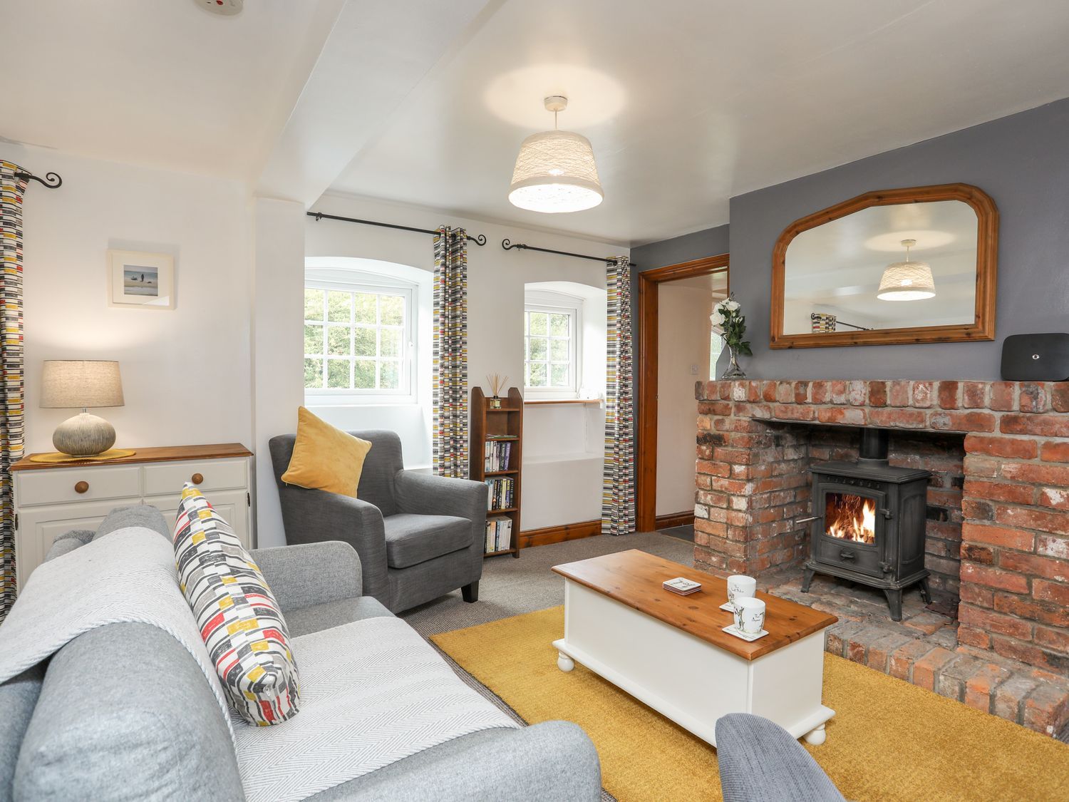 "Bryn Bach is a charming holiday home featuring a kitchen with an electric oven and grill, ceramic hob, microwave, fridge/freezer, washing machine, and dishwasher, along with a living/dining room with Smart TV and a woodburning stove. The bedrooms consist of one double and one twin, serviced by a bathroom with bath, shower over, basin and WC, and a cloakroom with basin and WC. Outside, there is off-road parking for two cars and a pretty garden with table and chairs. One well-behaved dog is welcome, but sorry, no smoking. Shop and pub 0.5 miles. WiFi, fuel, power, bed linen and towels are all included in the price. Bryn Bach is a delightful base for exploring the surrounding Welsh countryside. Good Housekeeping Bond 200 GBP"