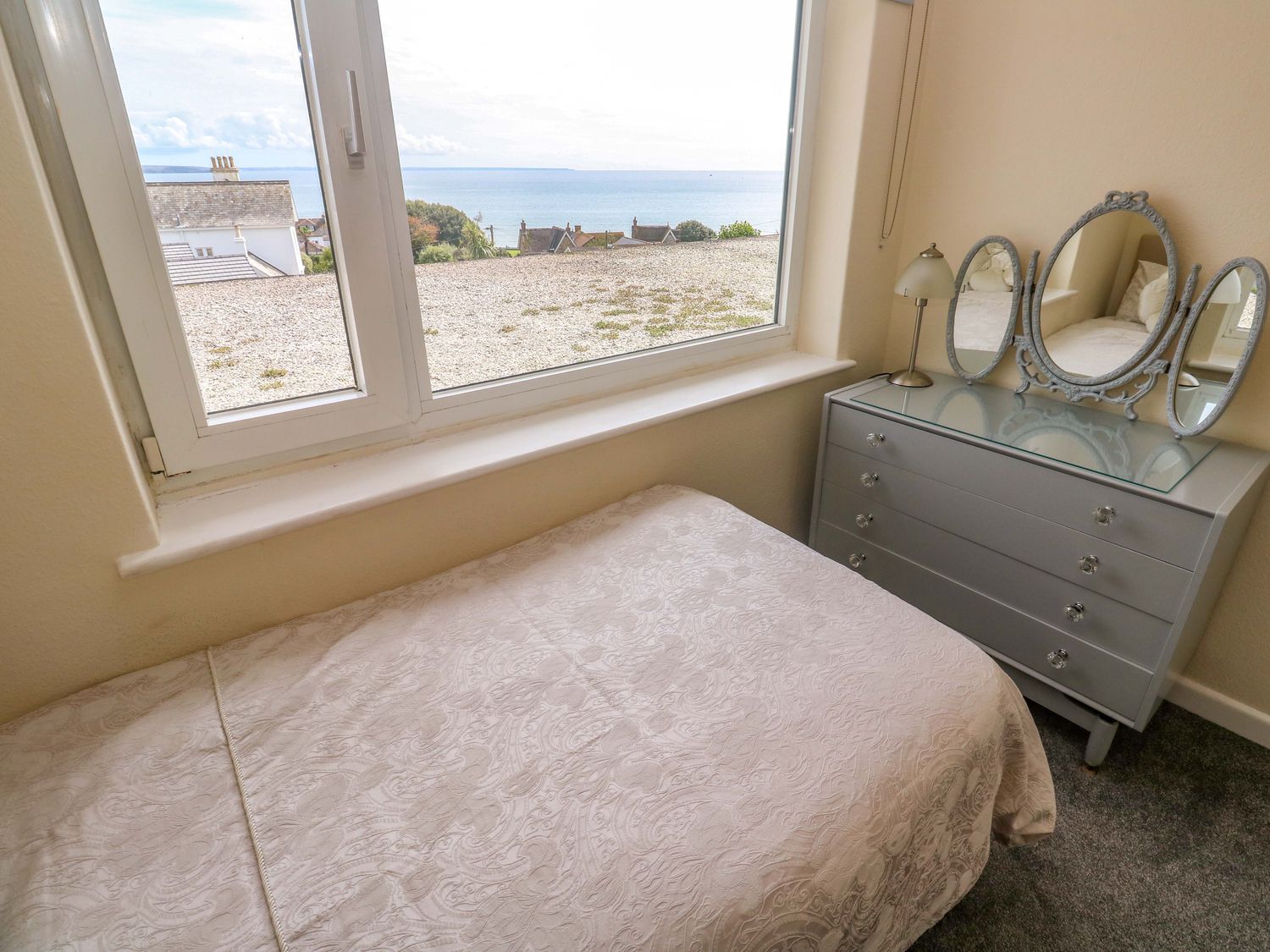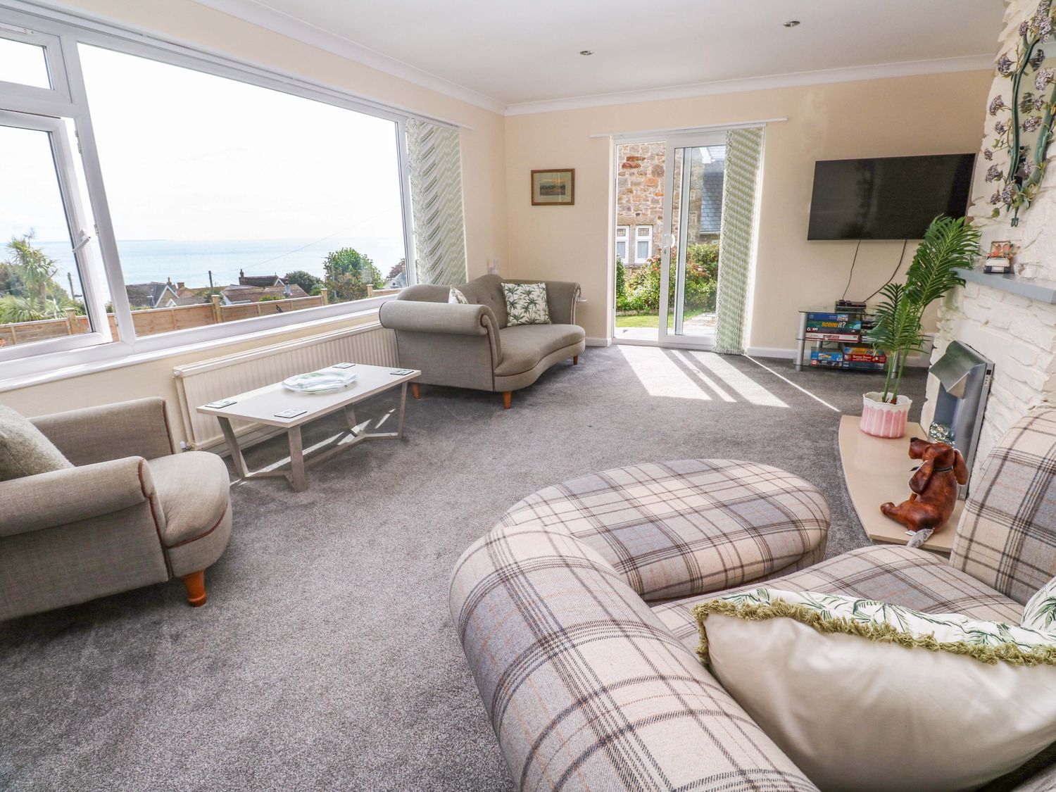 "Karenza consists of a kitchen with an electric oven hob, a utility with a fridge/freezer, washing machine, dishwasher, a dining area with seating for five guests, and a sitting area with a gas fire and TV. The bedrooms consist of two super-king-size (zip/link), and a single serviced by a shower room and a cloakroom. Outside, there is an enclosed wrap-around garden with lawn, patio, furniture, roadside parking. Within 0.3 miles, you will find a shop, and within 0.5, a pub and a beach. One well-behaved pet welcome but sorry, no smoking. WiFi, fuel, power, bed linen and towels are all included in the price. Enjoy the views of the sea in Penzance at Karenza."