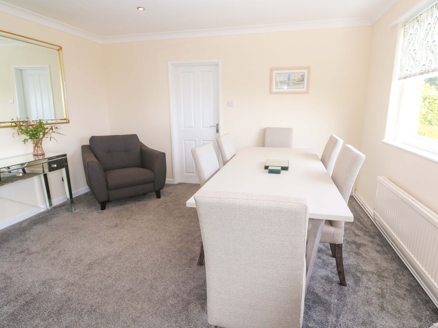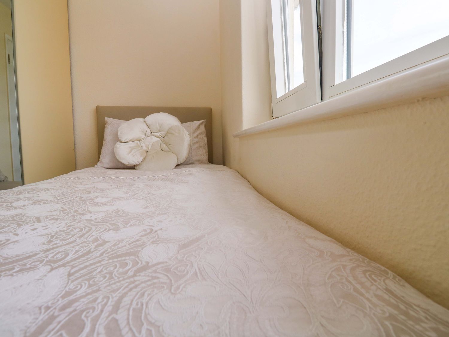 "Three bedrooms: 1 x super-king-size (zip/link), 1 x king-size, 1 x single. Shower room with walk-in shower, basin and WC. Cloakroom with basin and WC. Kitchen. Utility. Sitting/ dining room with electric fire"
