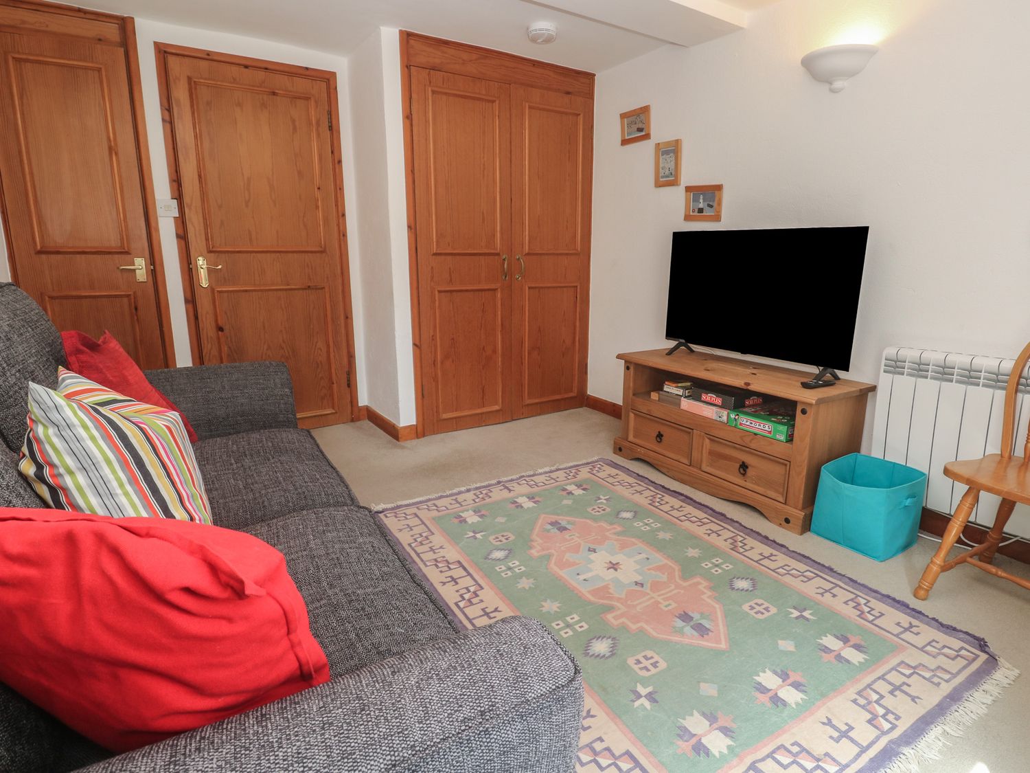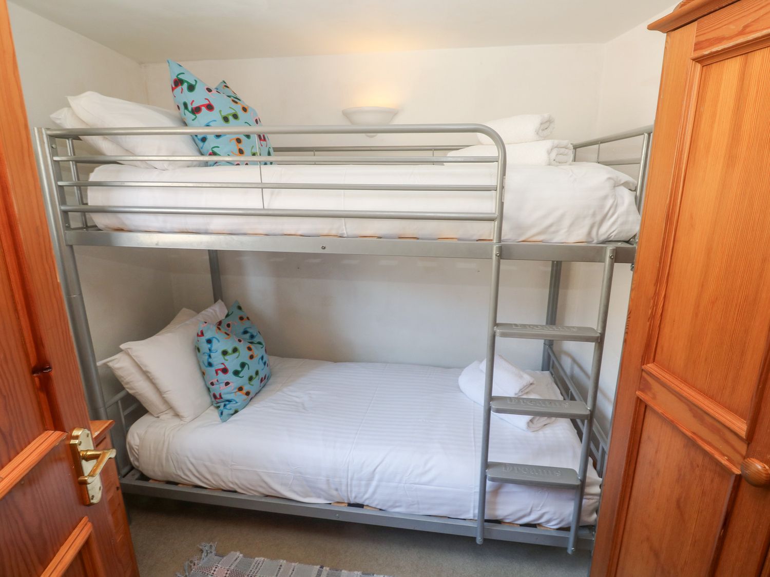 "Please note: This property requires a minimum stay of 3 nights. Reverse-level over three storeys. Three bedrooms: 1 x second-floor king-size with additional sofa bed, 1 x ground-floor double, 1 x ground-floor bunk bed. Second-floor shower room with walk-in shower and basin. Second-floor separate WC. Bathroom with bath, walk-in shower, basin, and WC. First-floor kitchen. First-floor living/dining room with balcony. Sitting room with double sofa bed for extra flexibility and convenience. Please contact Sykes if any of the sofa beds is required - extra charges for linen and towels of -ú18 per person and holiday apply "