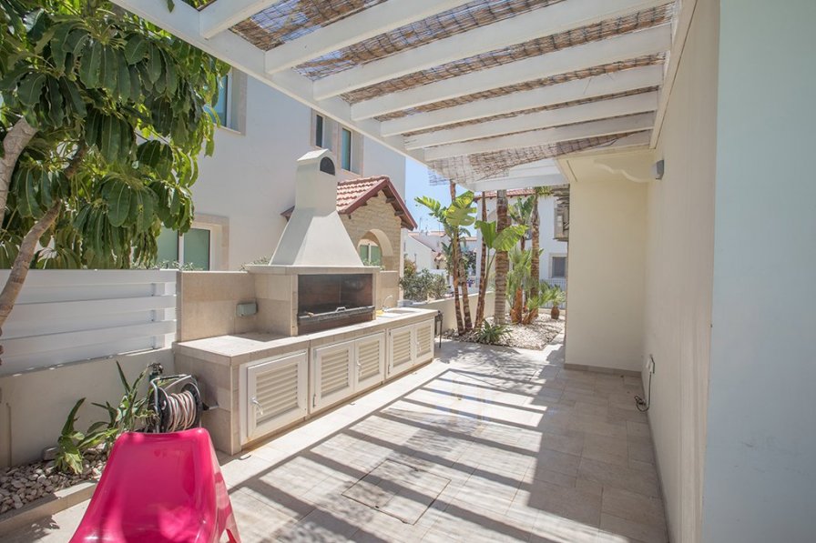 This is a beautifully kept modern 3 bedroom villa located in a modern villa complex. Inside, the lounge area features widescreen T.V, Dvd player, Satellite, few WIFI and modern furnishings.. The dining table seats 6 and the kitchen is fully fitted with modern appliances, including a dishwasher. There is also a separate W.C on the ground floor. The living room also features a wood burning fieplace. On the first floor there is a master en-suite double bedroom, a further double bedroom, plus a third double room with seperate sofa bed. There is also a family bathroom with bath and overhead shower. Outside you will find a 8 x 4 meter pool with lots of daytime and late afternoon sun, surrounded by shrubs and trees. By the pool you will find sun-loungers, garden table and chairs, large parasol and BBQ area. The adjaecent villa, which also has 3 bedrooms, is also available for rent, a great option for 2 families who wish to stay next to each other. Pernera has so much to offer and there are a wide variety of lovely restaurants, bars and places to visit. Enjoy a walk along the new seafront boardwalk which runs from Pernera into central Protaras or sit back and enjoy the view in one of the many beach bars. Enjoy glass-bottom boat trips, white-knuckle watersport rides and fishing trips from the harbour in Pernera, or take a sightseeing boat trip to the abandoned Ghost Town of Famagusta, just to the north of the area. A great villa in a very popular location.