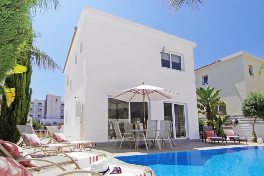 4-room house, detached, for 6 people, 120 m2, comfortable and modern furnishings. **Inside** * Living/dining room with local TV, satellite TV, DVD and dining-table * Smoking not allowed * Internet (Wireless LAN [WLAN]) * Sleeping room with 1 double bed * Sleeping room with 2 single beds * Sleeping room with 1 double bed * Kitchen with 4 hot plates, micro wave, oven, dining table, dishwasher, fridge and deep freezer * Bath-room, shower/WC and separate WC * Balcony, patio, terrace furniture * Other equipment: safe, hair dryer, iron, washing machine **Outside** * New, modern, comfortable villa "PESUN9" * House Equipment: air conditioning, washing machine (private use) * Access & Parking: private parking * All-season motor access to the house * Situation: in the centre of Pernera, central position * Surroundings of the house: grounds (private use), swimming pool (private use, length 8 m x width 4 m), outside shower (private use) * Facilities and distances: supermarket 200 m, restaurant 200 m, sandy beach 400 m