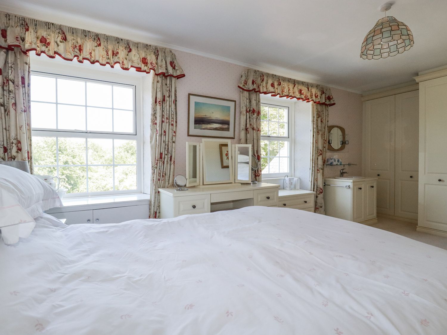 "Temple House, a house over three floors, consists of a kitchen/diner with electric double oven, electric hob, microwave, fridge/freezer, dishwasher, kettle, toaster, and dining table, a utility, a living/dining room with Smart TV, two sofas, armchair, patio doors to garden, and dining seating for eight and karaoke machine, a sitting room with TV, sofa, and two armchairs, and a sunroom with two armchairs. The bedrooms consist of two doubles, second-floor double with en-suite shower room, and twin, serviced by a ground-floor shower room, shower room, cloakroom, and first-floor cloakroom. You'll find a shop and pub in 0.4 miles, and a lake in 0.9 miles. WiFi, fuel, power, bed linen, and towels included in the rent. Outside, there is an enclosed wrap-around garden with patio, furniture, lawn, and summer house and ample off-road parking for up to four cars. Sorry, no smoking. Your journey to Cornwall is guaranteed to be one to remember, with a stay at Temple House. Note: Steps leading up to lawn area in garden, please take care. Note: This property has a Good Housekeeping Bond of 450 GBP"