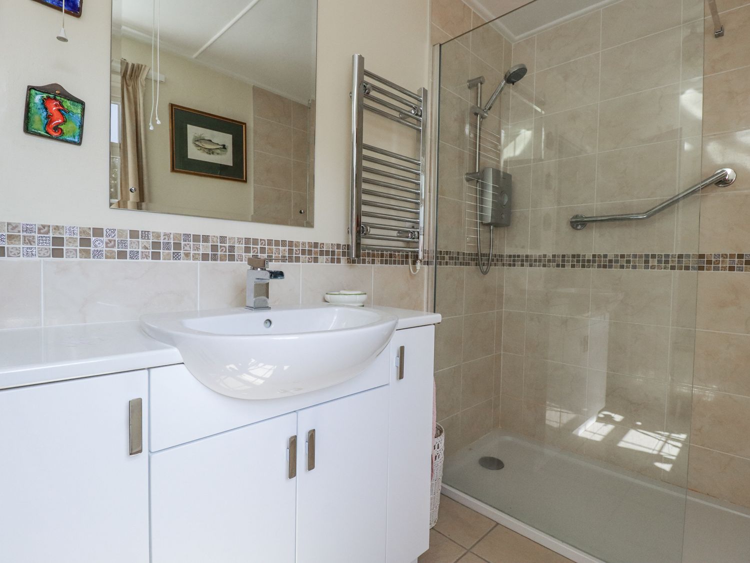 "Over three floors. Four bedrooms: 1 x double, 1 x twin, 1 x double with balcony, 1 x second-floor double with en-suite with walk-in shower, basin, heated towel rail, and WC. Ground-floor shower room with walk-in shower. Ground floor Cloakroom with basin and WC. First-floor walk-in shower room with basin and heated towel rail. First-floor cloakroom with WC. Conservatory. Entrance from first floor double bedroom onto balcony/sun deck overlooking the front lawn. Snug with TV. Kitchen/diner. Laundry/Utility room. Living/dining room. Sitting room with log burner. Sun room with patio doors opening onto front outdoor patio.