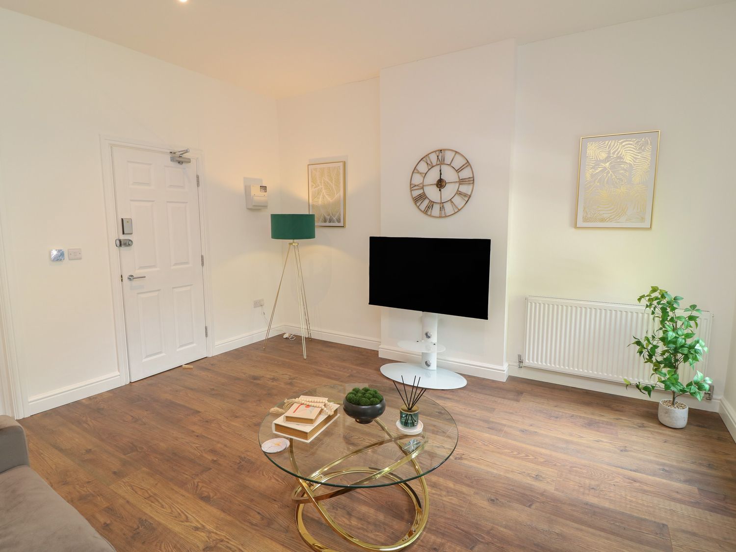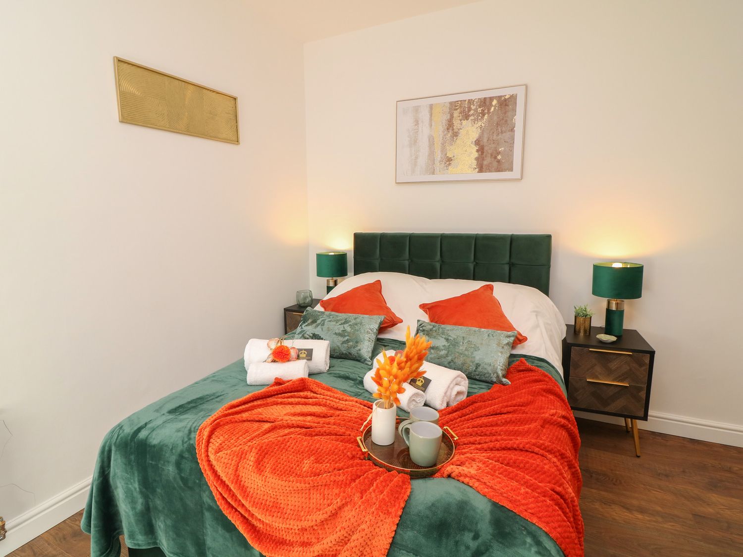 "First-floor apartment. One double bedroom. Open-plan living space with kitchen, dining and sitting area. Shower room with walk-in shower, basin, WC"