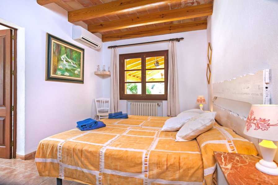 This charming stone clad villa has been lovingly renovated and boasts some beautiful original features. Located in the spectacular spot of Son March Valley, in the middle of the countryside, with breath-taking views over the mountains. The outdoor space is generous, well-furnished and perfectly positioned to enjoy the stunning outlook. Designed and built by the local owners as their own family home, the spacious aspect of the exterior is reflected in the equally well-proportioned interior. Bright and informal, this comfortably decorated interior is homely with traditional terracotta tiles floors, sloping wood-beamed ceilings and exposed Maresc stonework all featuring in the decor. The real focus however is on the outdoor living, with more than ample space on the lawn, terraces and around the grounds for all to enjoy. You will find everything needed for a comfortable and relaxing holiday including a well equipped traditional kitchen, connecting lounge/dining room separated by arches, access out to the spacious corner furnished terrace. The property boasts 3 bedrooms, one with double bed and 2 twin bedrooms and also 2 bathrooms. The swimming pool 8 x 5 m is adjacent to the terrace area therefore perfect for watching over the younger members of the group while swimming. A brick BBQ is conveniently located adjacent to the pool area and terrace therefore perfect for trying out the local cuisine and family BBQ's. #### Features Ground Floor - Spacious living-dining room with beautiful wood ceiling, equipped with Satellite TV. Adjoining dining area for 6 people - Rustic kitchen fully equipped with oven, microwave, fridge, freezer, dishwasher, washing machine, toaster, kettle and coffee machine. Breakfast table for 4 people - Double bedroom - 2 twin bedrooms - 2 bathrooms with bath - 1 bathroom with shower Outside - Swimming pool (8mx5m) and terrace, comfortably furnished for lounging and dining - Porch with outdoor dining for 8 people - Covered barbeque area with sink and work surface - Pretty and well maintained garden - Outdoor parking for several vehicles Amenities - Cot/Crib: 5,00 € / day - Refrigerator - Microwave - Oven - Freezer - Washing Machine - Dishwasher - Dishes/Cutlery - Kitchen utensils - Coffee machine - Toaster - Kettle - Barbecue - Iron - Open-air car parking in the same building - Stereo Touristic Registration Number: VT/101176 #### Location The villa is ideally located, within a 15 minute drive of the beautiful beaches of Puerto Pollensa and Cala San Vicente. The town of Pollensa is just 10 minutes by car and offers a number of amenities. You are also just 12 minutes from the exclusive Pollensa golf course.