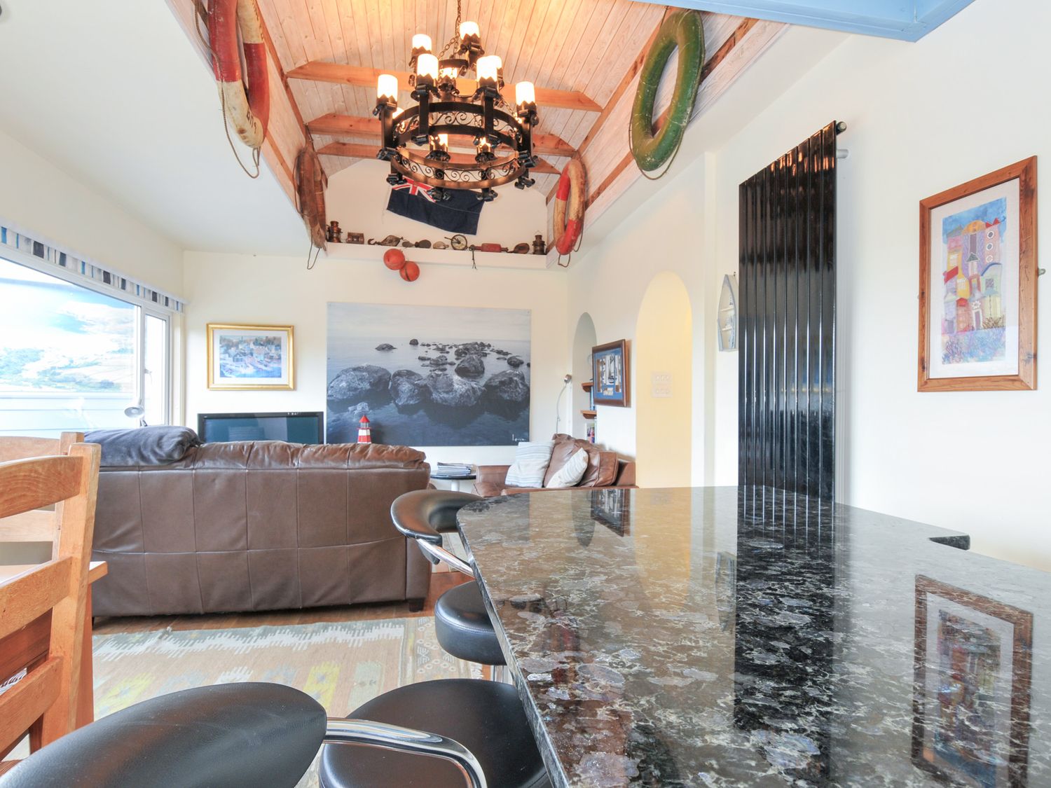 "The living areas in the reverse-level holiday home consist of a first-floor open-plan living space with a kitchen hosting an oven, hob, microwave, fridge/freezer, washing machine, tumble dryer, dishwasher, a dining area with total seating for eight people, and a sitting area with a TV and DVD player, and access to a balcony. The bedrooms are on the ground-floor and consist of a double, twin and single, along with two ground-floor shower rooms and a first-floor cloakroom. Outside, there is an enclosed rear lawn with decking, barbecue and furniture, as well as private parking for four cars. Within 0.1 mile, you will find a shop and pub, and within 0.5, a beach. A coastal holiday is waiting to be enjoyed at Beachside. Note: Check-in is from 4:30pm, check-out by 9am."